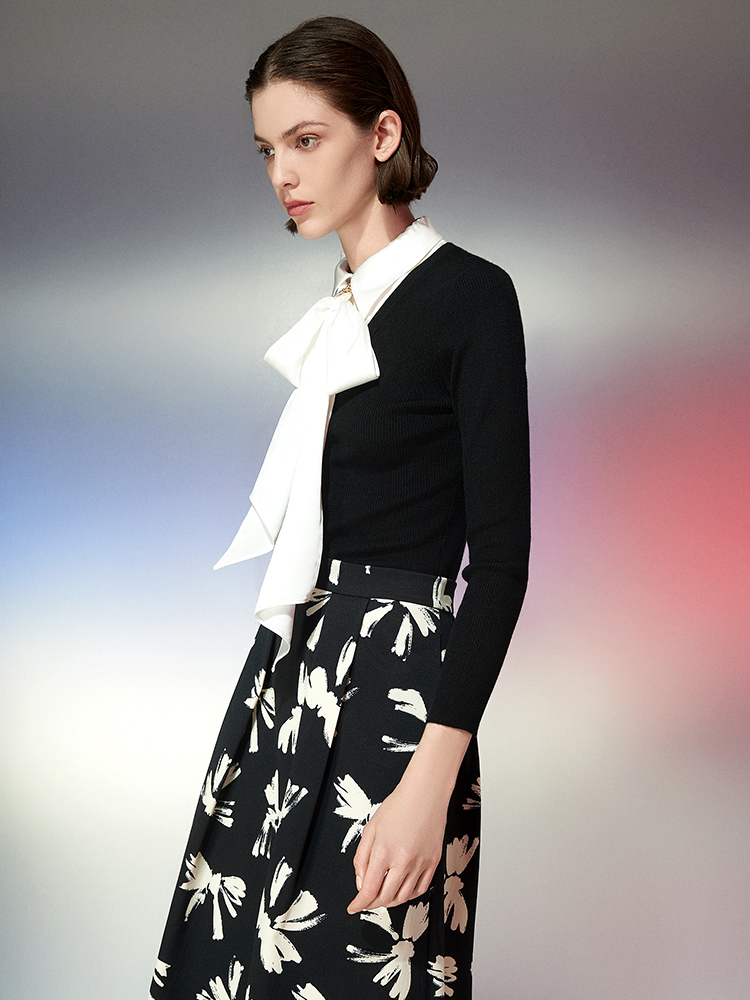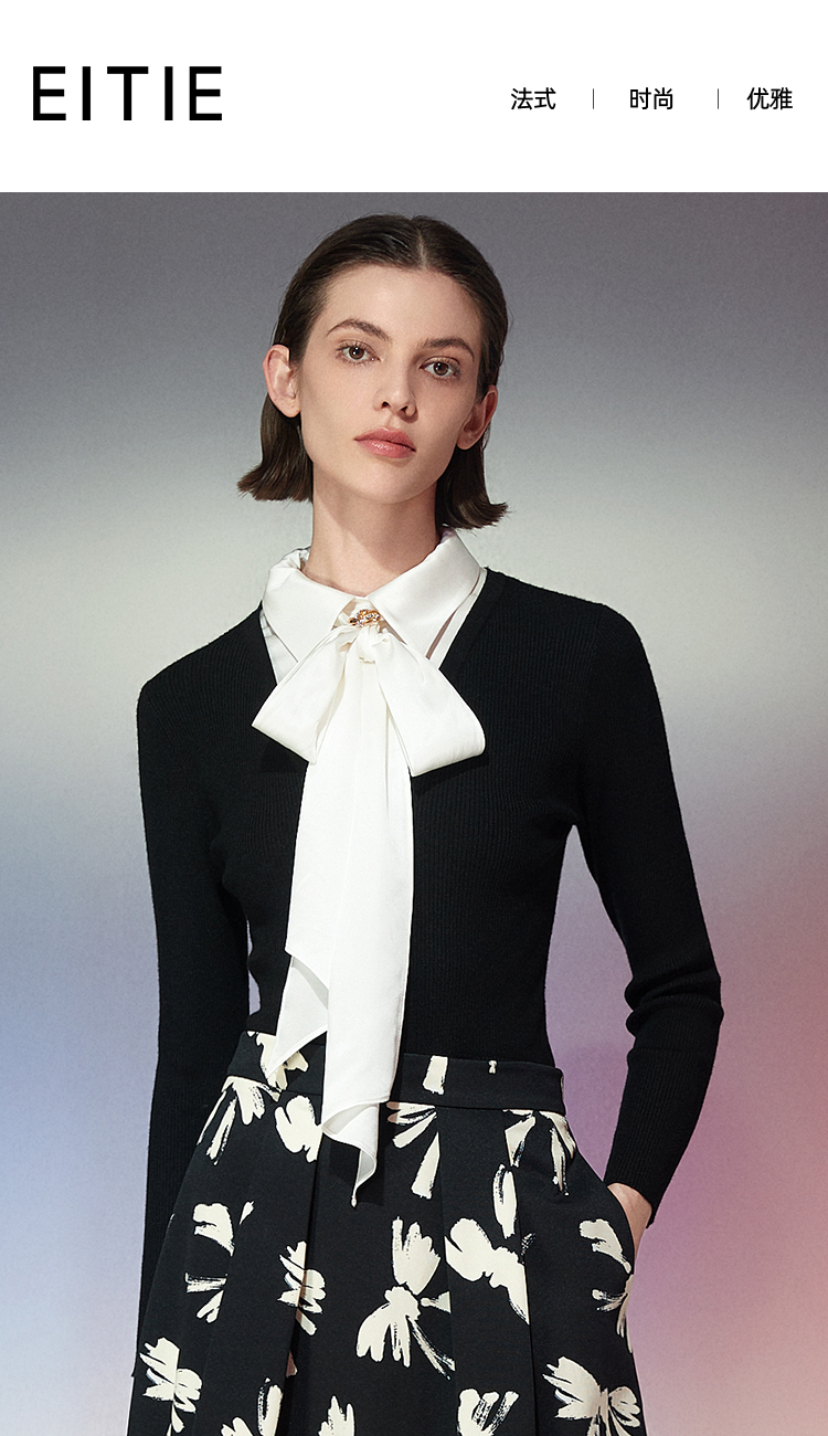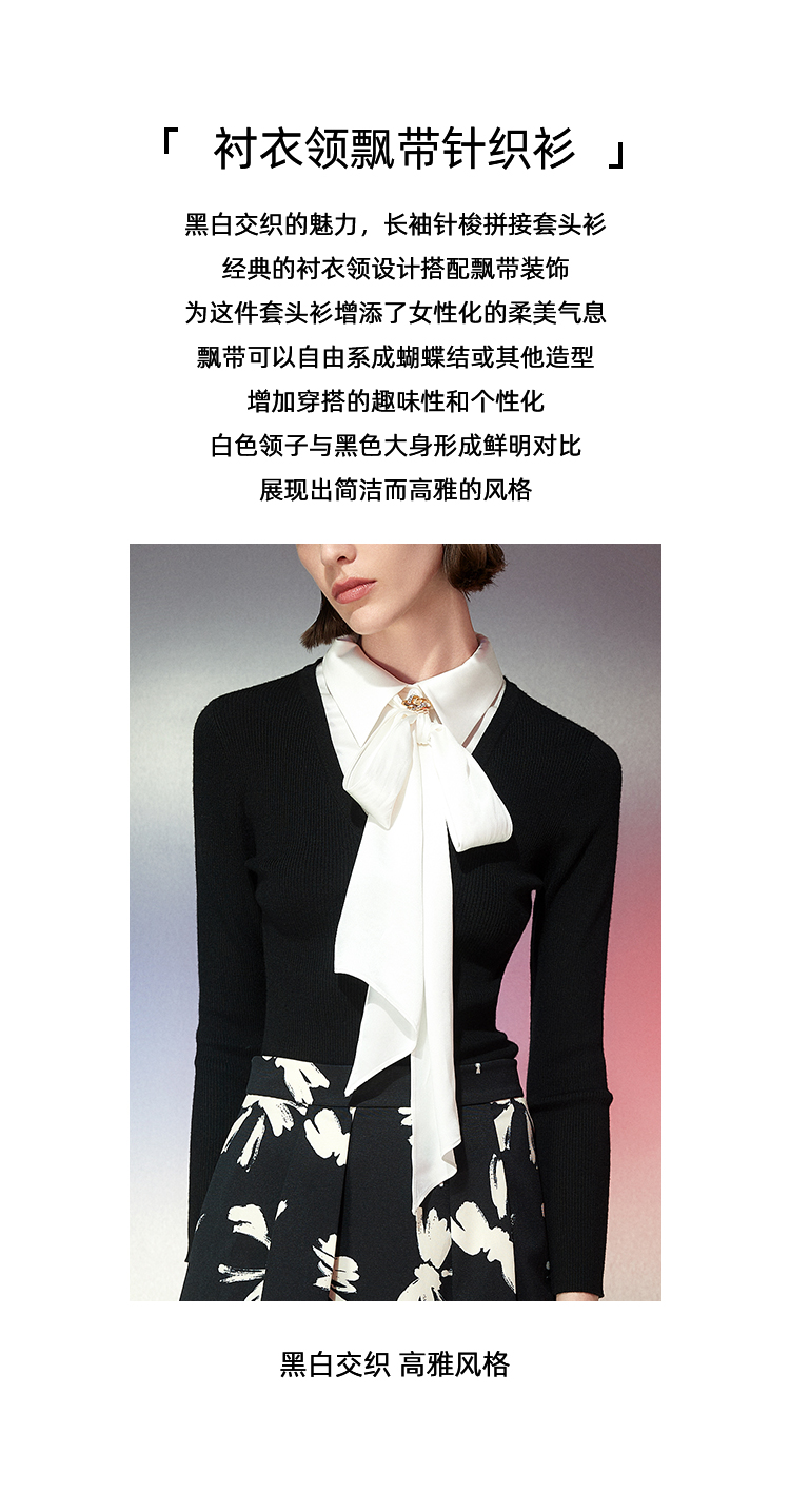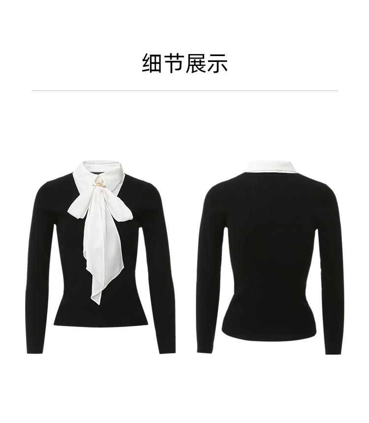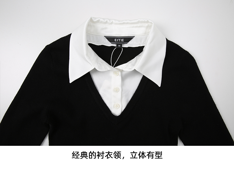 EITIE爱特爱春季新款时尚通勤假两件气质针织衫7701414