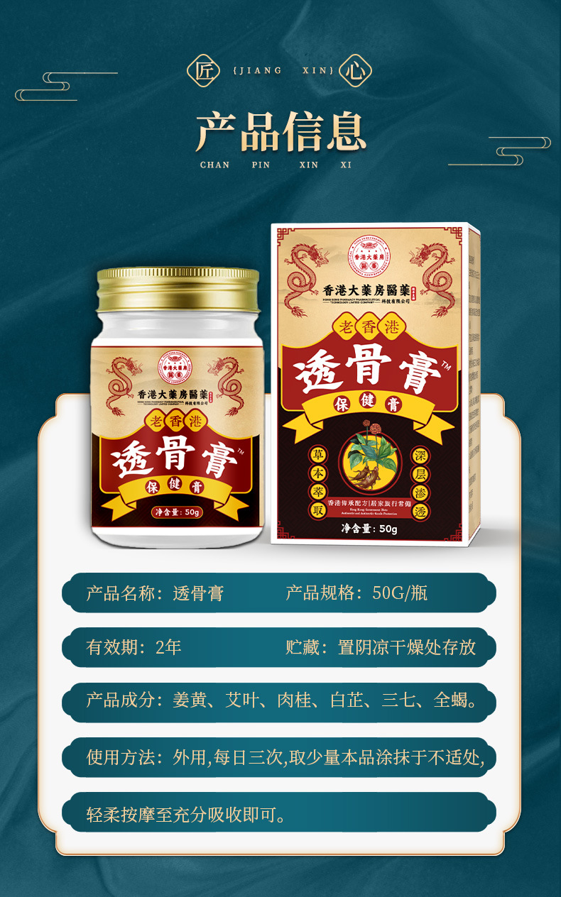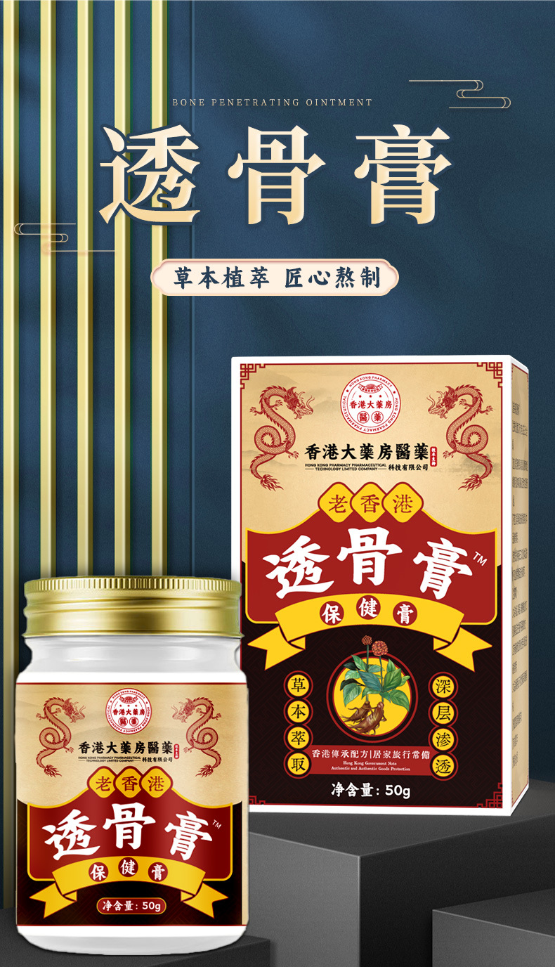 雀说 【2盒装】香港大药房透骨膏 颈肩腰腿膝护理透骨液50g大容量膝盖膏透骨膏4ZF-81905