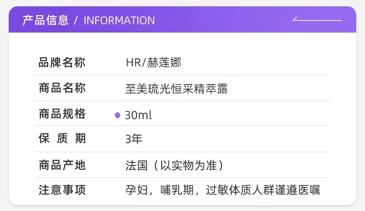 【保税仓直邮】·HR/赫莲娜补水保湿精华液至美琉光恒采精粹露30ml旅行装