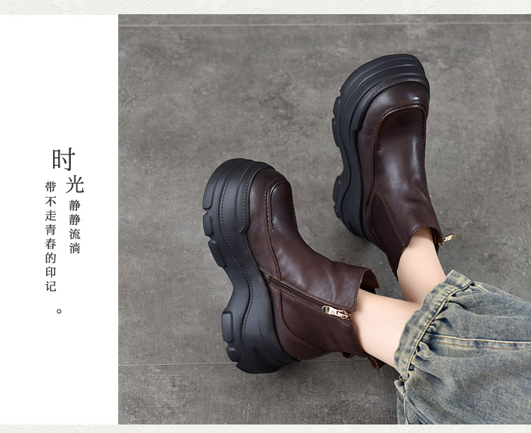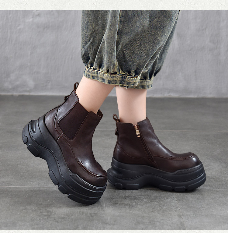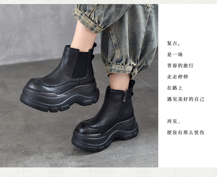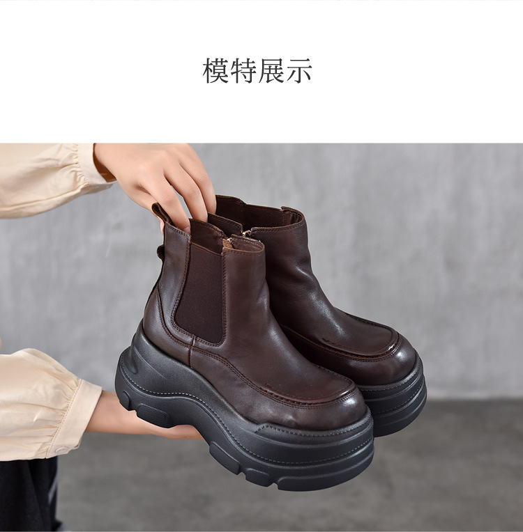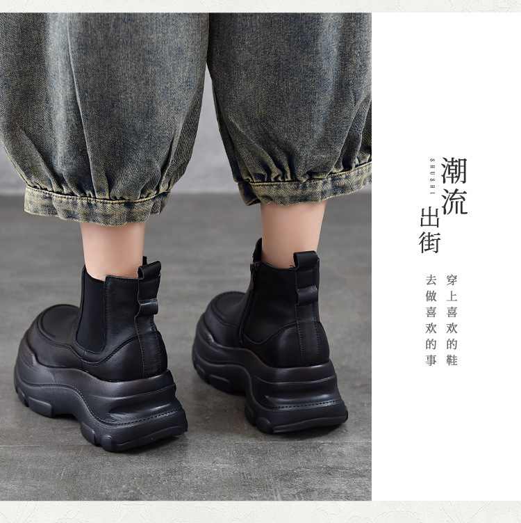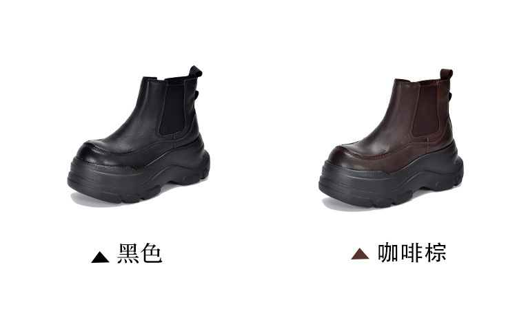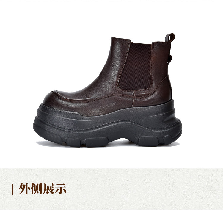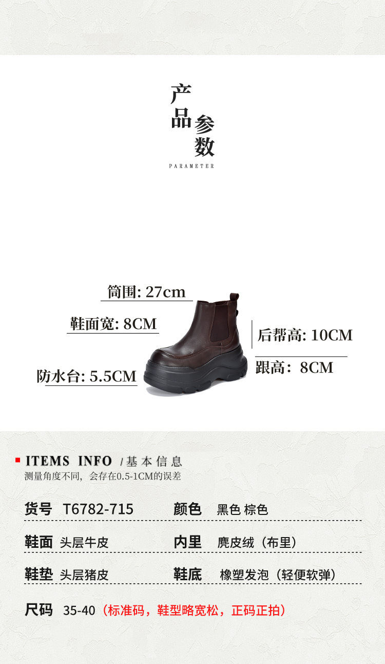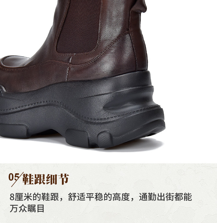 TN T6782-715厚底增高真皮短靴松紧切尔西靴烟筒靴 商品图4