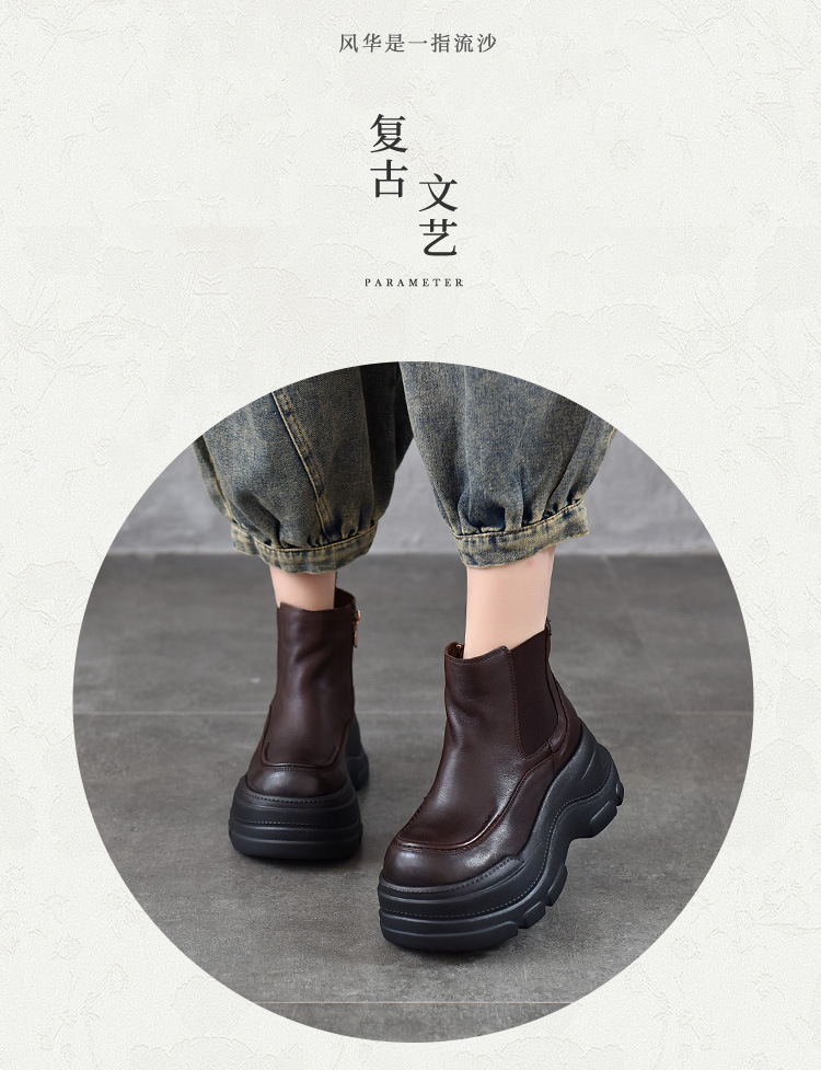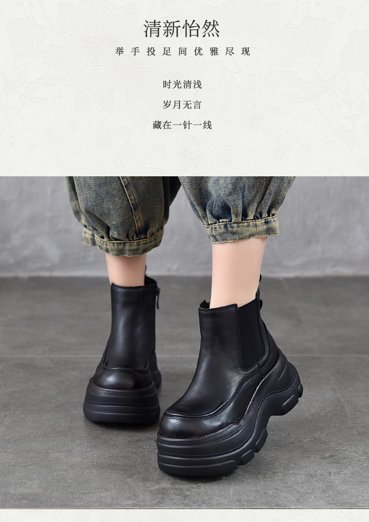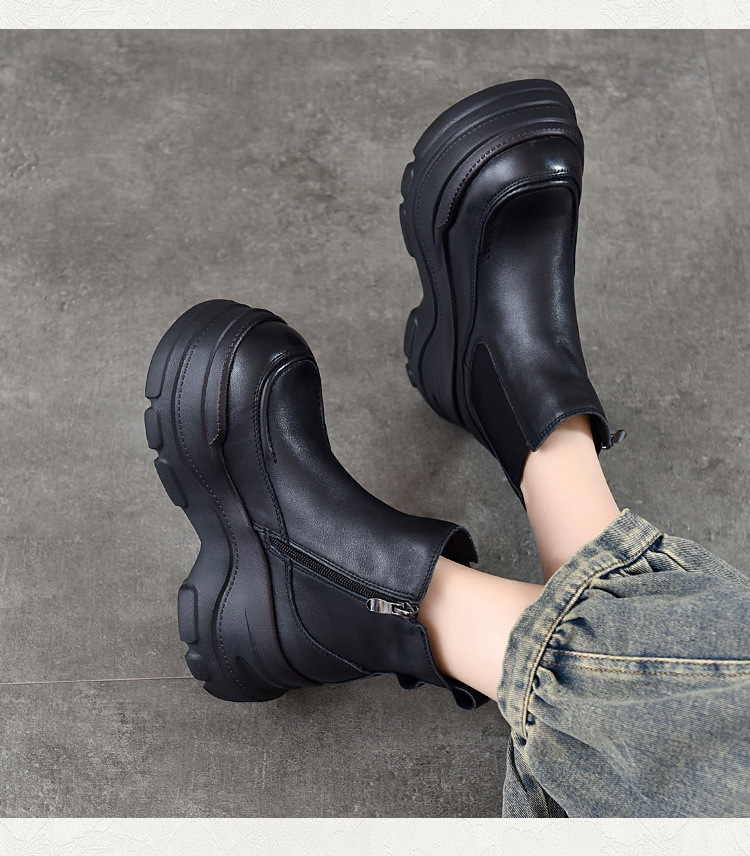 TN T6782-715厚底增高真皮短靴松紧切尔西靴烟筒靴