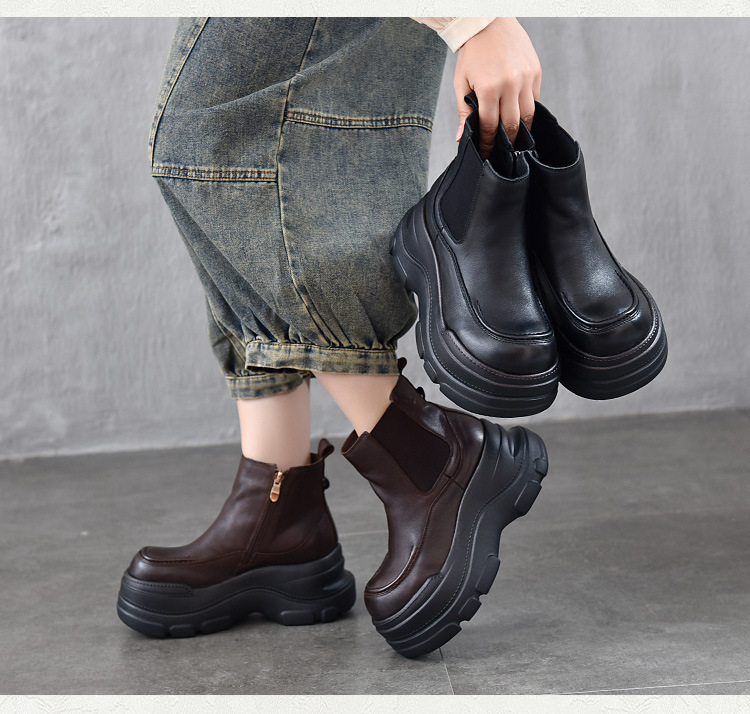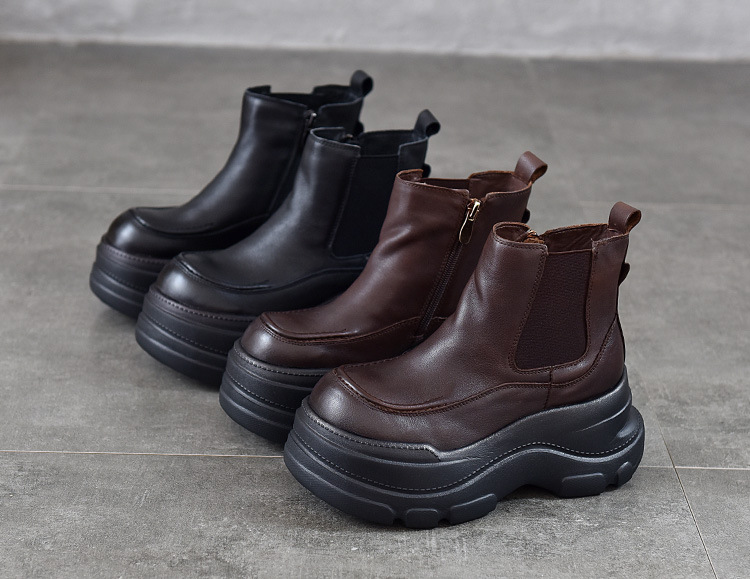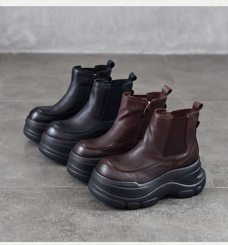 TN T6782-715厚底增高真皮短靴松紧切尔西靴烟筒靴 商品图0