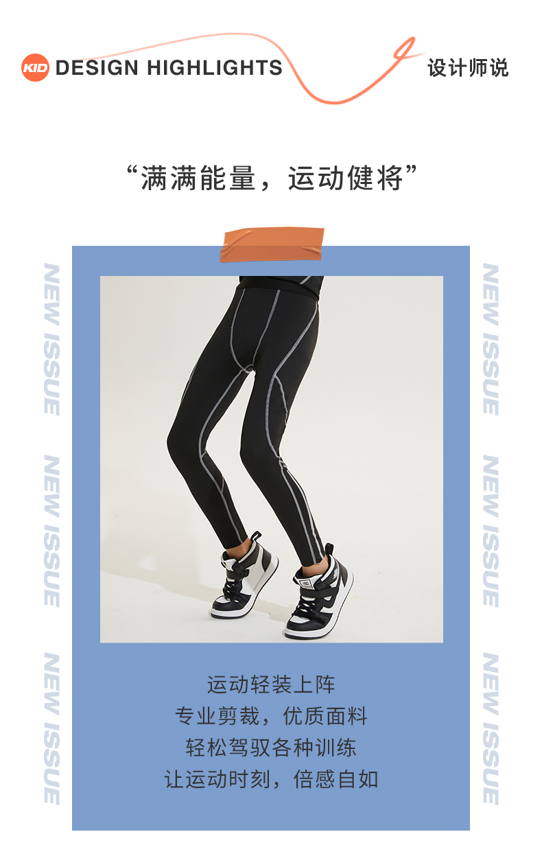 断码儿童紧身裤男童运动篮球打底跑步压缩训练裤速干排汗弹力健身长裤