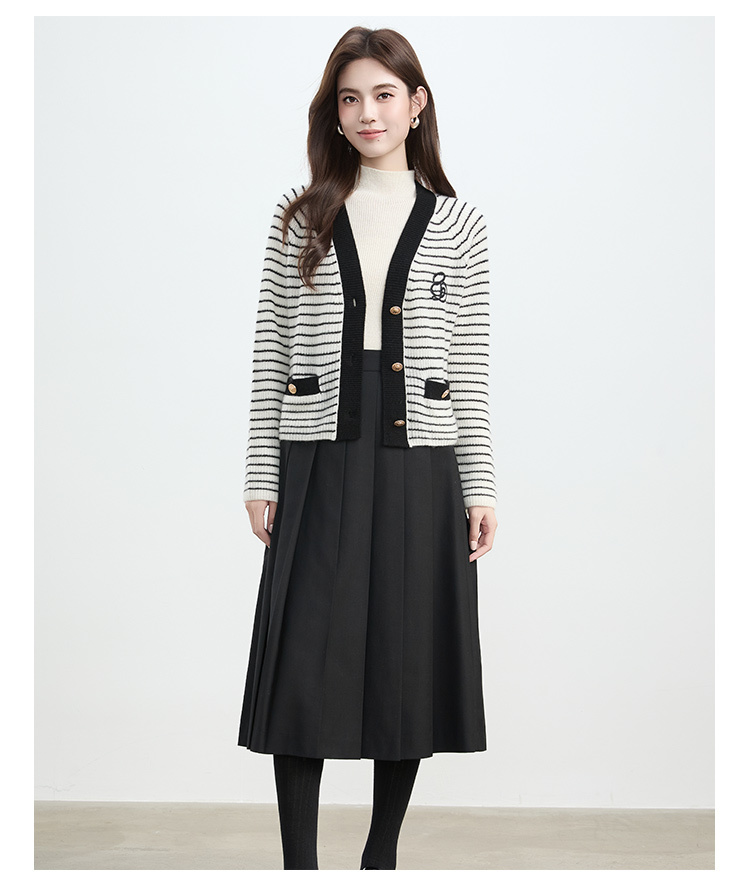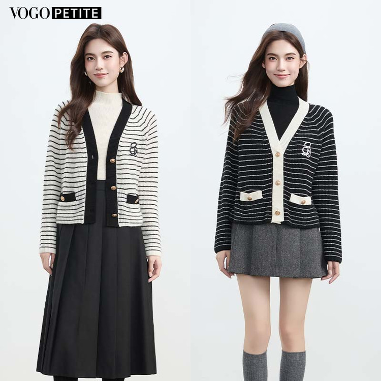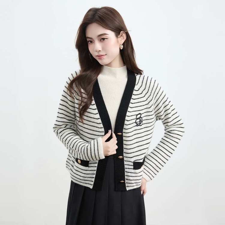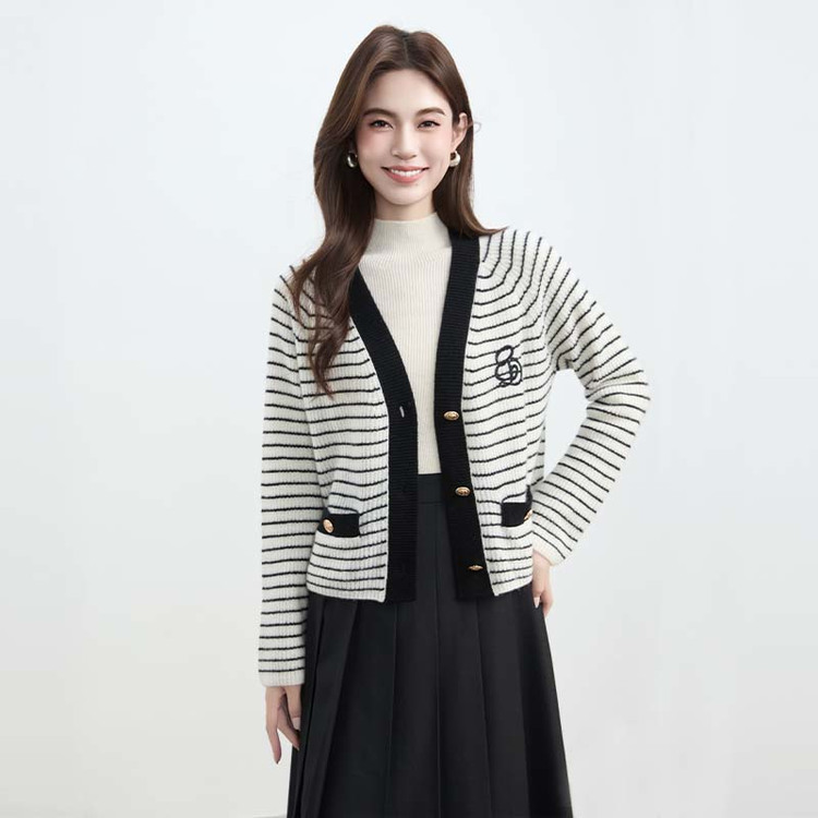 VogoPetite 绣花条纹开衫100%山羊绒 BP133F1511