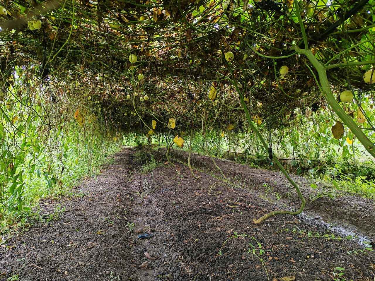 生产方式:2013年开始生态种植,使用自制的中草药堆肥、不定期施用花生麸发酵液肥,病虫害管理主要是用黄板防治瓜果实蝇。