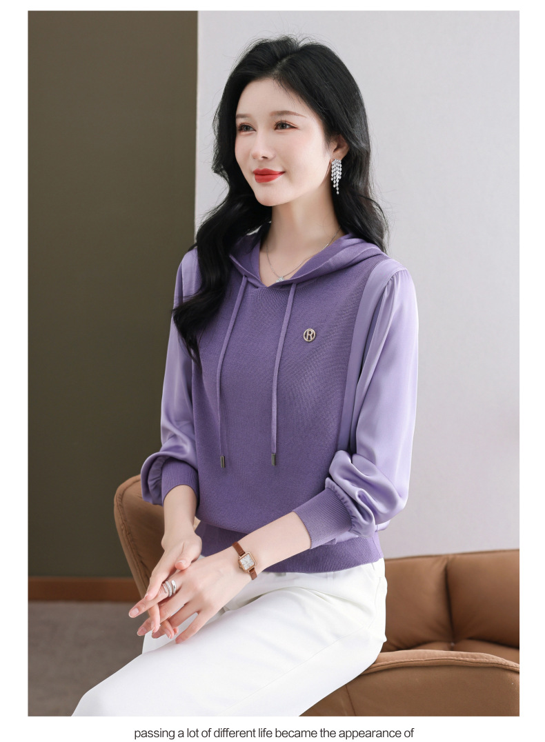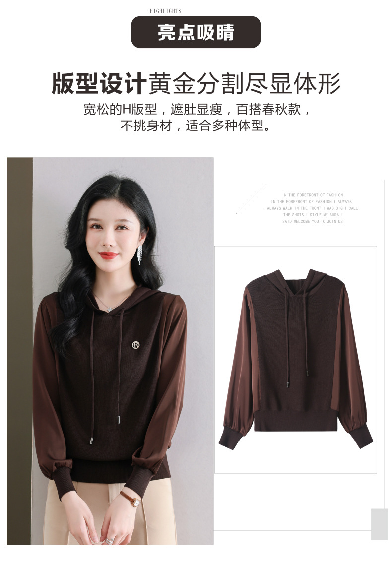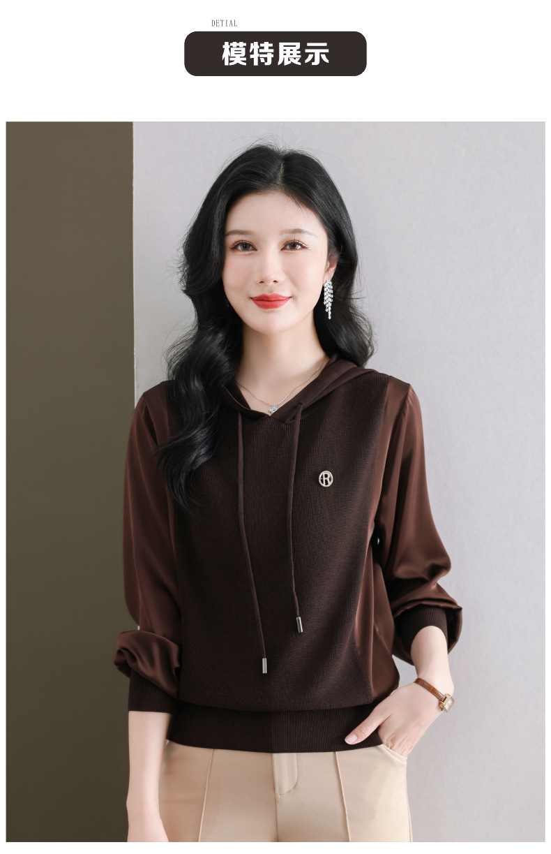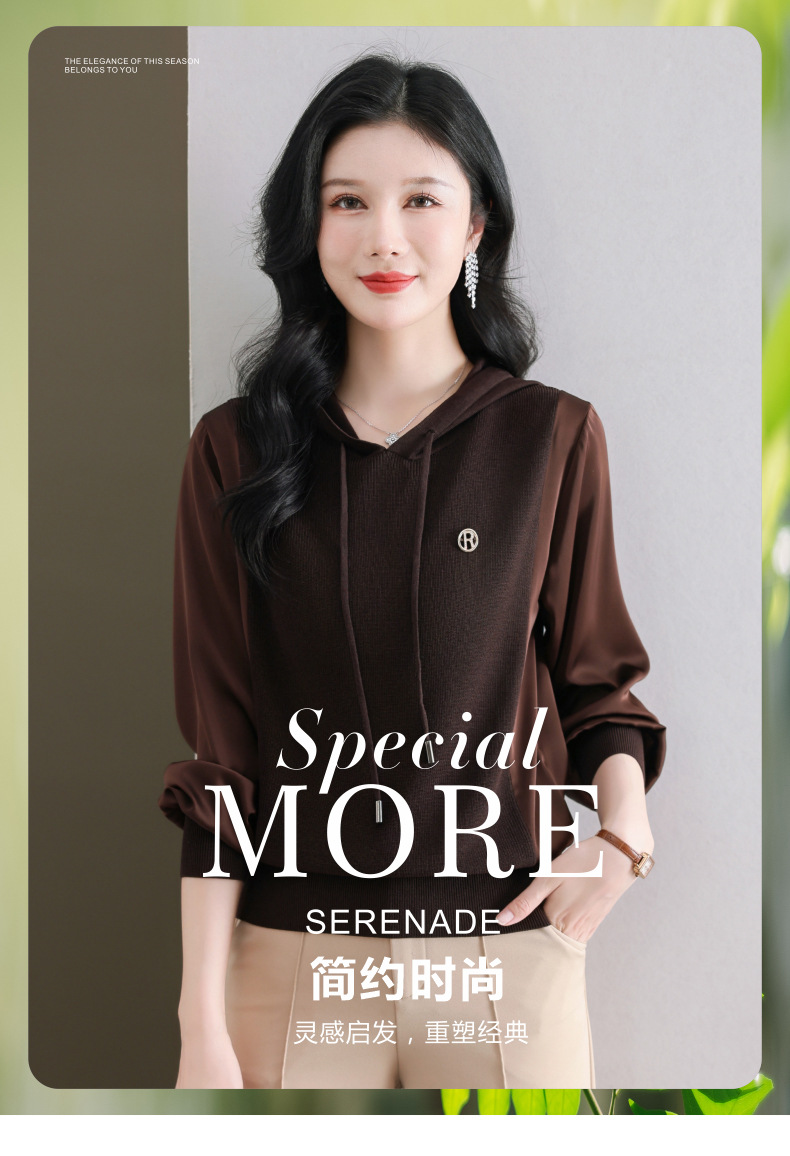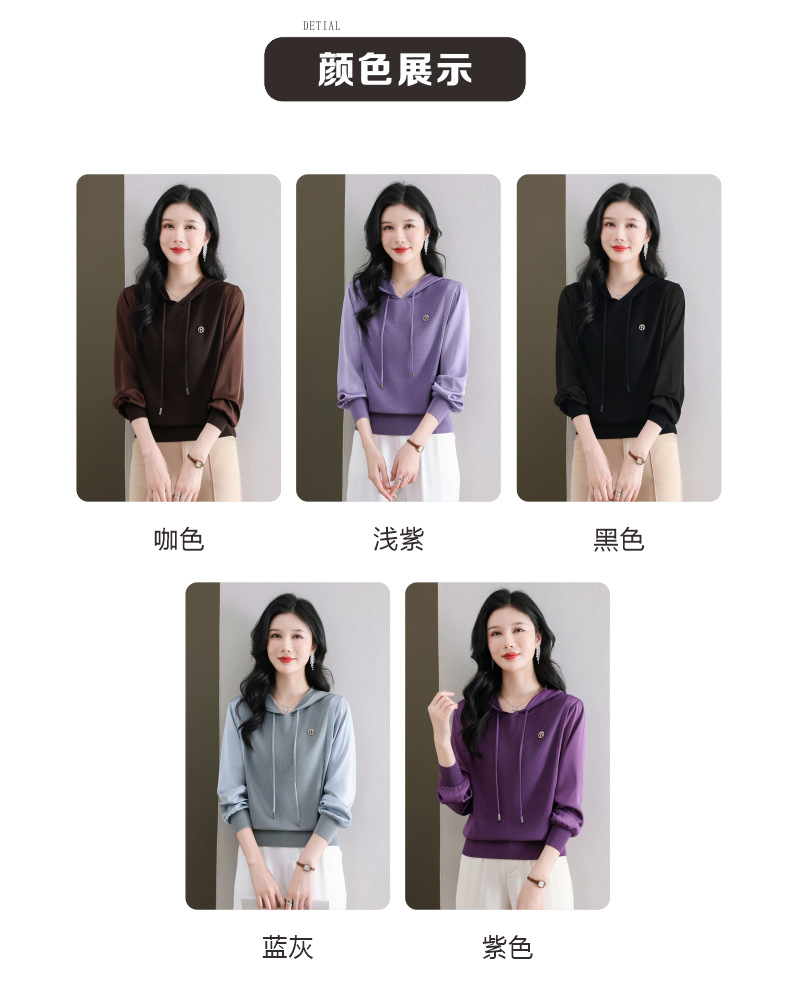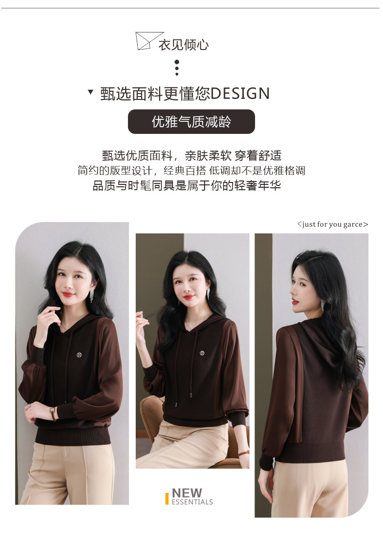 CC89-99811连帽卫衣针织衫春装女2024年新款女妈妈休闲宽松带帽长袖上衣小衫