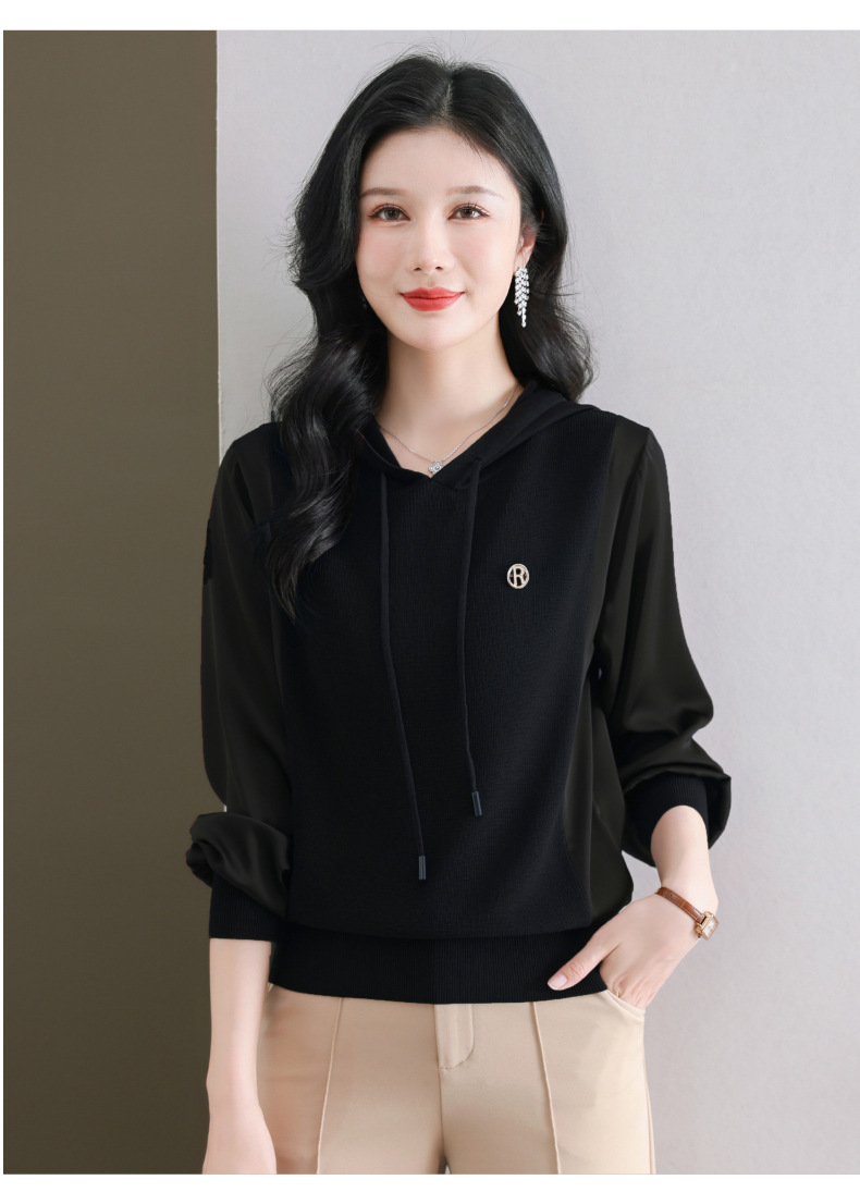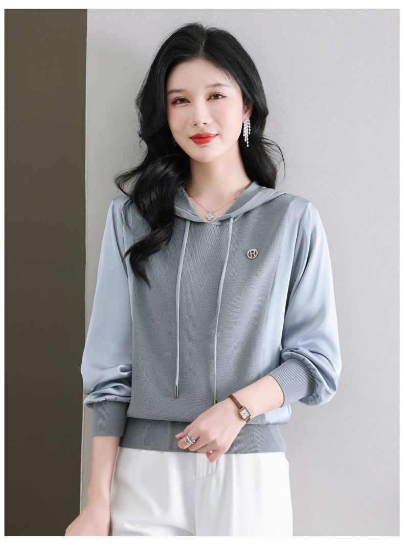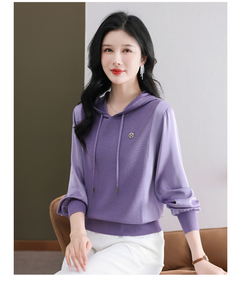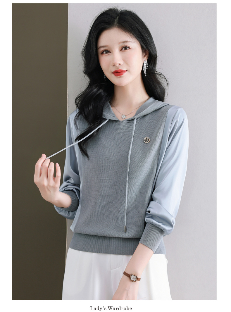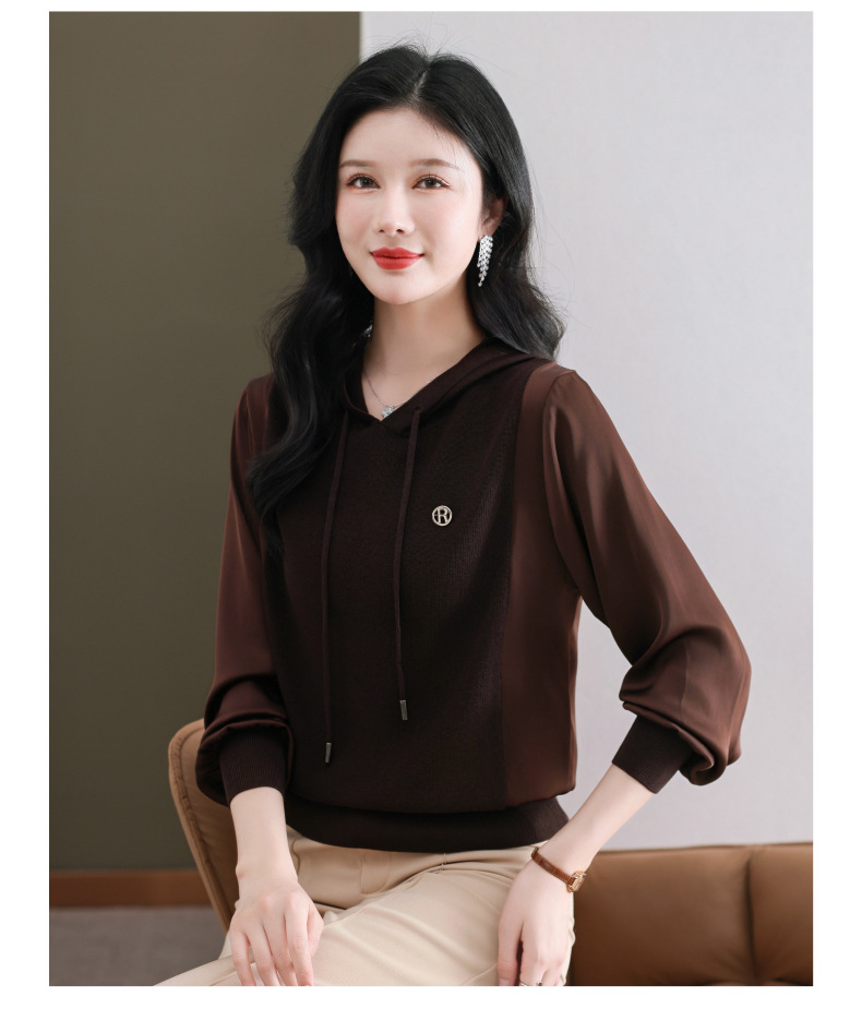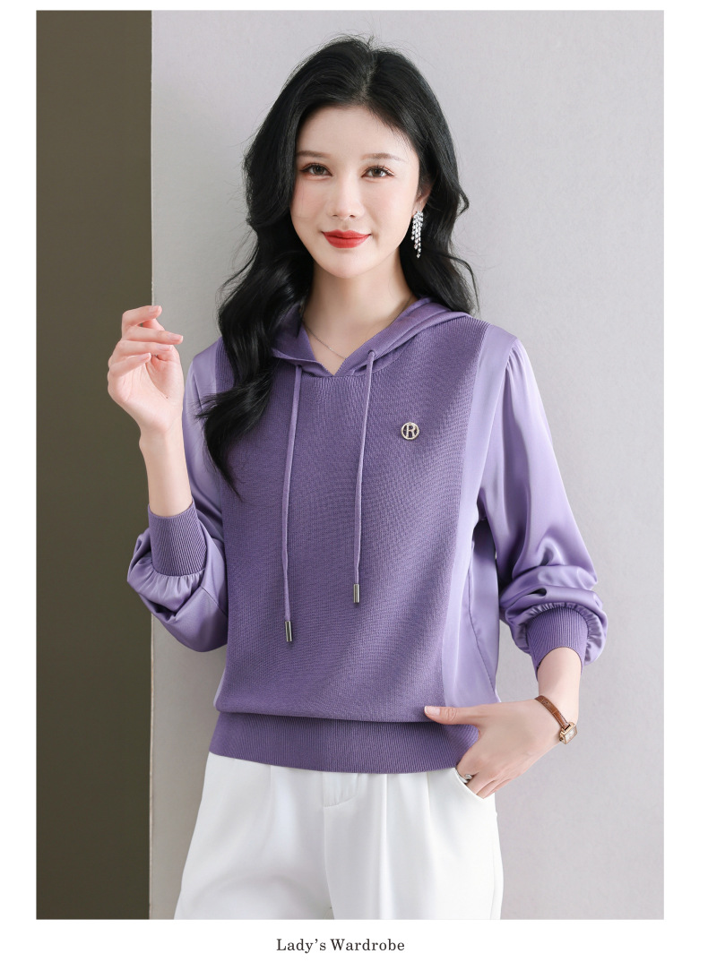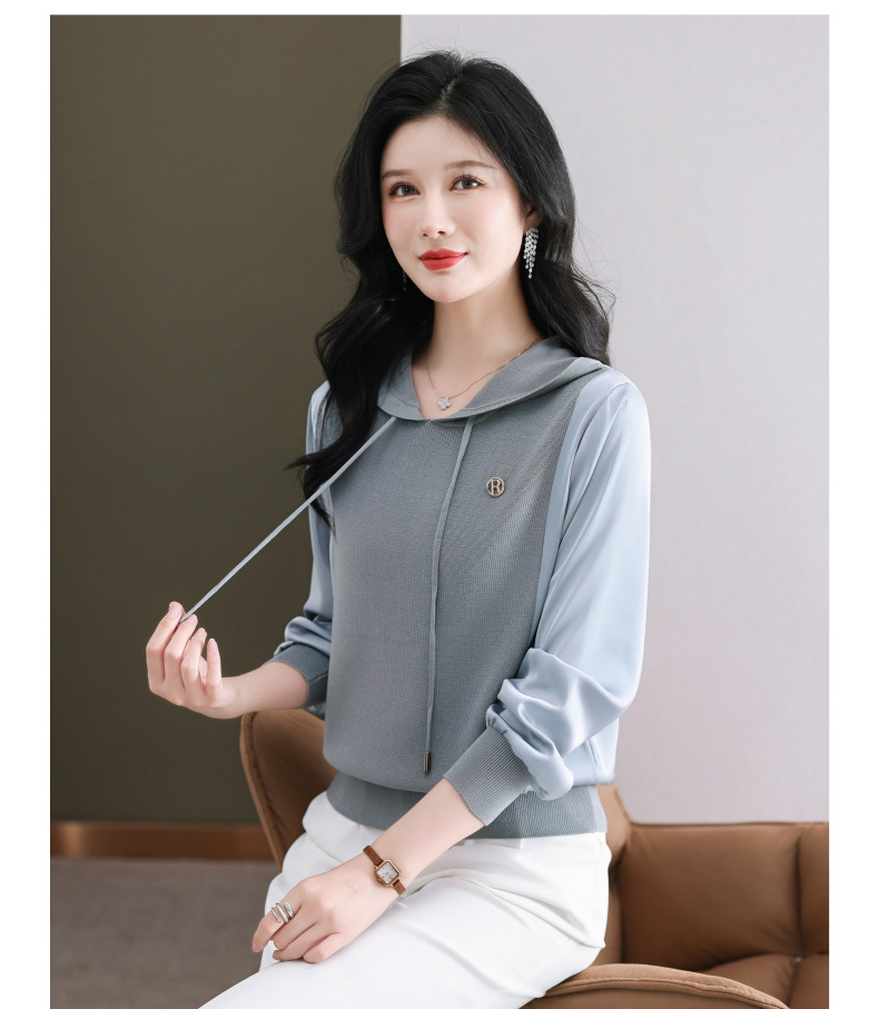 CC89-99811连帽卫衣针织衫春装女2024年新款女妈妈休闲宽松带帽长袖上衣小衫