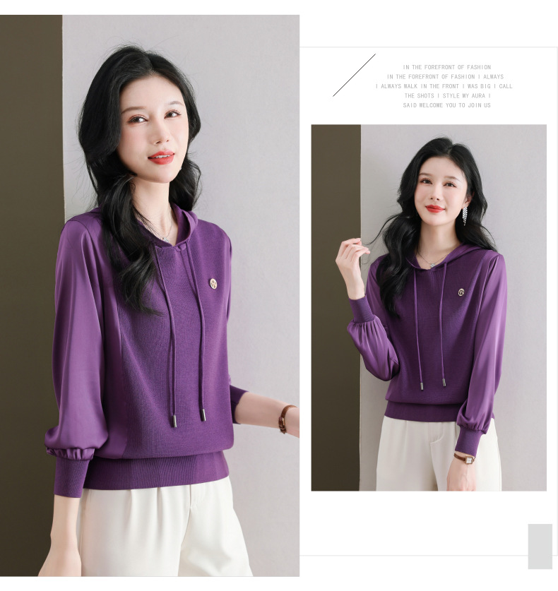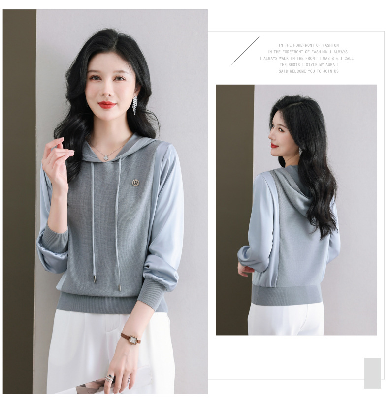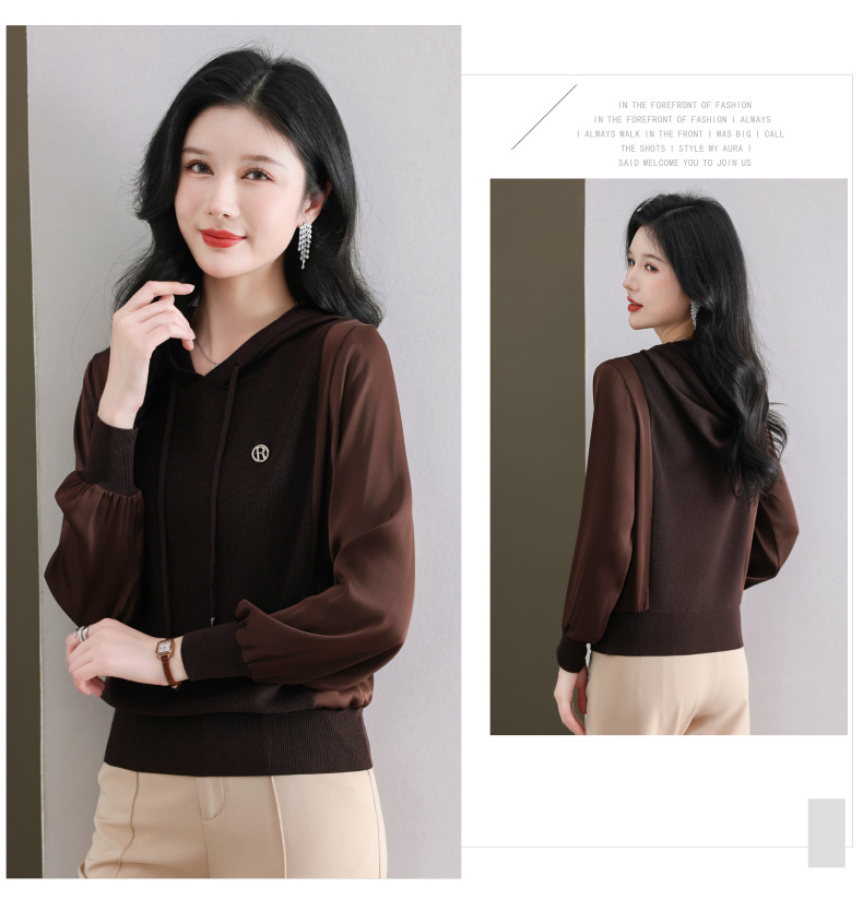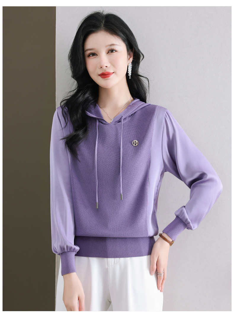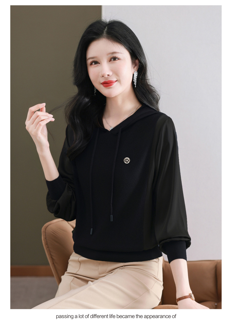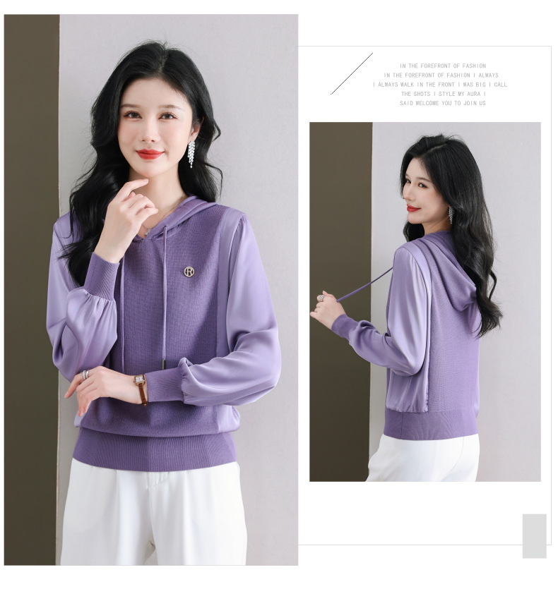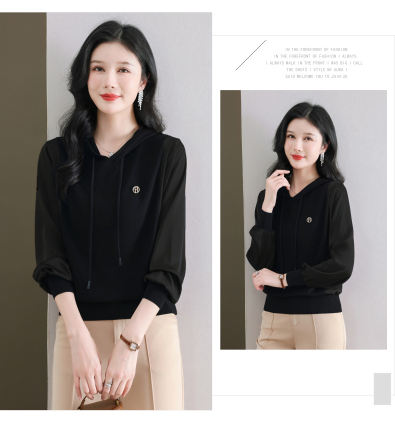 CC89-99811连帽卫衣针织衫春装女2024年新款女妈妈休闲宽松带帽长袖上衣小衫