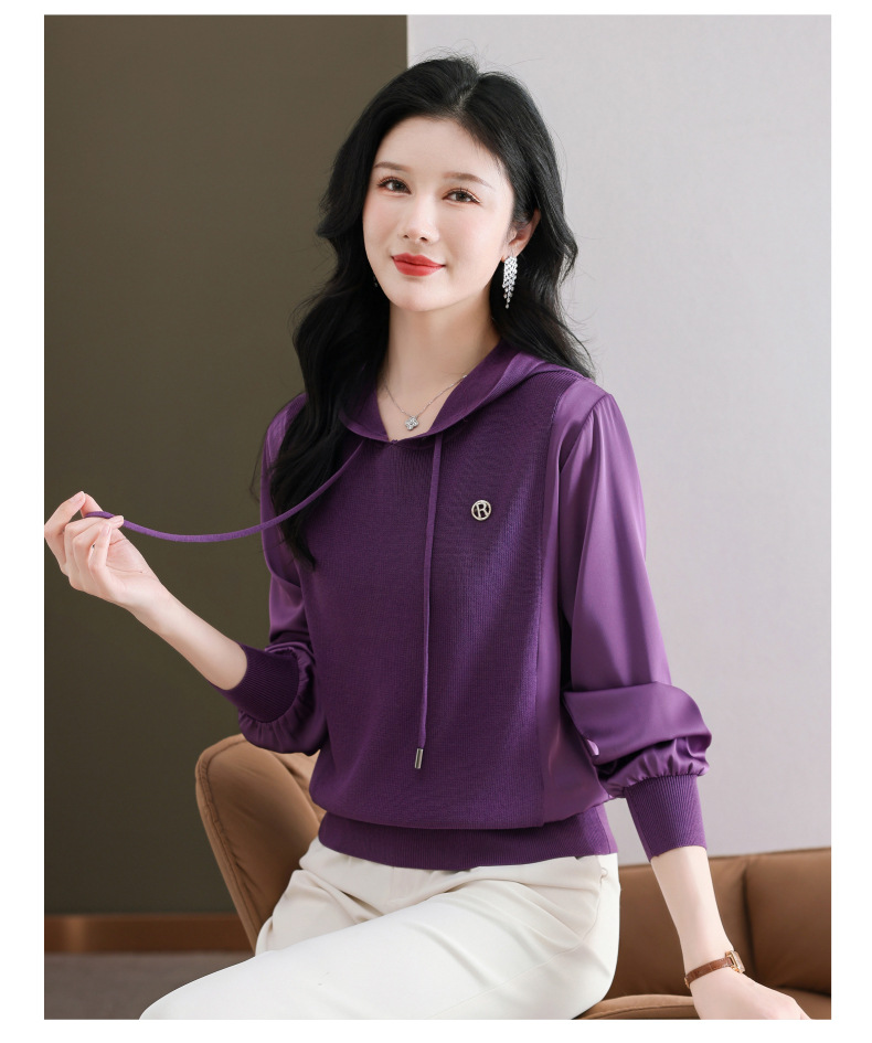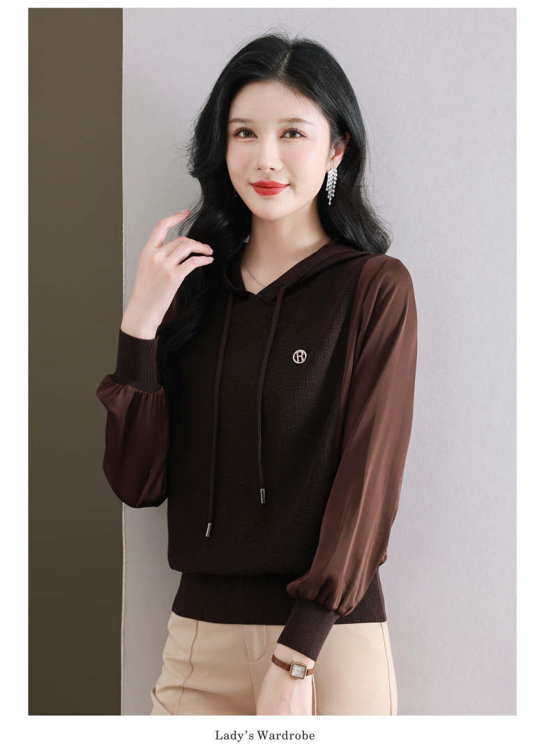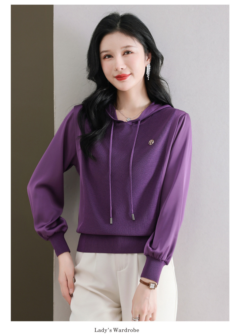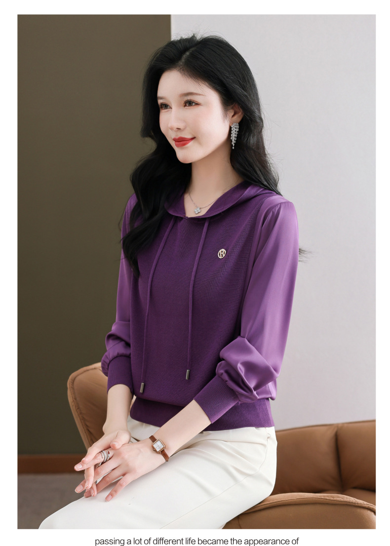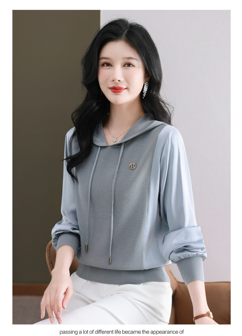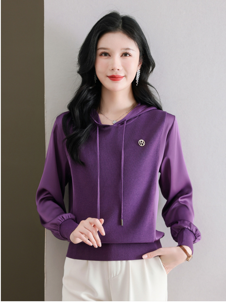 CC89-99811连帽卫衣针织衫春装女2024年新款女妈妈休闲宽松带帽长袖上衣小衫