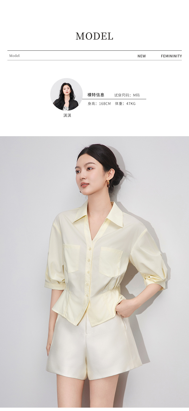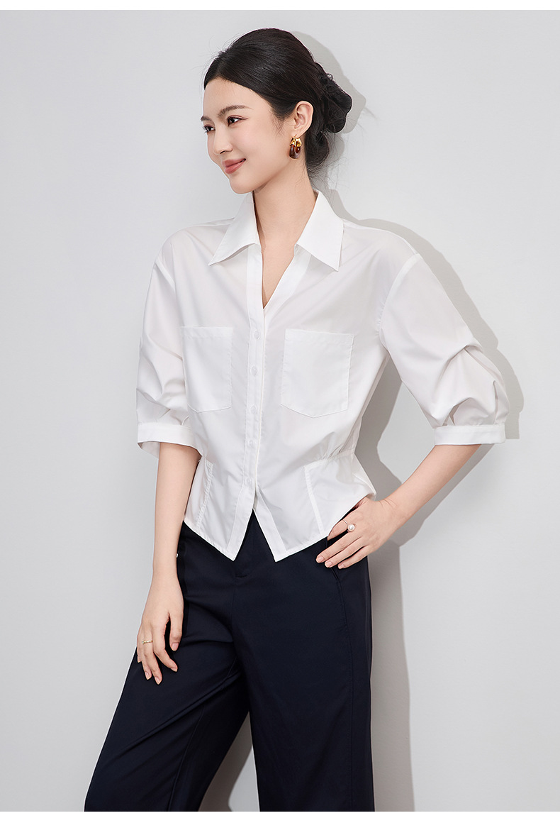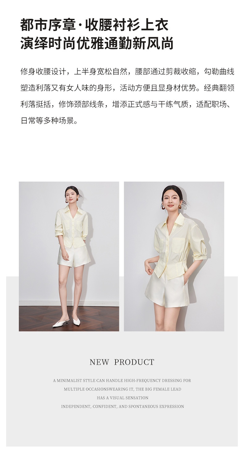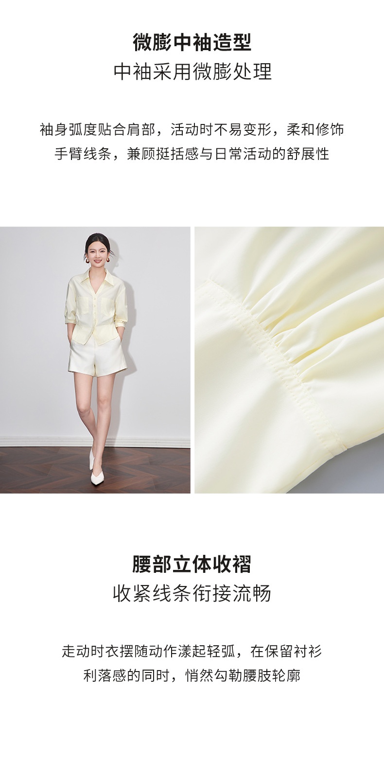 「高货wl」全系升级【铂金会员266/天猫359/差价93】(03713)洛诗琳优雅减龄七分袖收腰衬衫2025夏季新款知性显瘦上衣