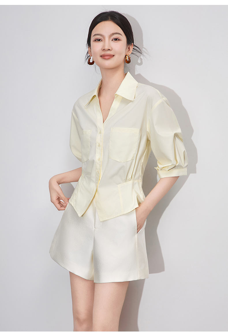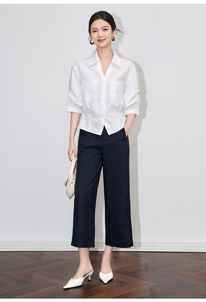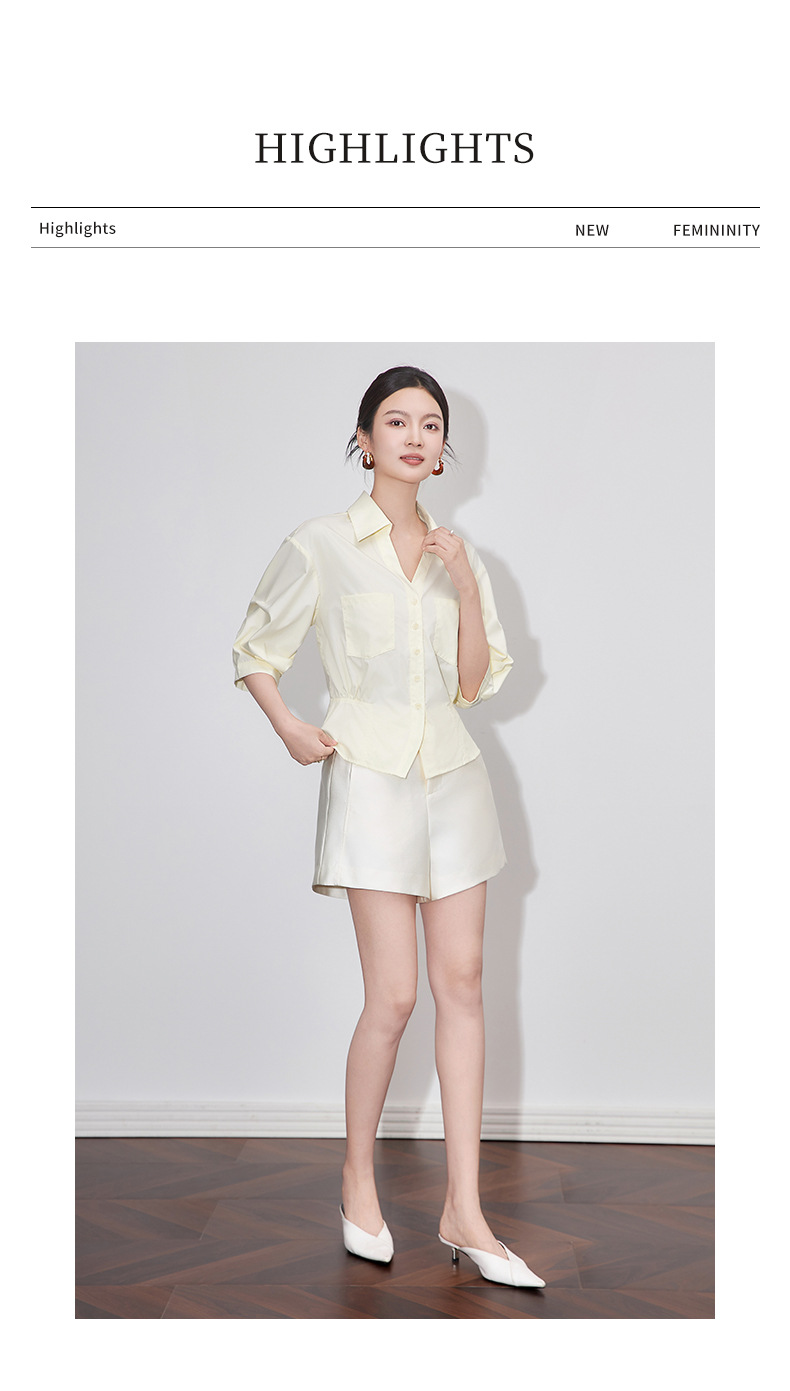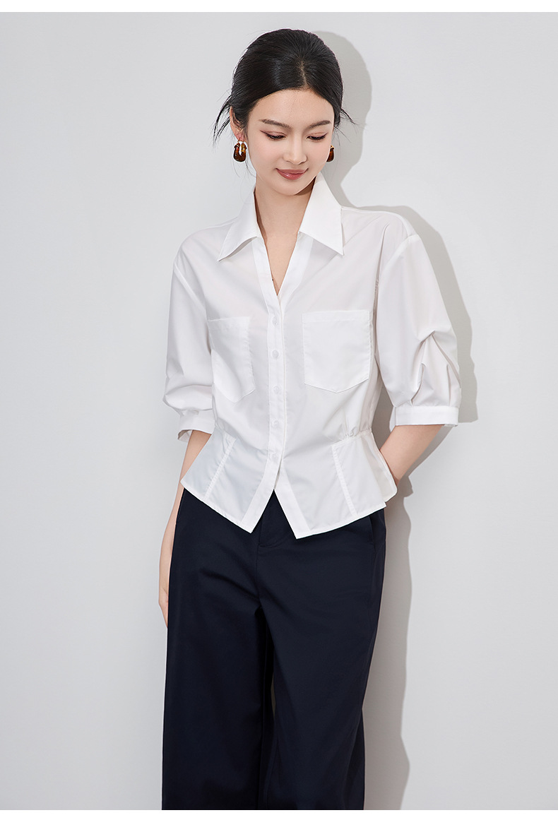 「高货wl」全系升级【铂金会员266/天猫359/差价93】(03713)洛诗琳优雅减龄七分袖收腰衬衫2025夏季新款知性显瘦上衣