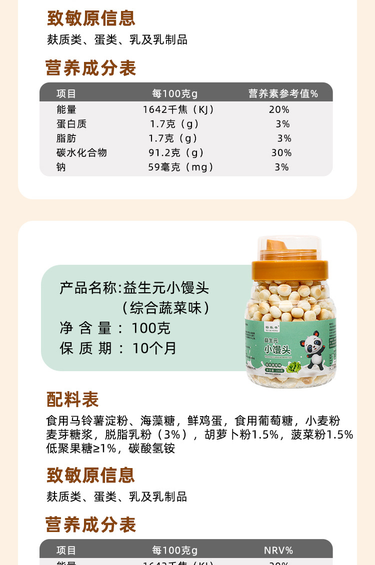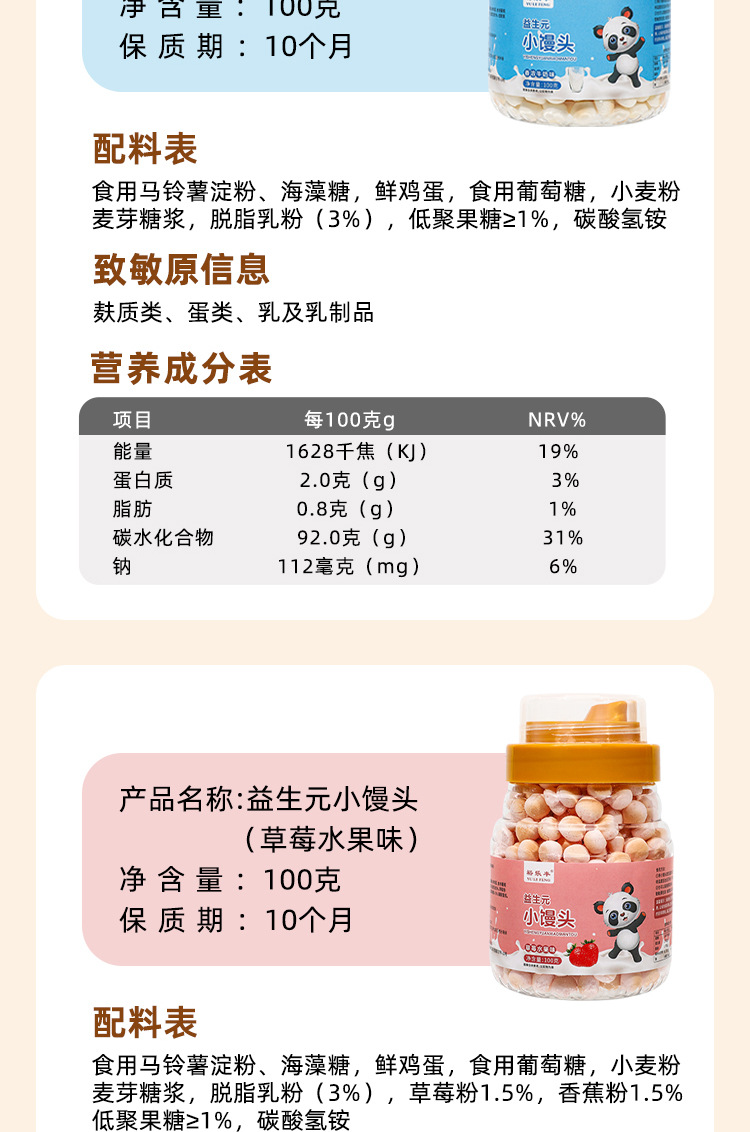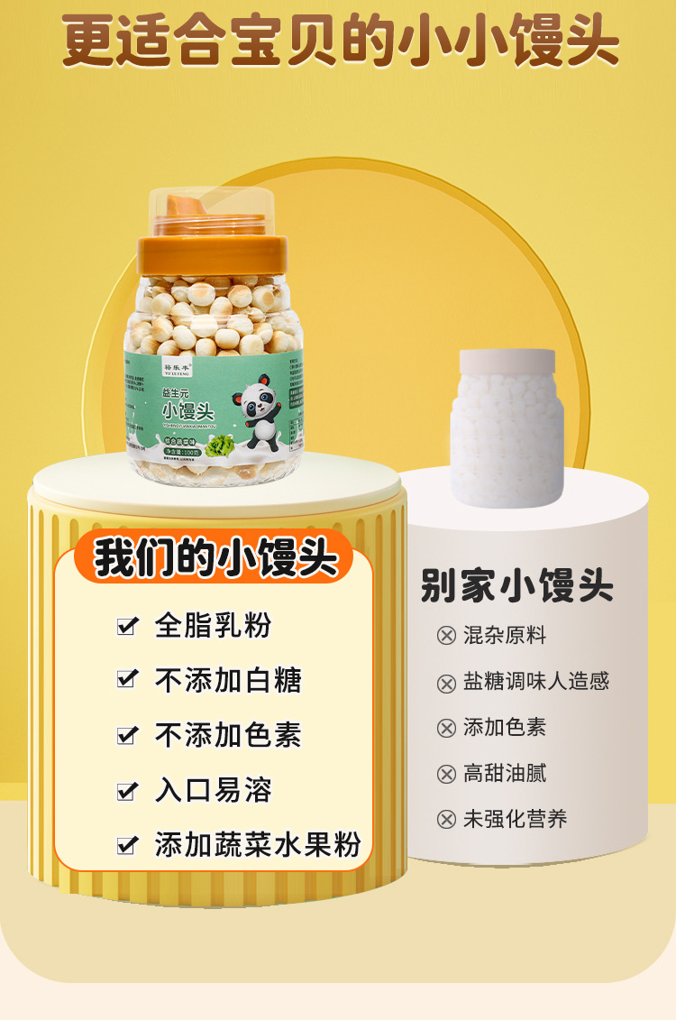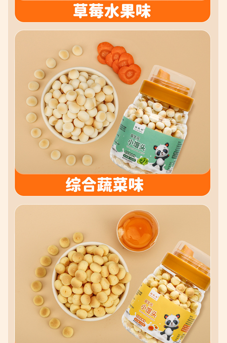 【2秒即溶❗不卡喉】益生元小馒头入口即化儿童健康解除零食海藻糖小馒头果蔬小蛋酥100克/罐装。rh
