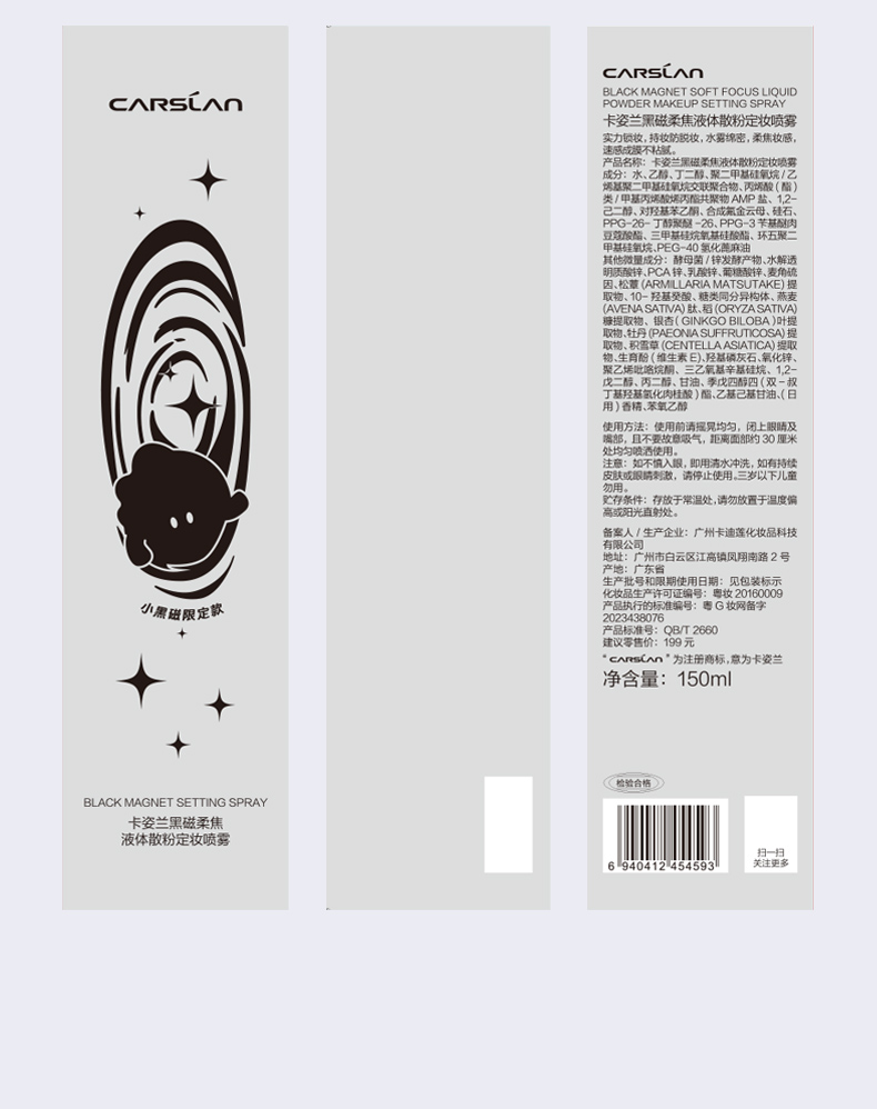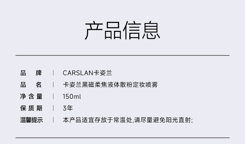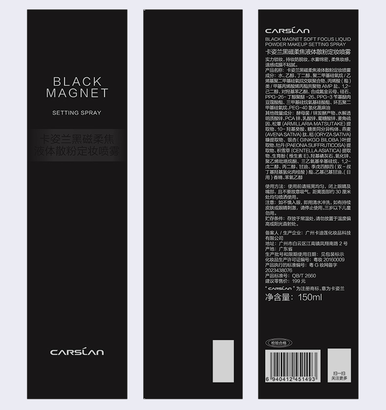 【卡姿兰Carslan】卡姿兰黑磁柔焦液体散粉定妆喷雾