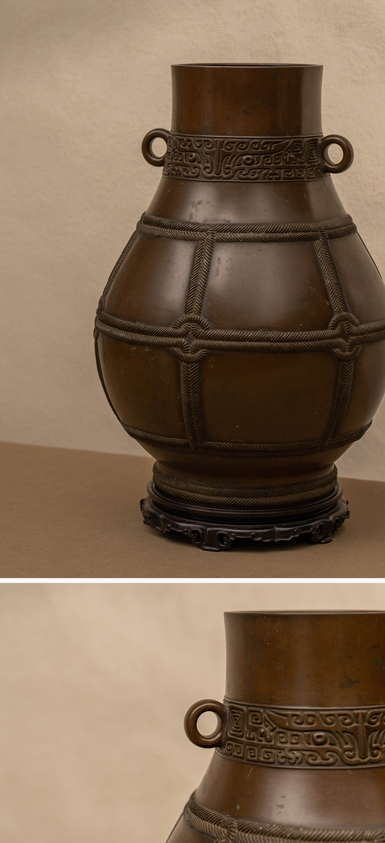 清 黄花梨镶竹丝编四抹门亮格柜摆件