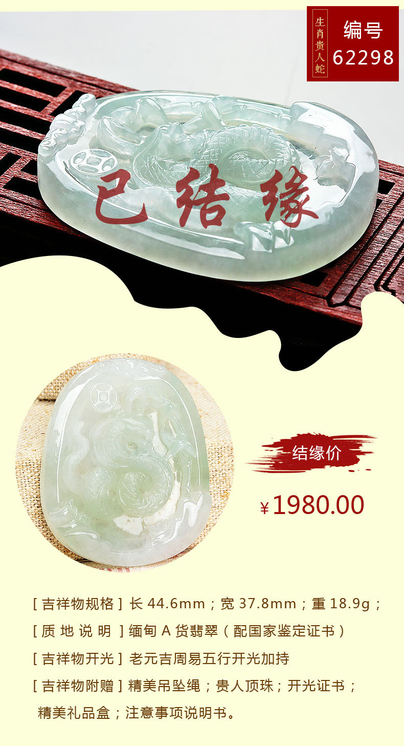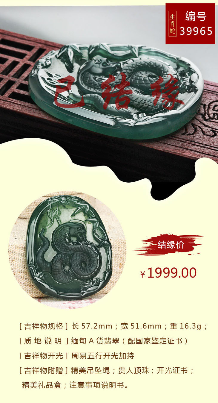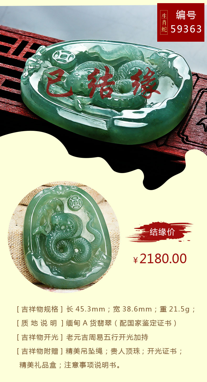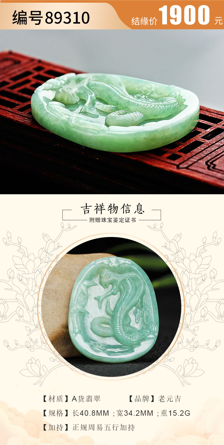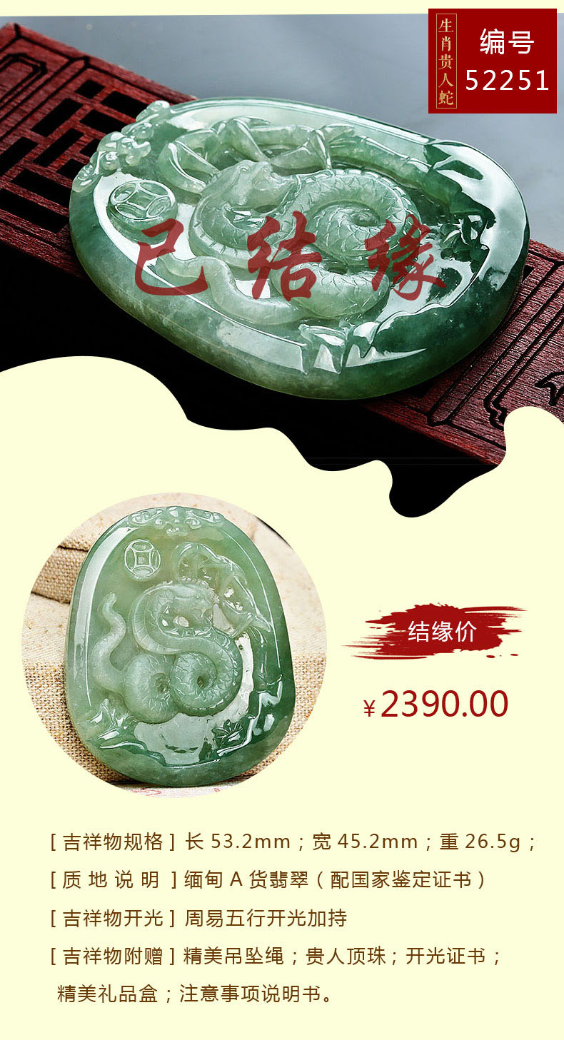 翡翠款【生肖贵人蛇系列】玉石吊坠