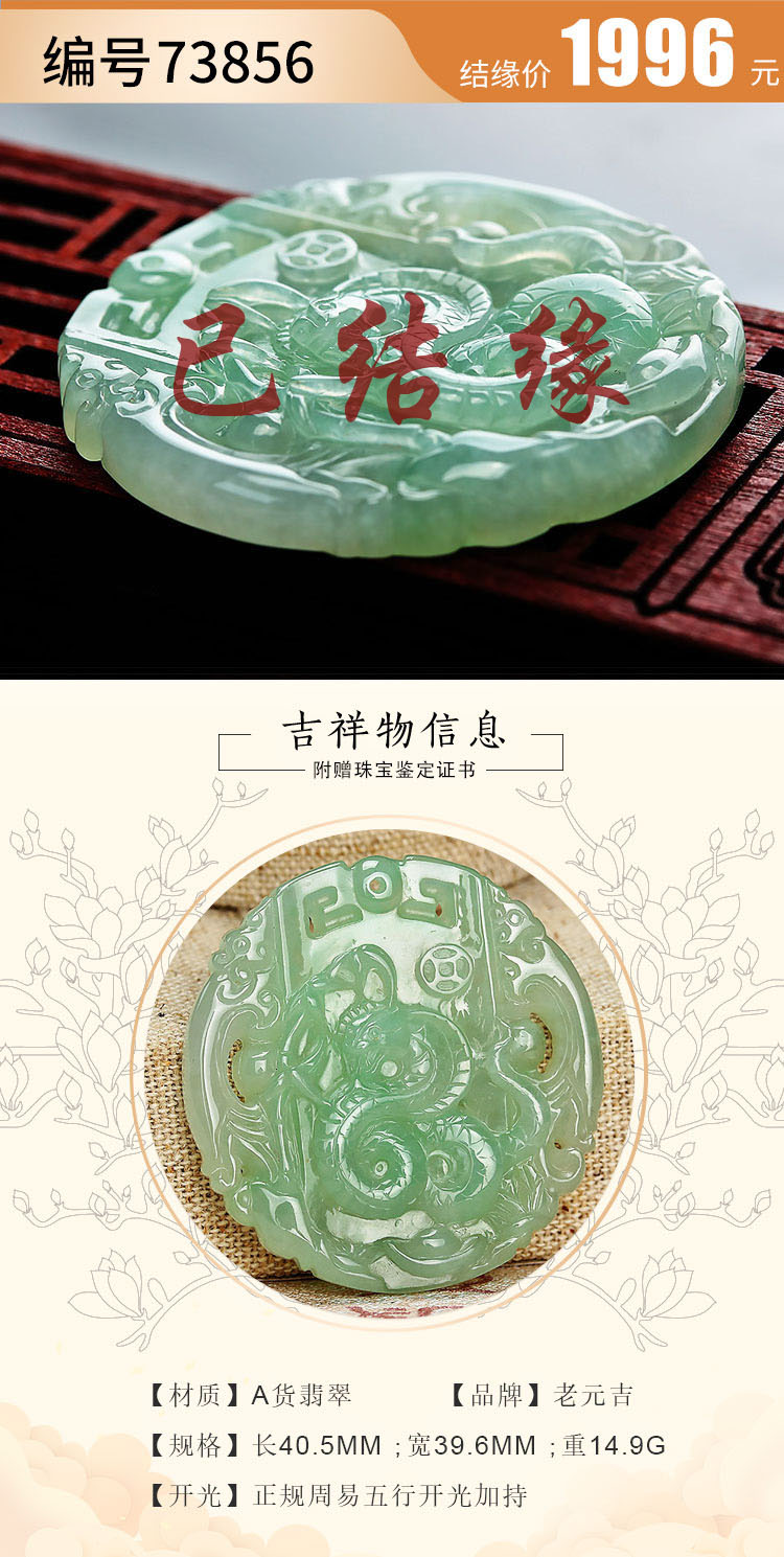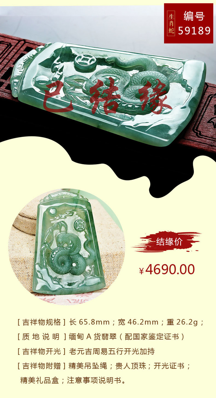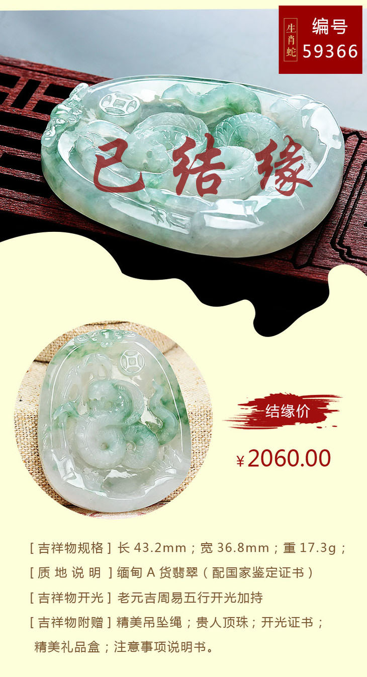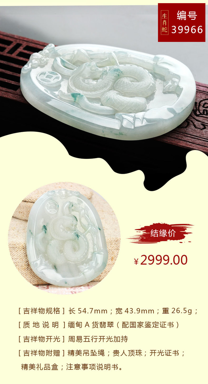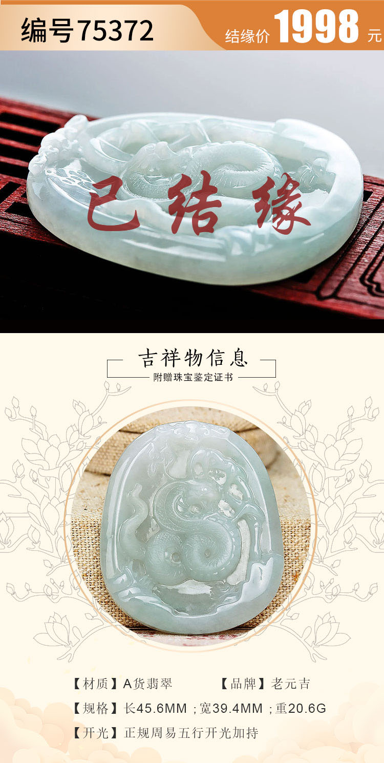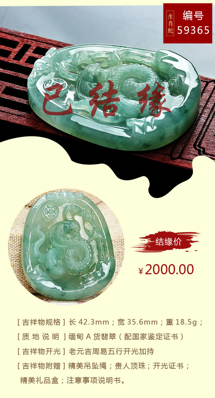翡翠款【生肖贵人蛇系列】玉石吊坠