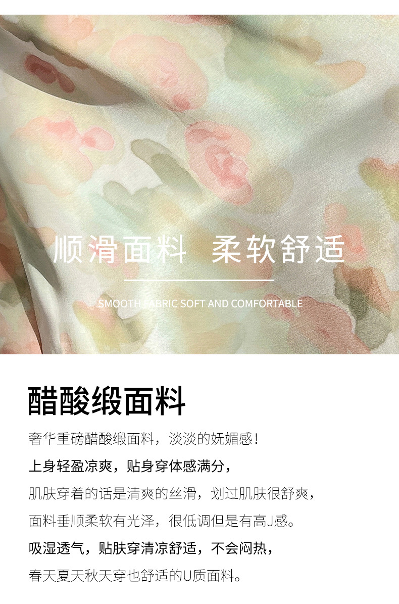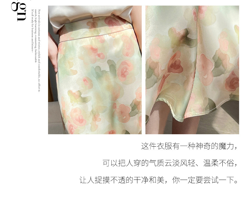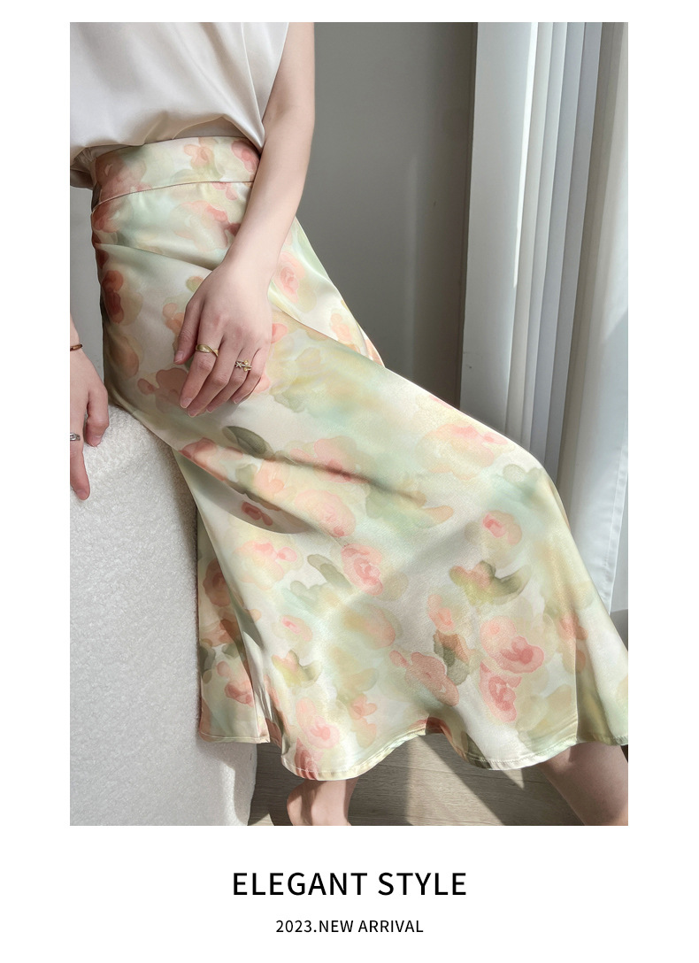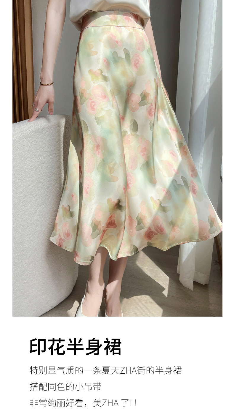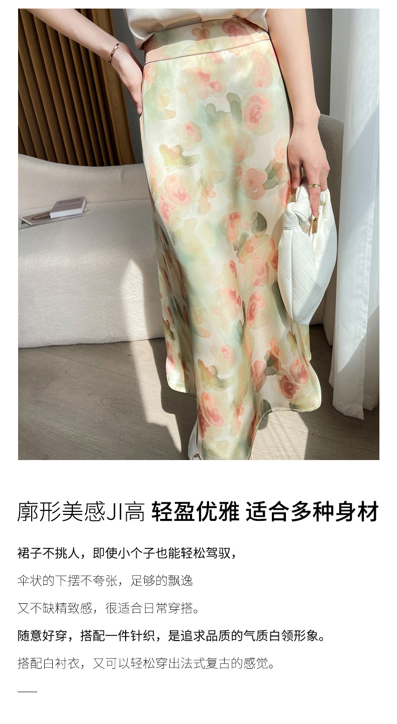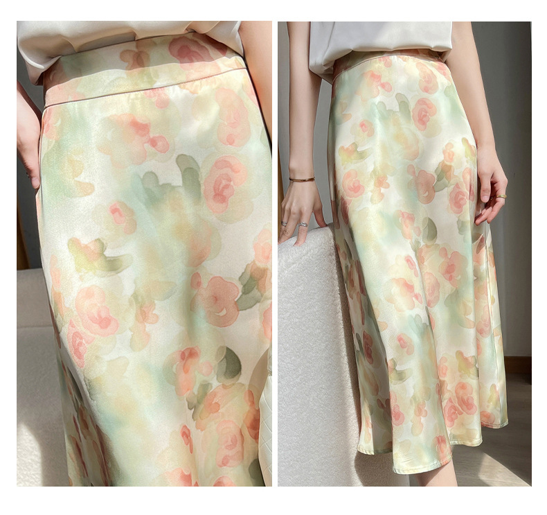 QHJY-JYA023216缎面印花长裙女 新款中腰显瘦醋酸时尚薄款碎花半身裙女