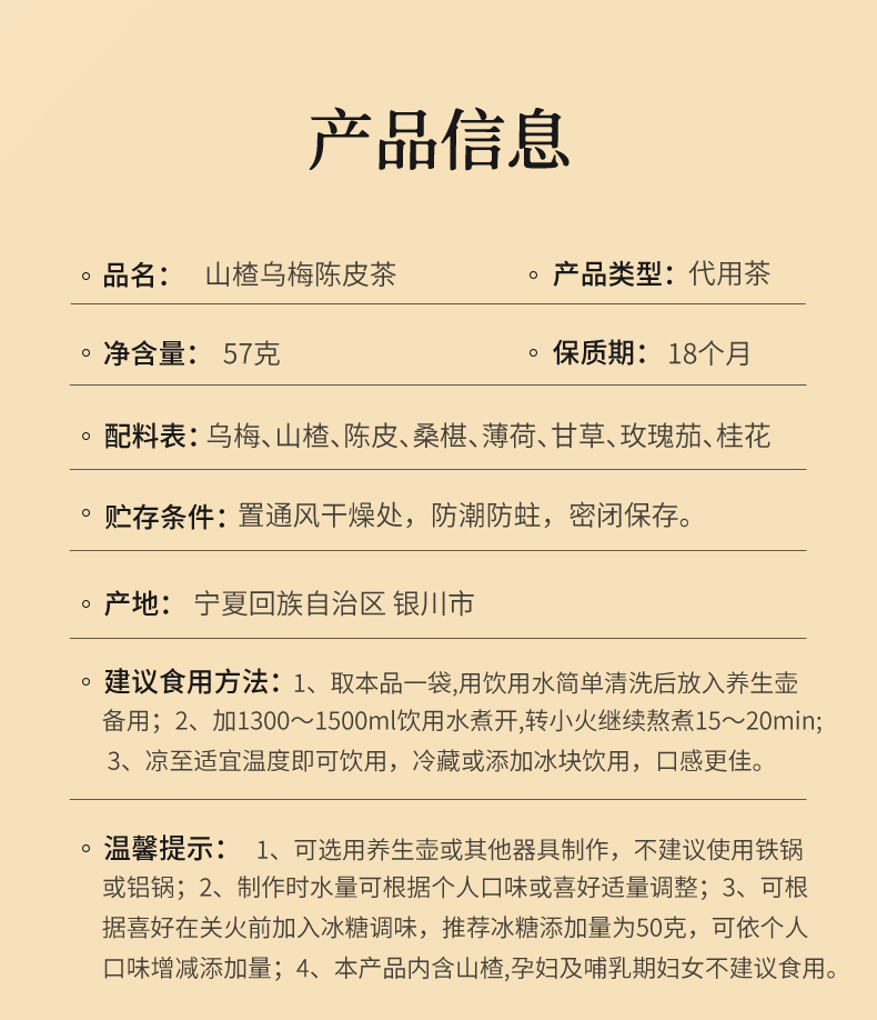 【正宗同仁堂品牌】北京同仁堂 青源堂 山楂乌梅陈皮茶 57克 大份分享装 精心选料 配料纯净SY