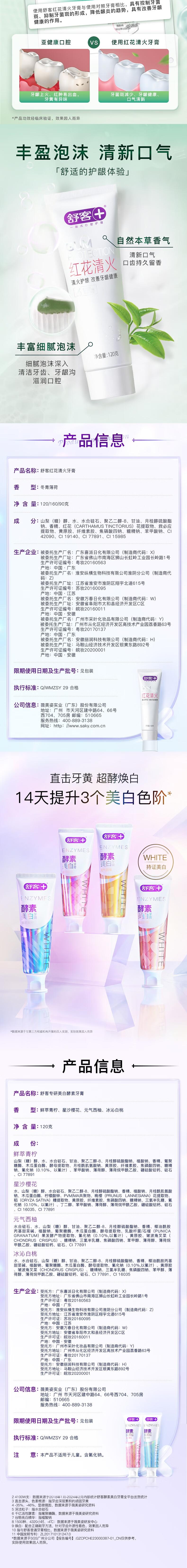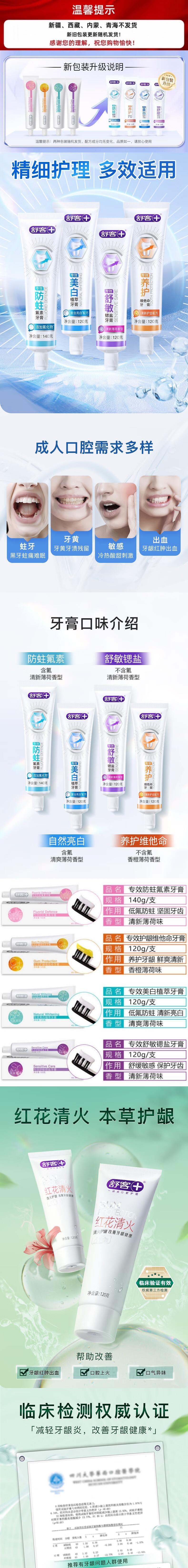 舒客 牙膏套装5支装(美白+舒敏+红花+樱花+青柠) skyg5zt