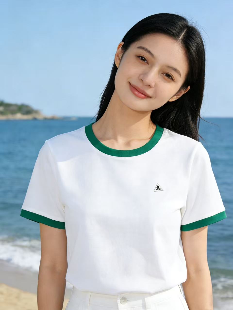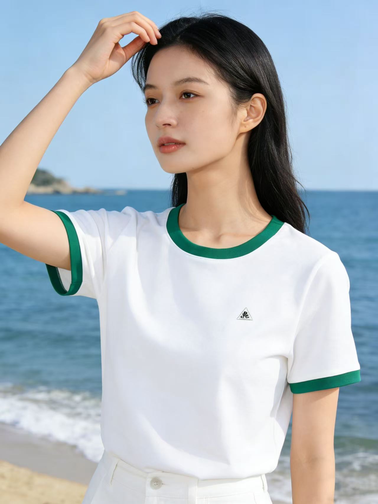 任选2件39.9元!超高性价比【自营】三角标绿撞色领!4006精梳棉95%圆领短袖T恤上衣-喜出