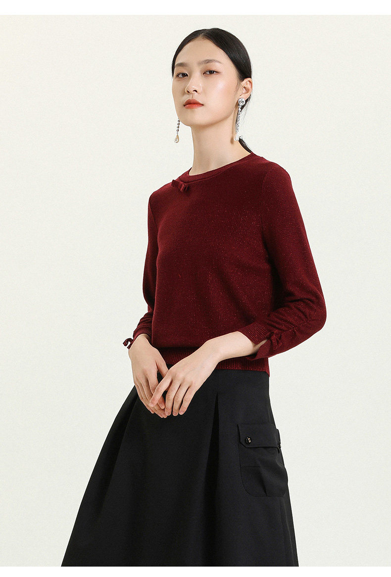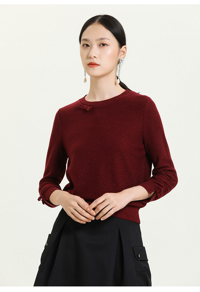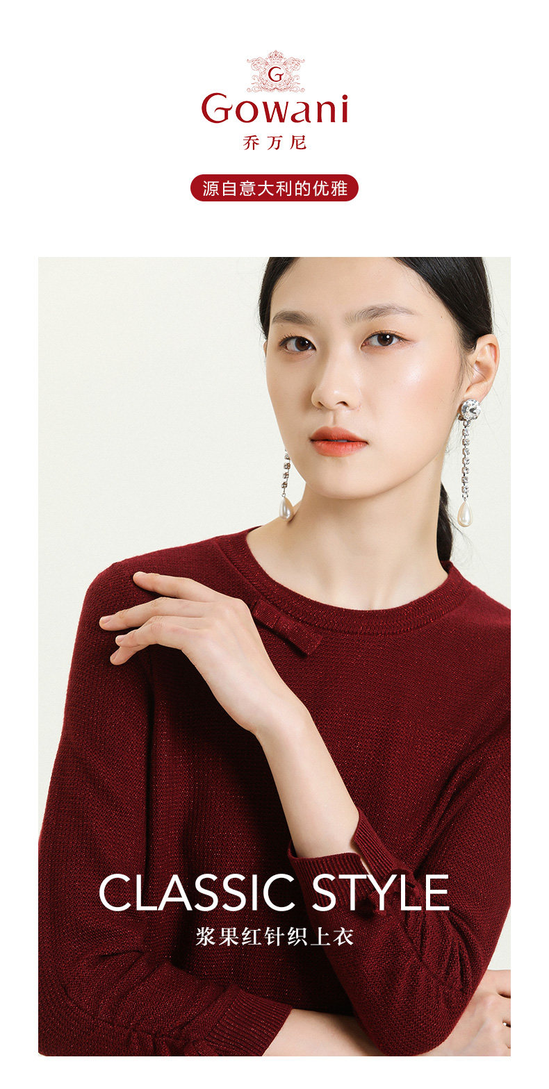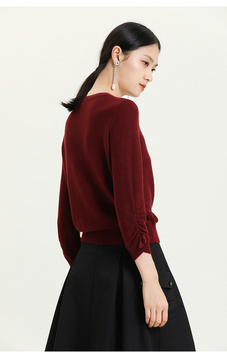 【两色可选】乔万尼早秋新款重工羊毛知性风格抽褶设计宽松舒适羊毛衫上衣ES3M593