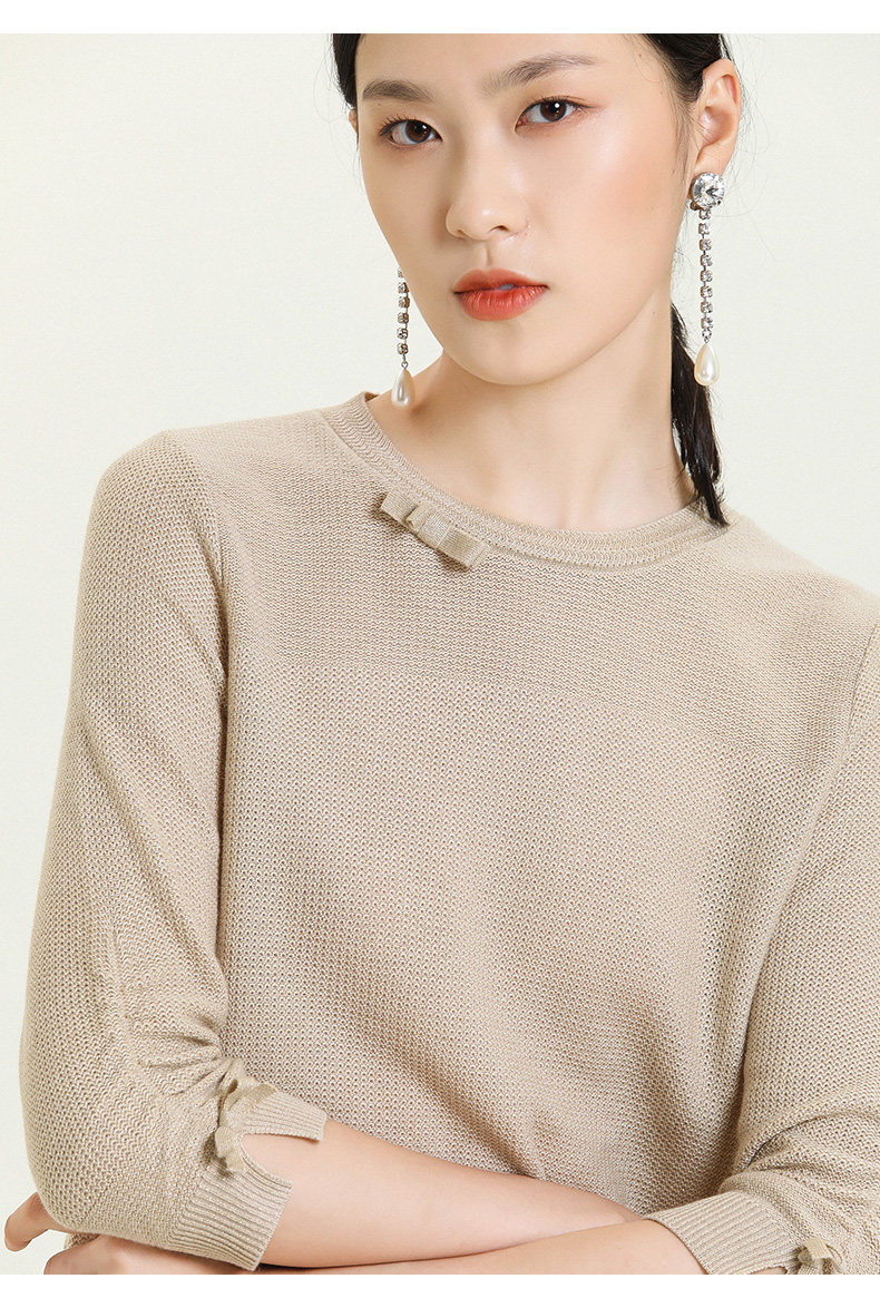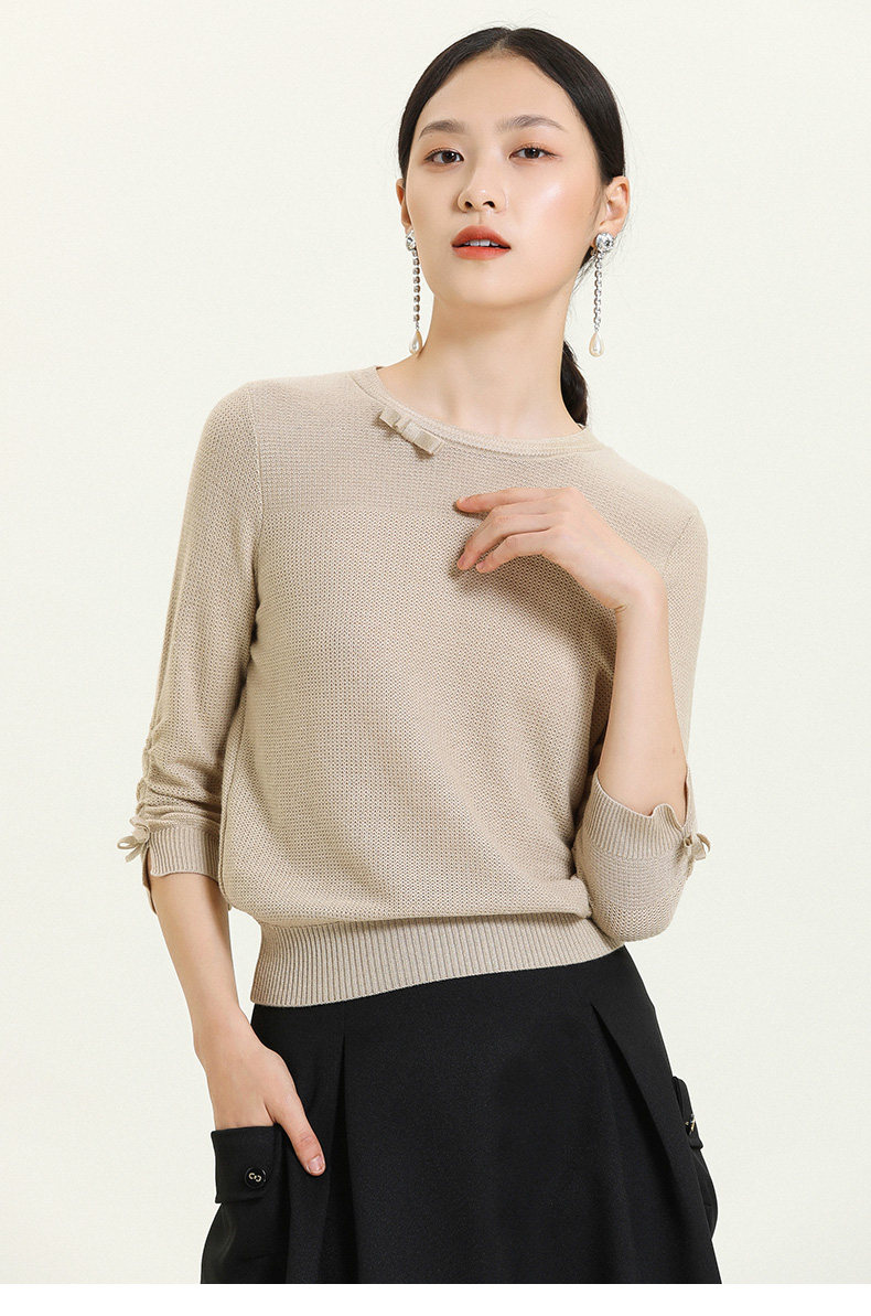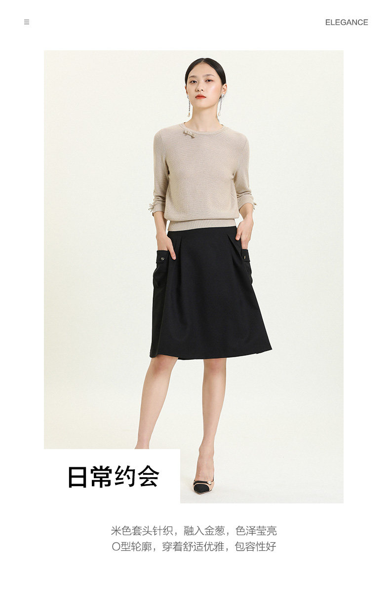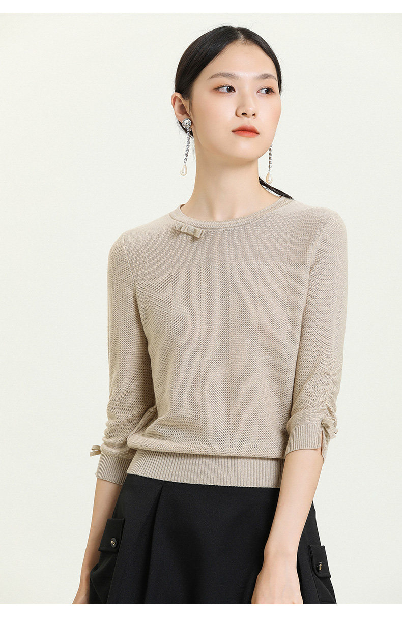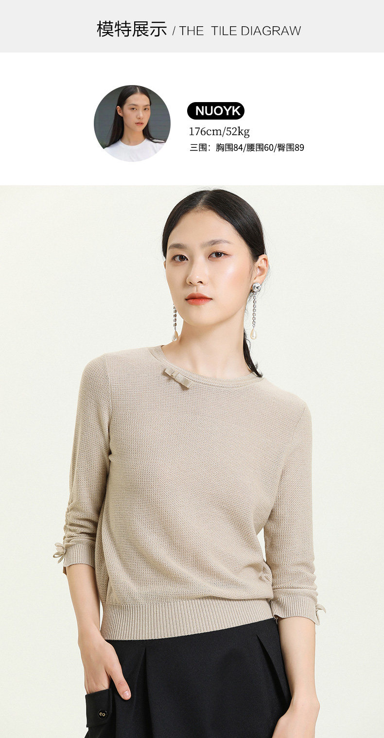 【两色可选】乔万尼早秋新款重工羊毛知性风格抽褶设计宽松舒适羊毛衫上衣ES3M593