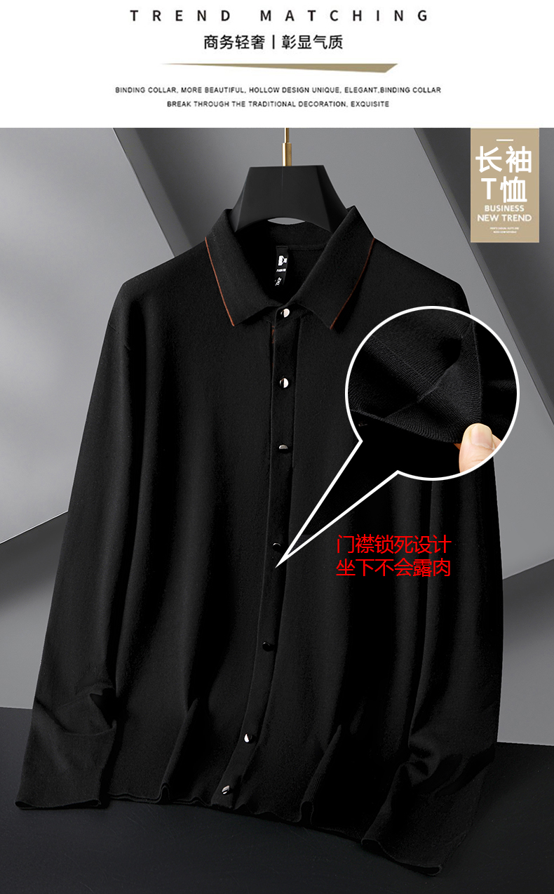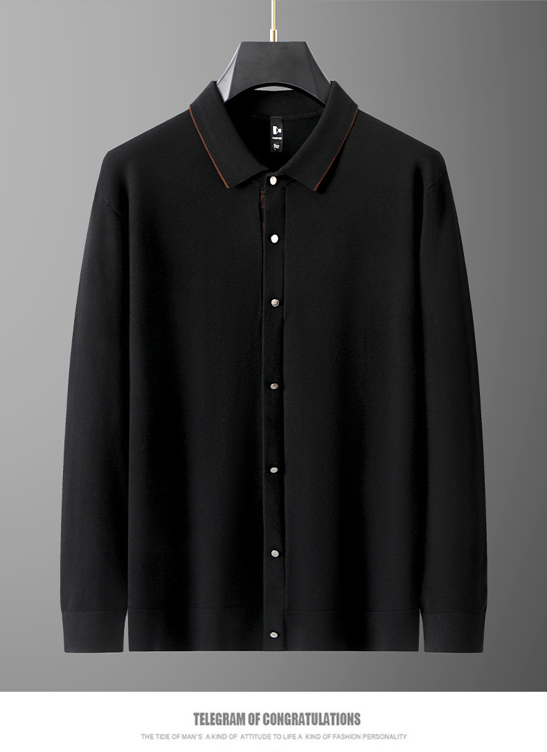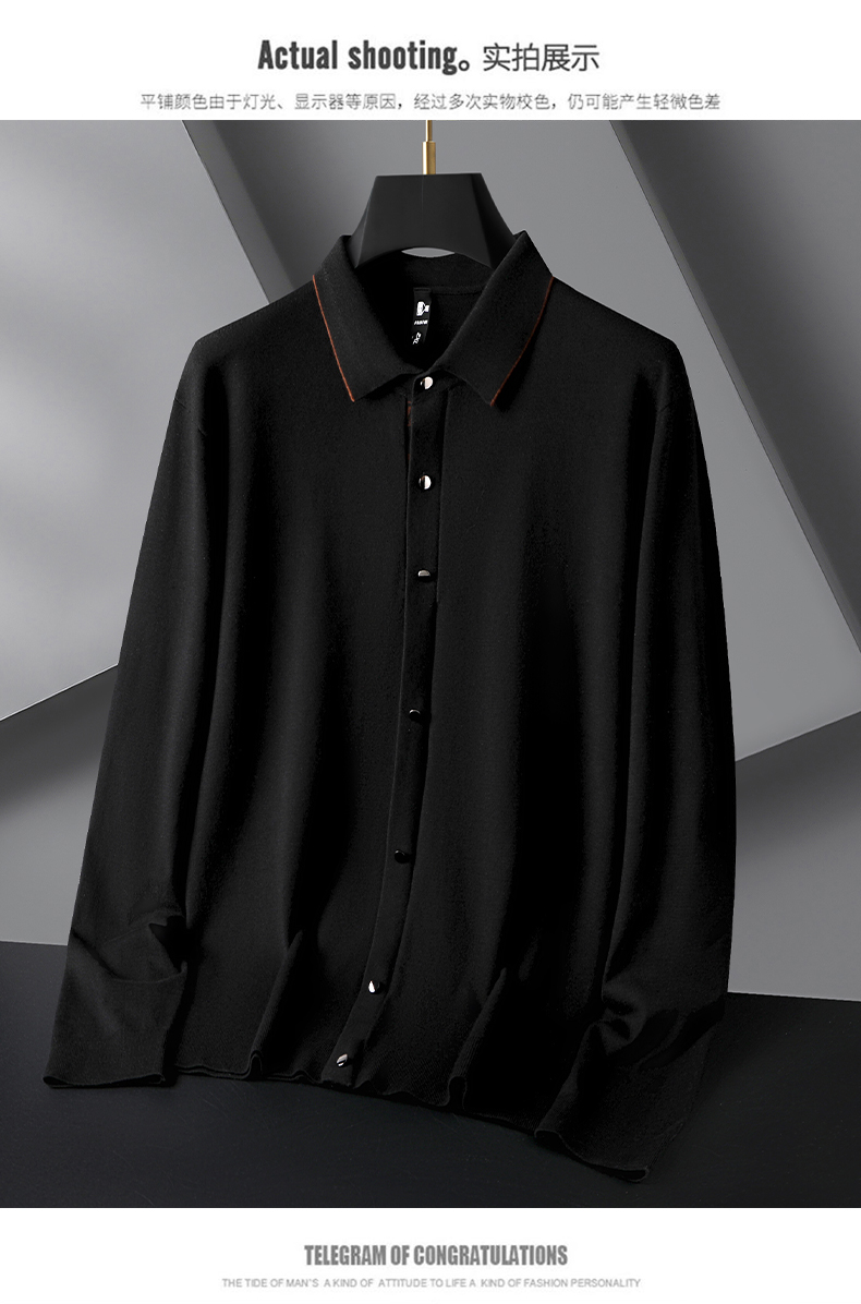 【新款DG】大依优型大码长袖针织开衫衬衫翻领加肥加大肥佬休闲宽松透气上衣打底毛衫