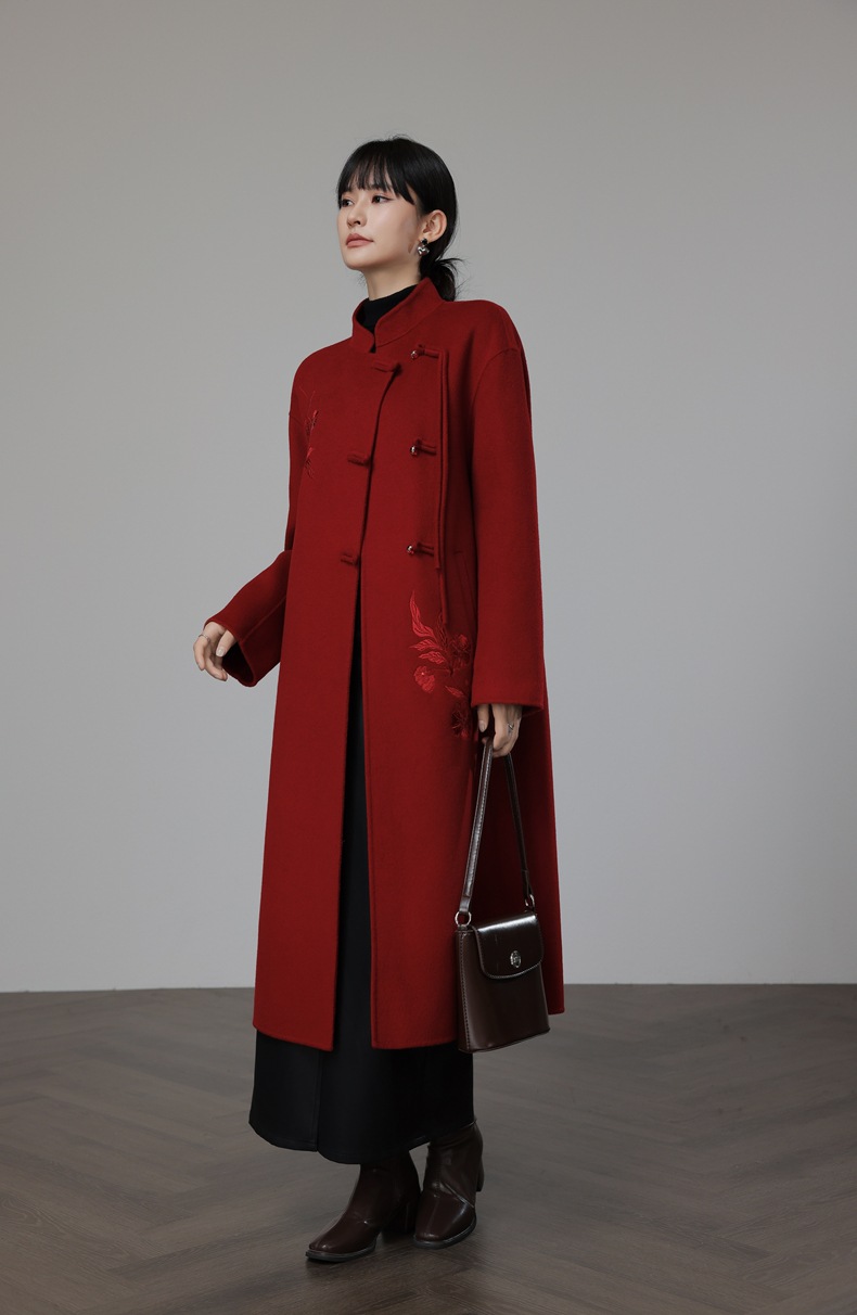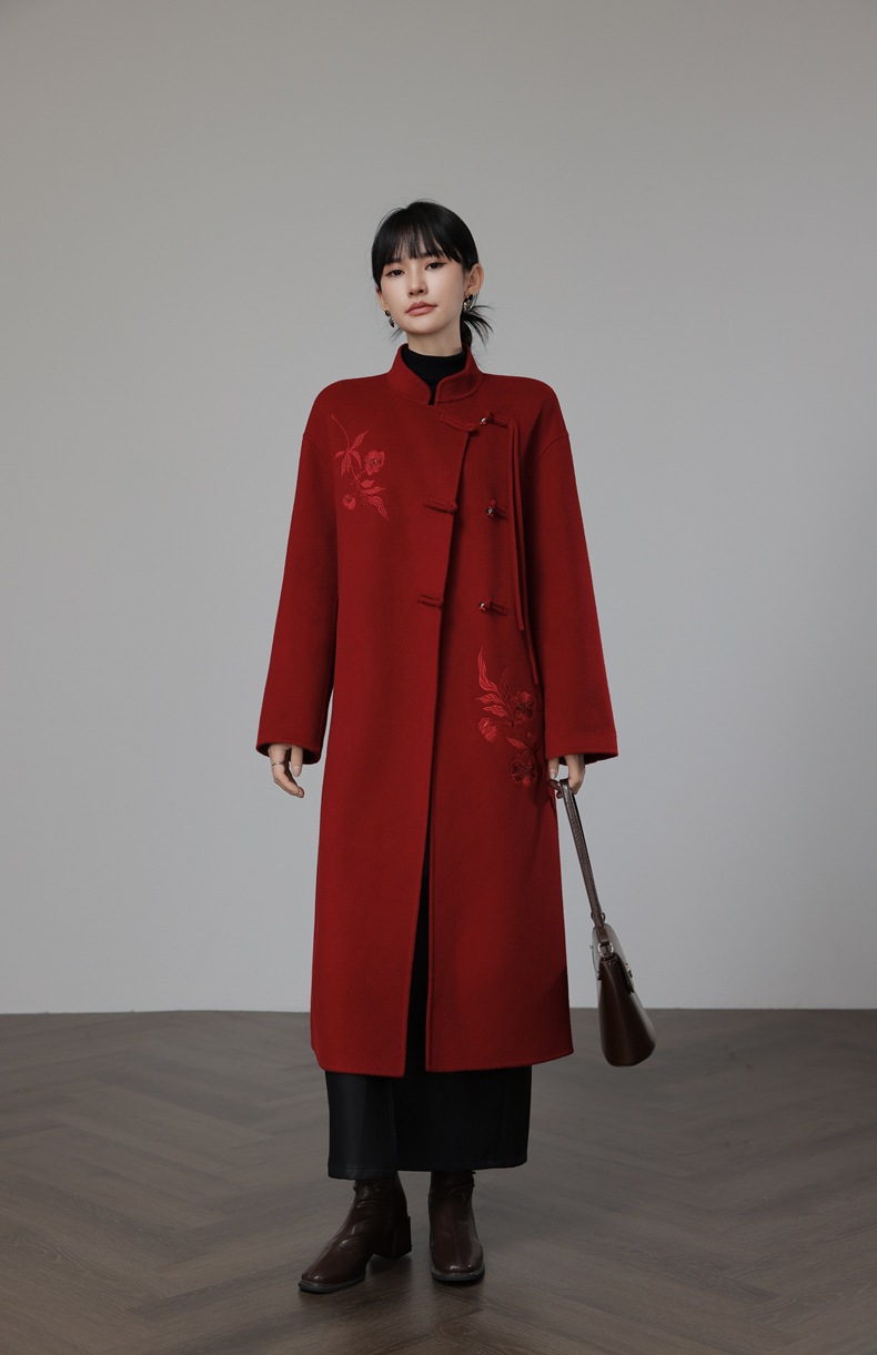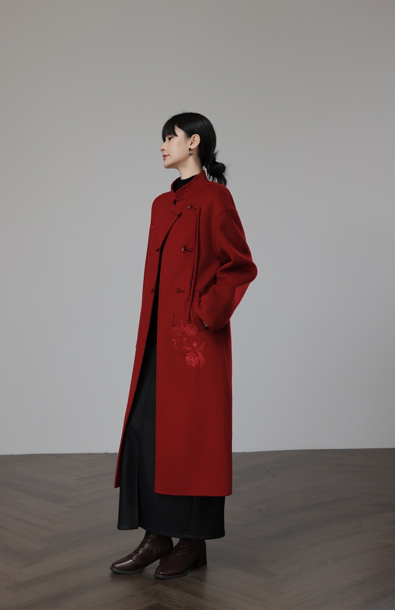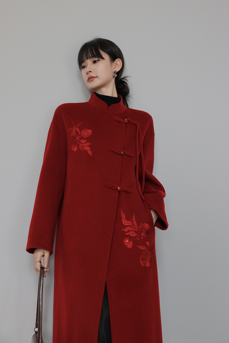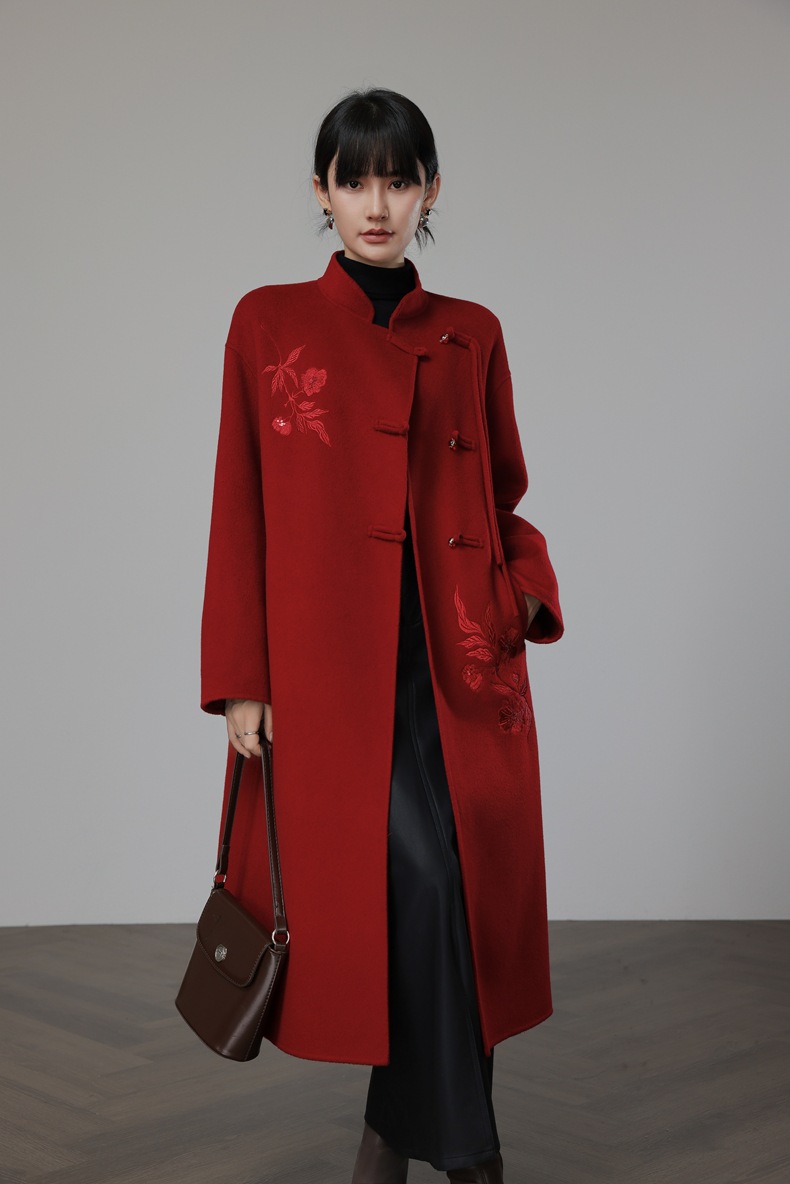 新中式国风红色双面羊绒大衣,新年战袍羊毛呢外套KQ-069612