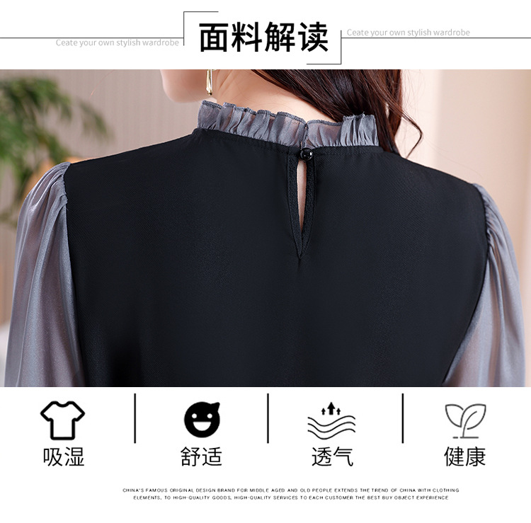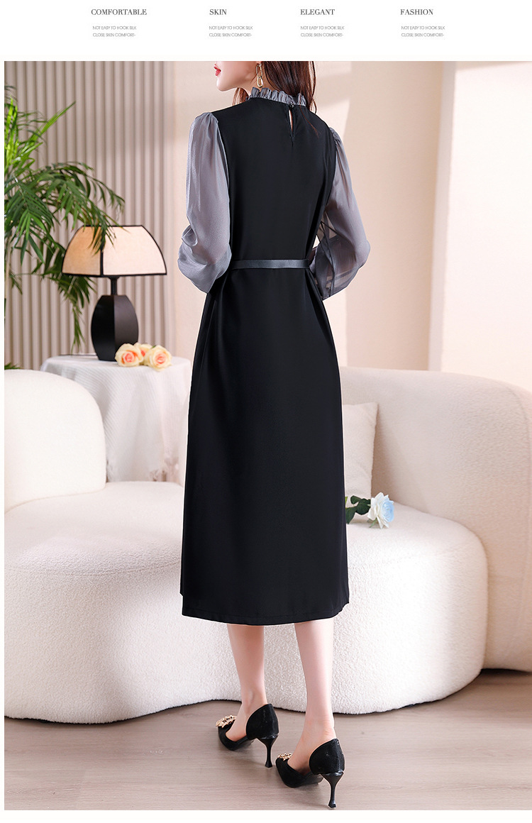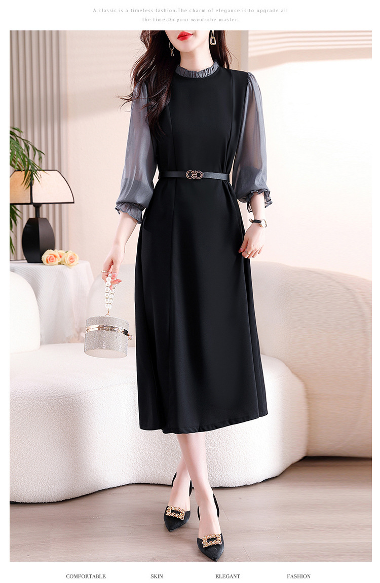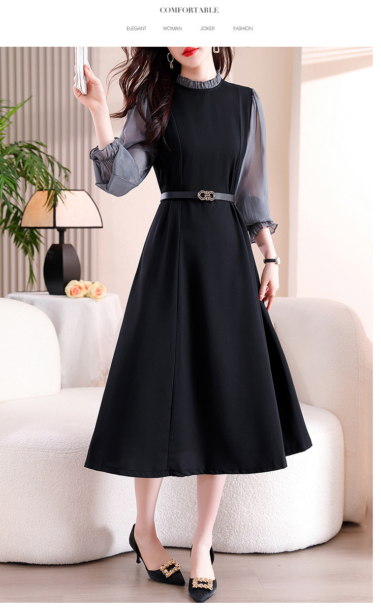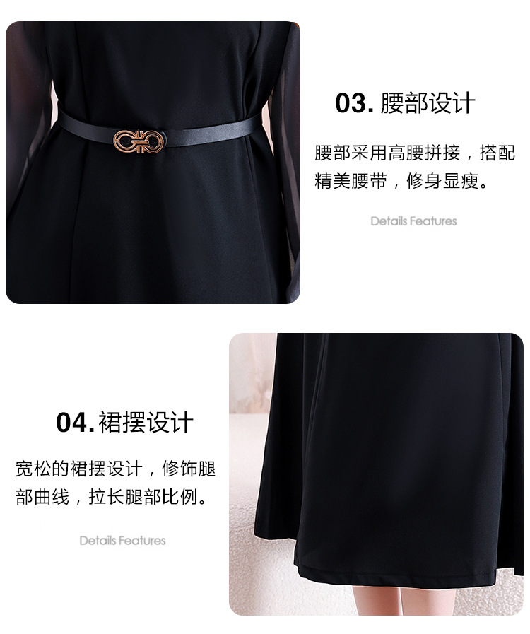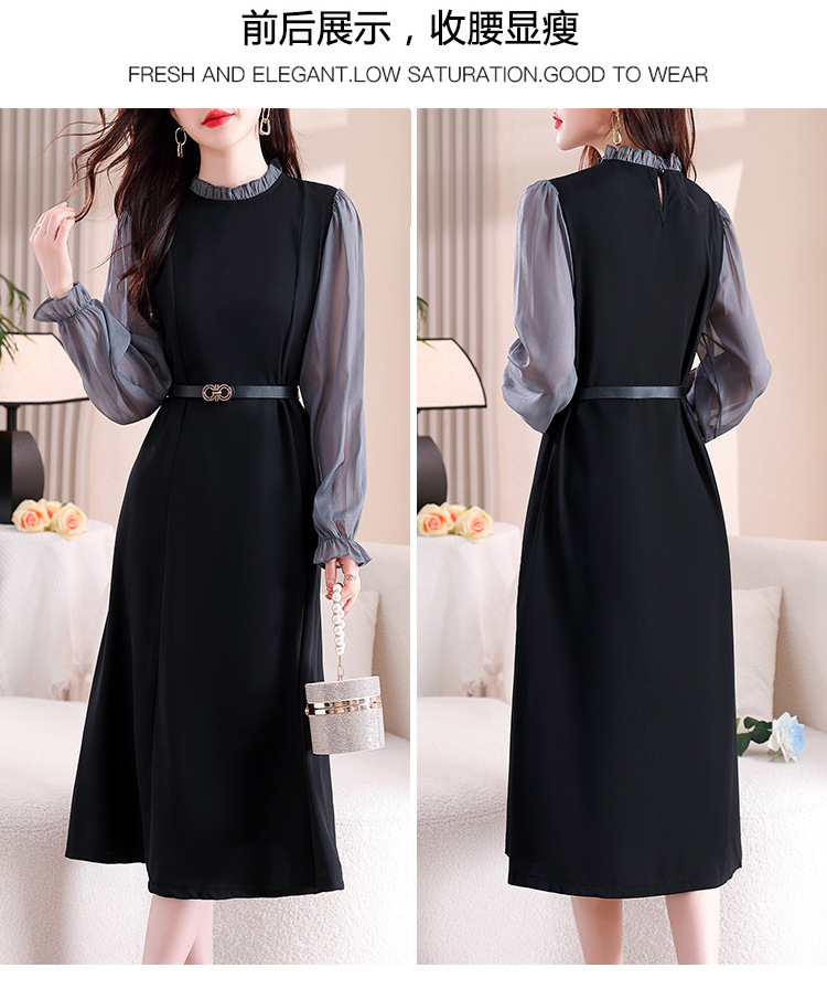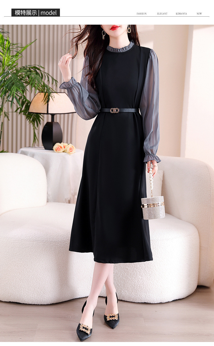 雀说撞色连衣裙新款时尚洋气圆领木耳乌青色拼接减龄中长裙AL9666