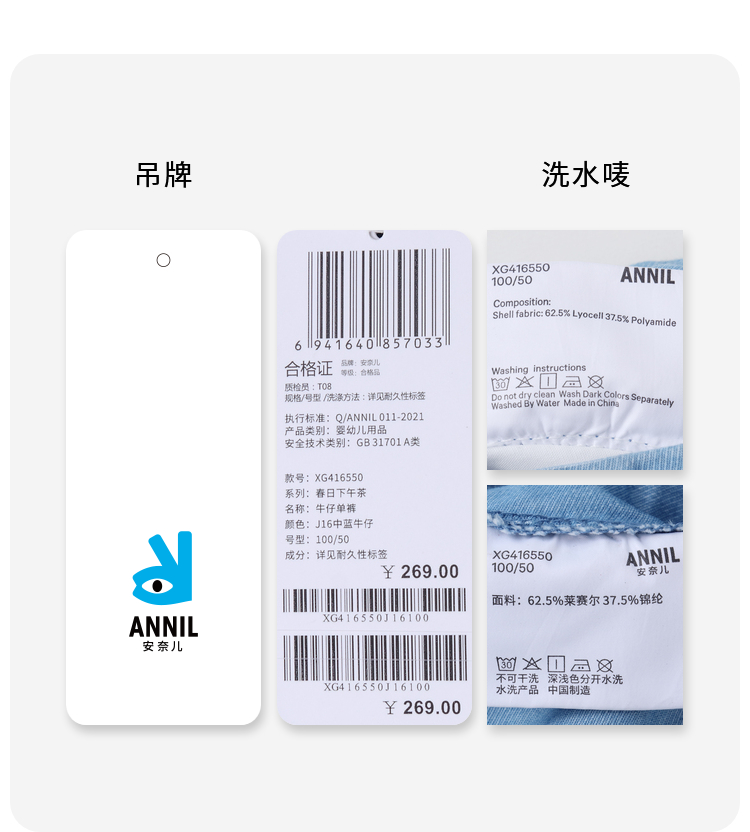女童抗菌防晒冰牛仔单裤裤子新款安奈儿童装实体店同款XG416550