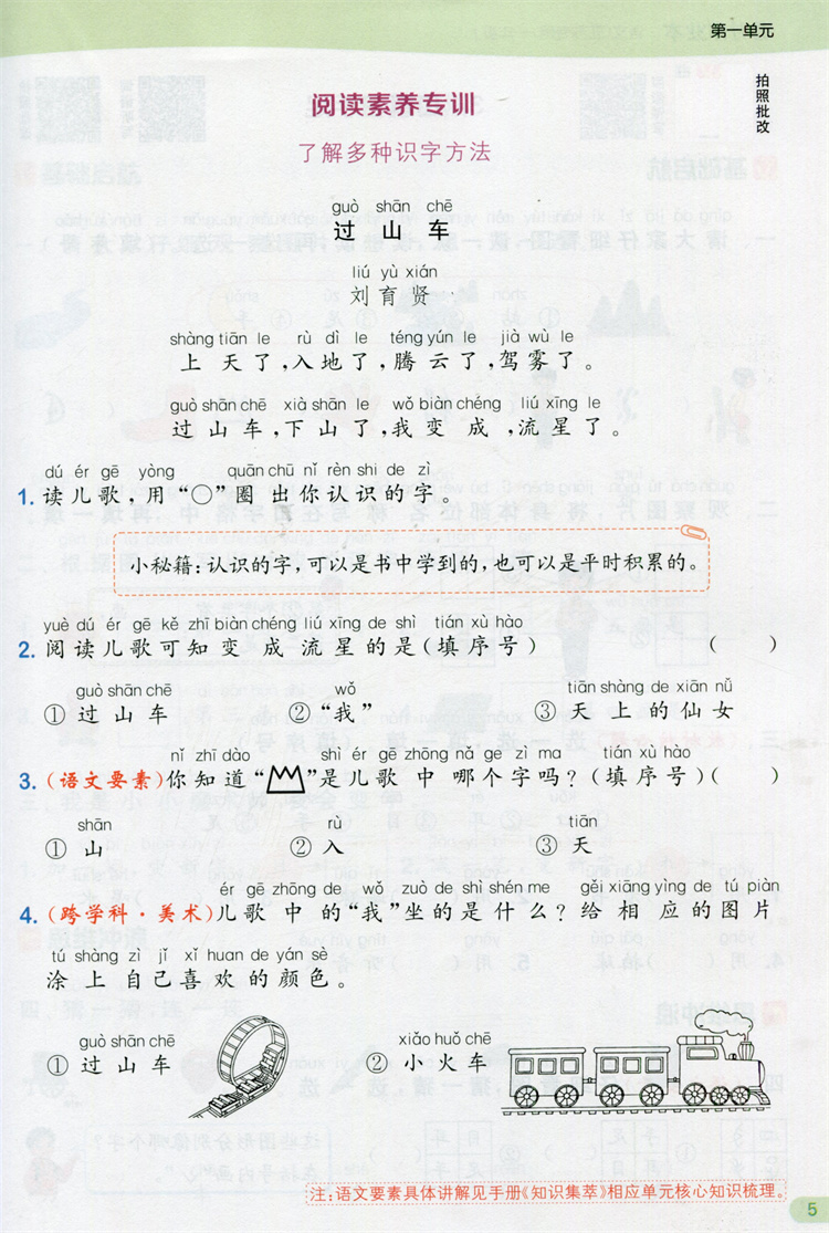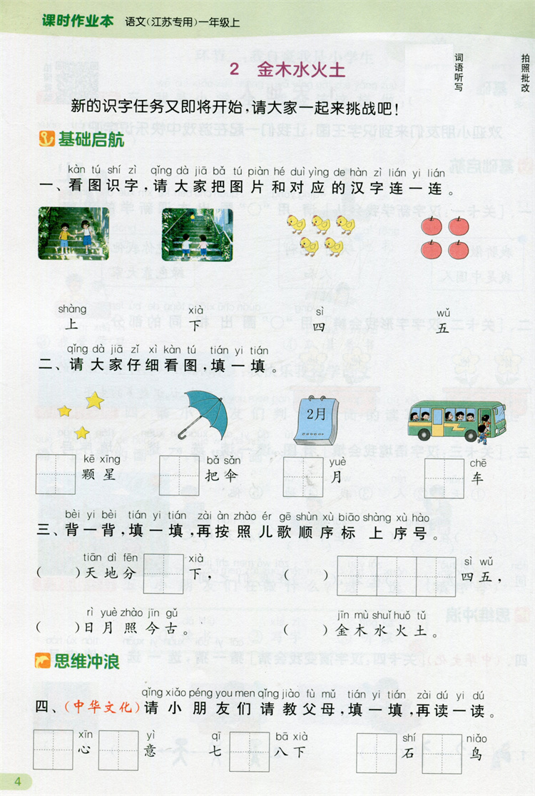 2025年秋 语文课时作业本1上 配人教版 部编版 一年级上 小学教辅 学生用书 新题型 新情境 新考法 语文习题集 江苏专用 同步教辅