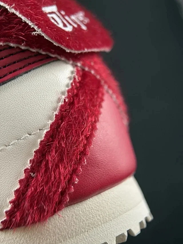 材质:牛剖层皮革,白红限定皮标是仿马毛质感人造毛