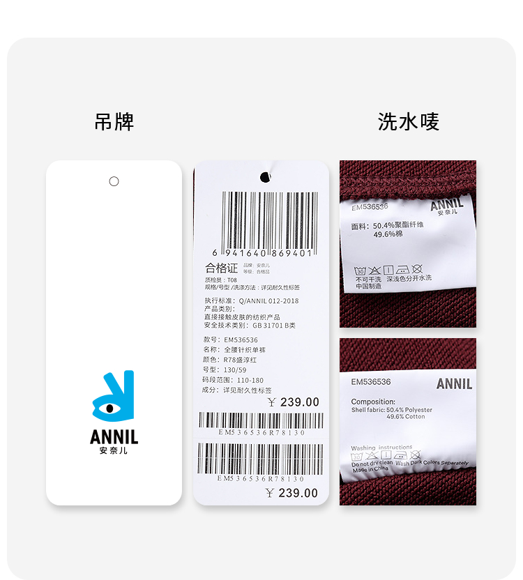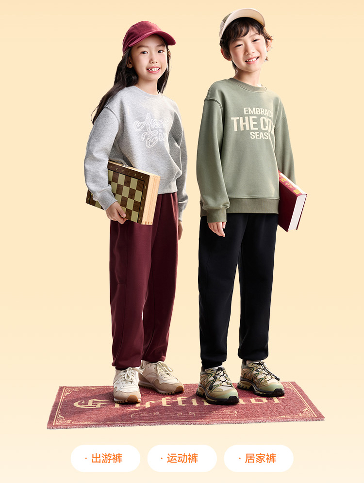 【活力百搭运动裤】男女童全腰针织单裤秋季新款安奈儿童装EM536536
