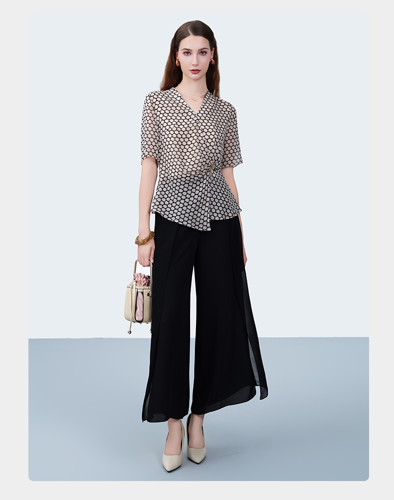 乔万尼2025新品100%真丝飘逸轻盈阔腿裤ED2F518