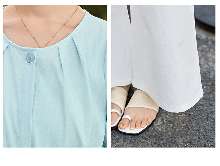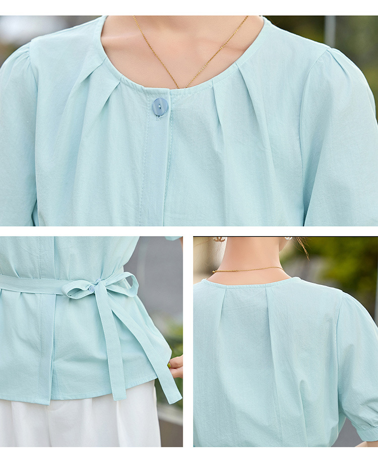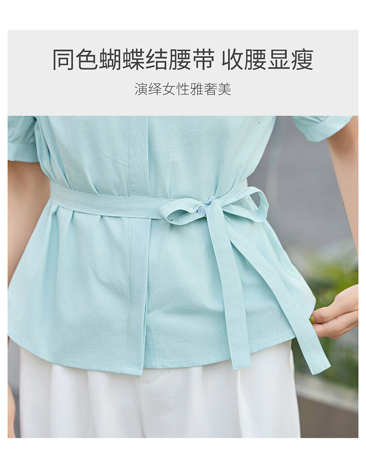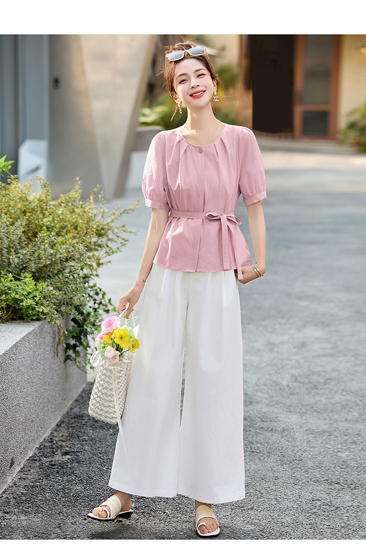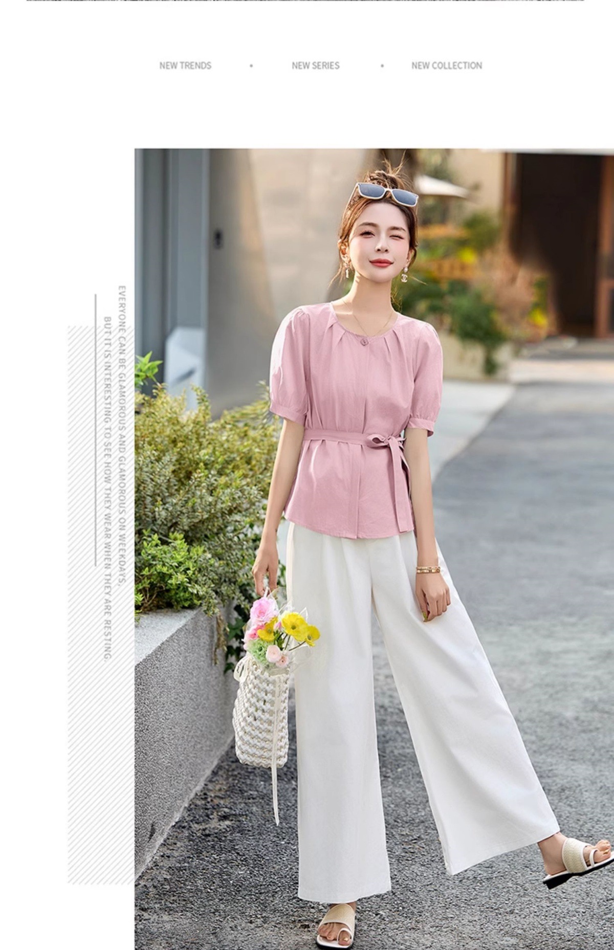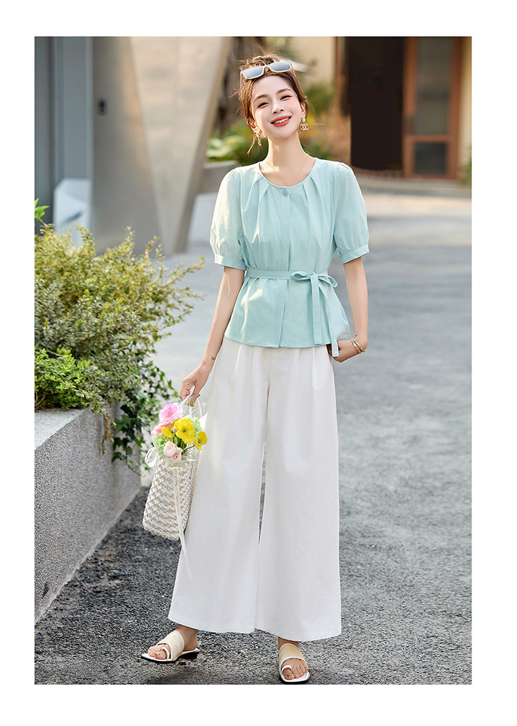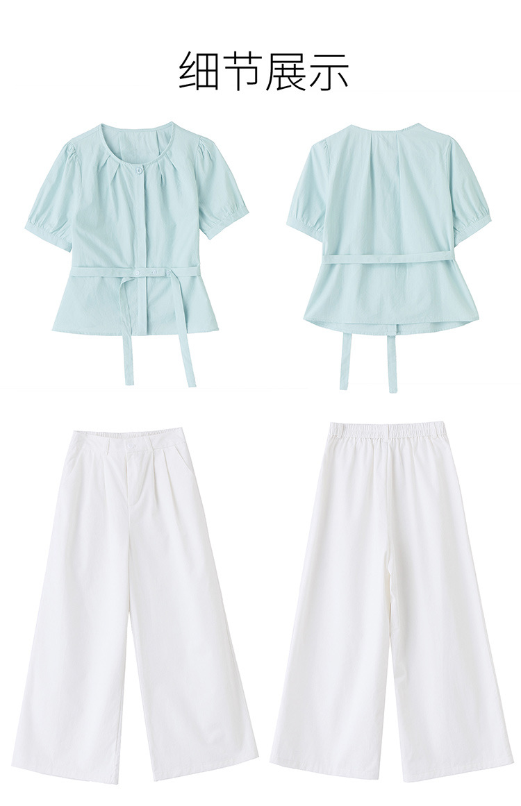 法式清新显瘦百搭圆领泡泡袖衬衫,高腰八分阔腿裤两件套HR-MUZL8027