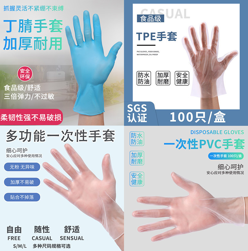 【100只装】一次性手套透明PVC高弹加厚劳保家用外出防护食品级PVC