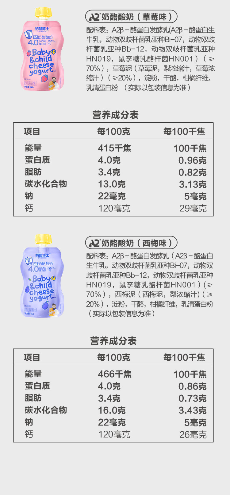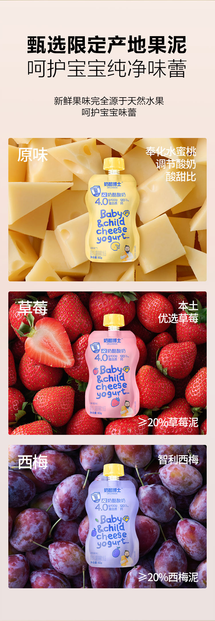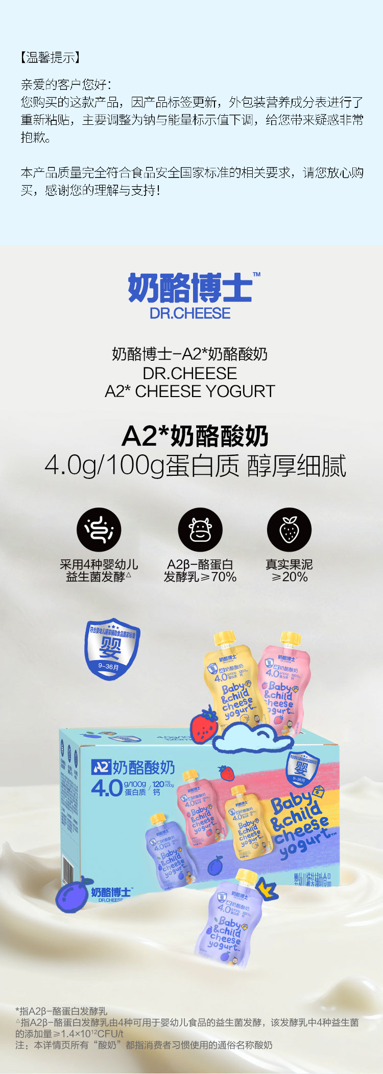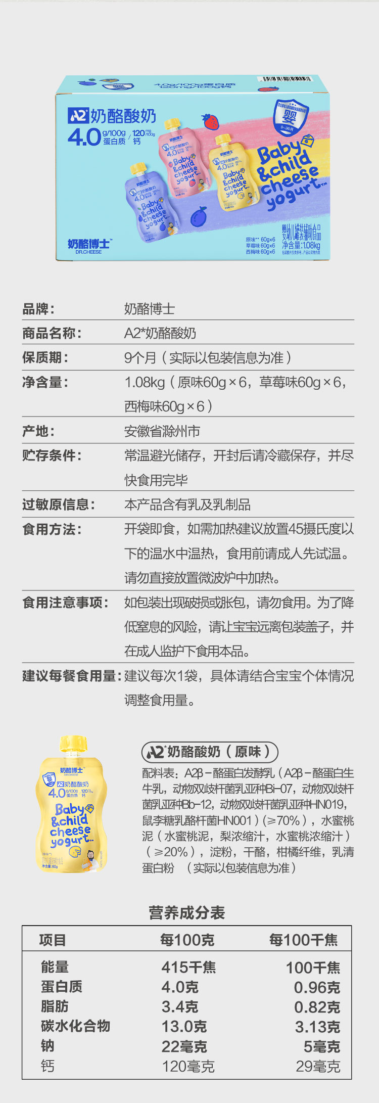 【山姆同款】A2奶酪酸奶礼盒装60g*18袋(原味60g*6袋+草莓味60g*6袋+西梅味60g*6袋)