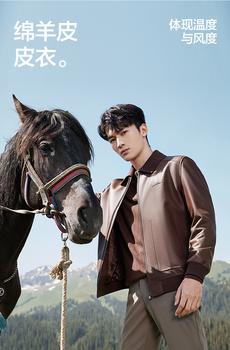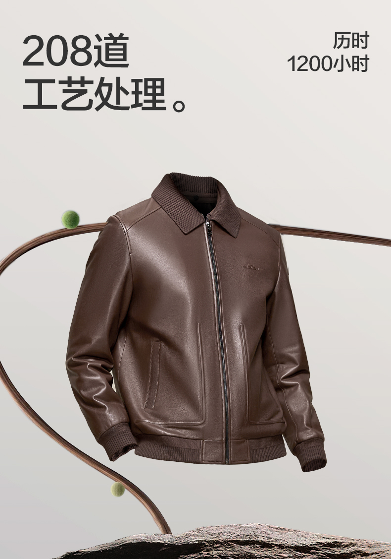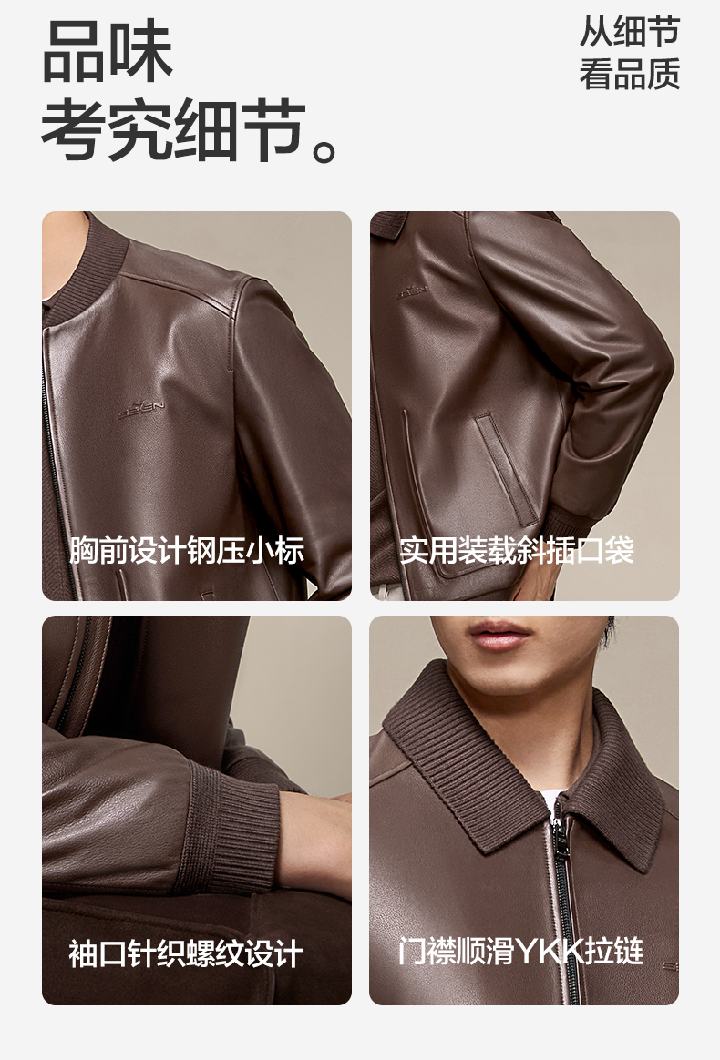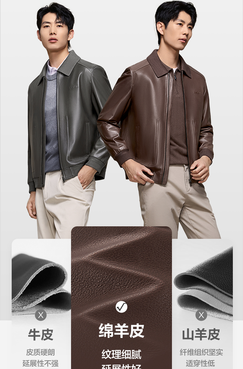 【绵羊皮/可拆卸针织领】柒牌真皮皮衣男士秋冬新款商务休闲外套129J70570