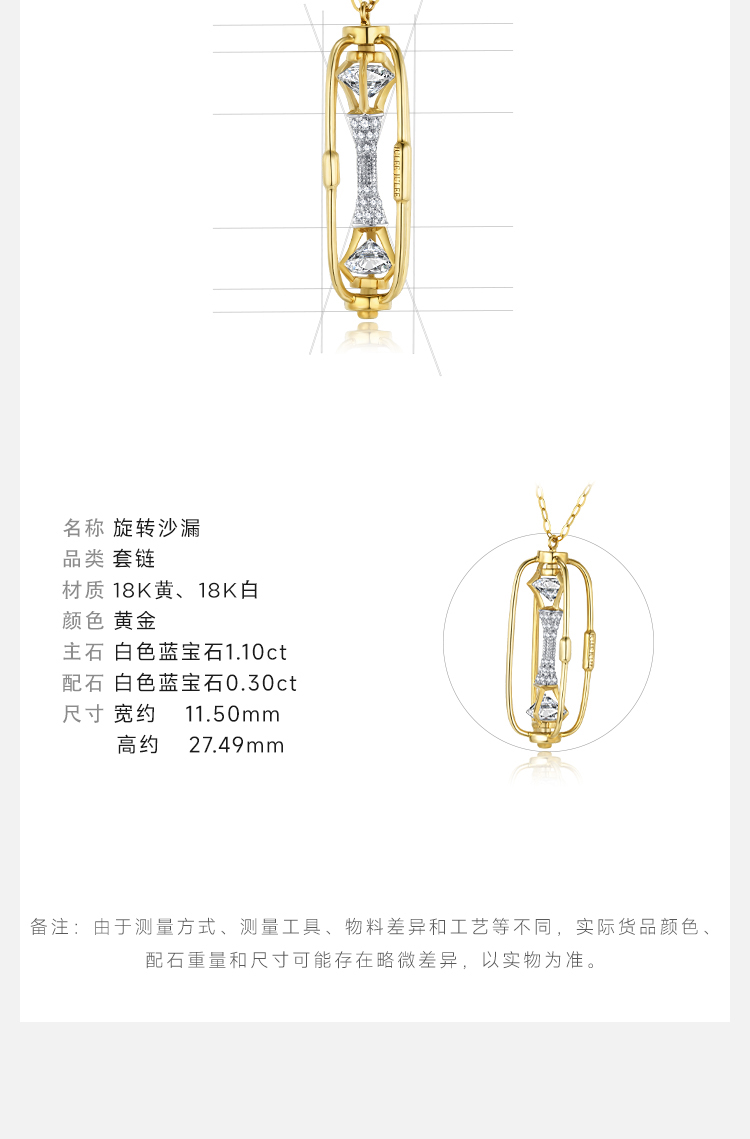 【旋转沙漏】JULEEJULEE茱俪 18K黄金白蓝宝项链