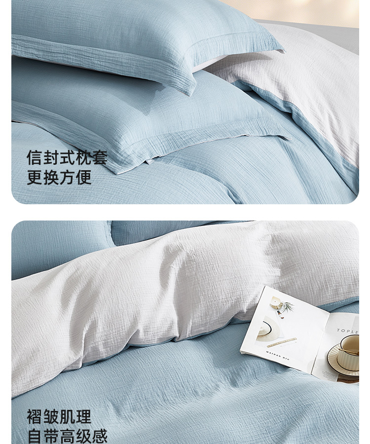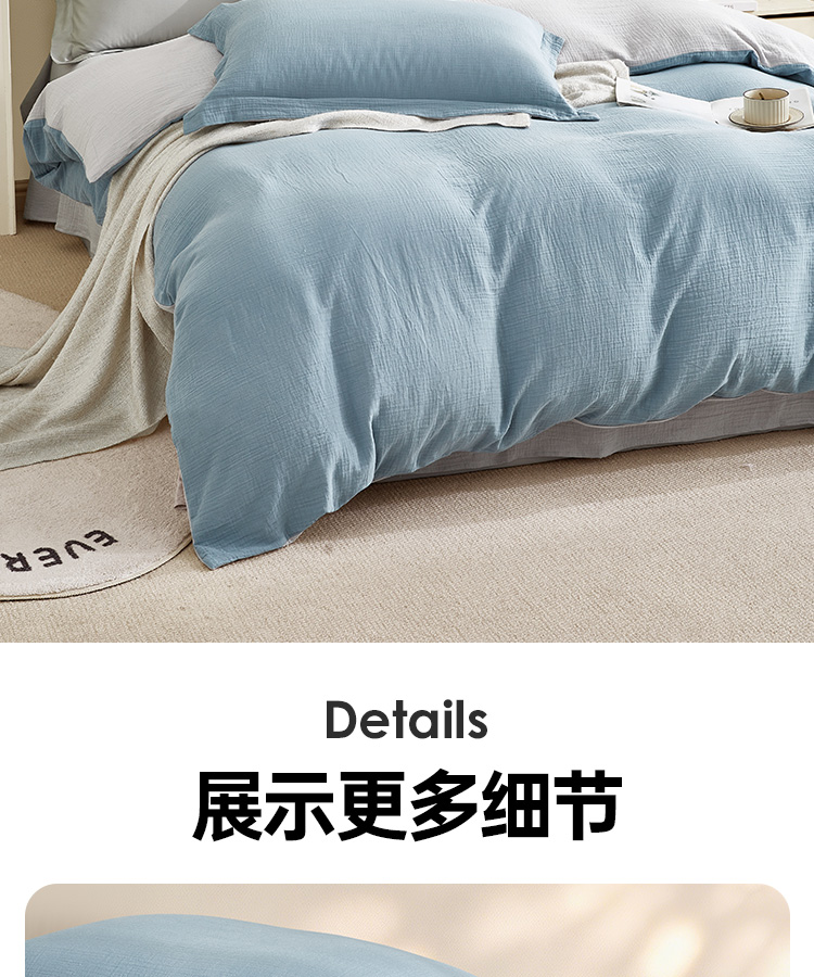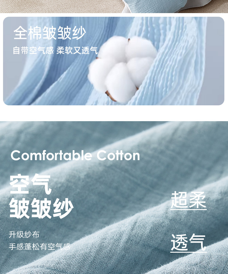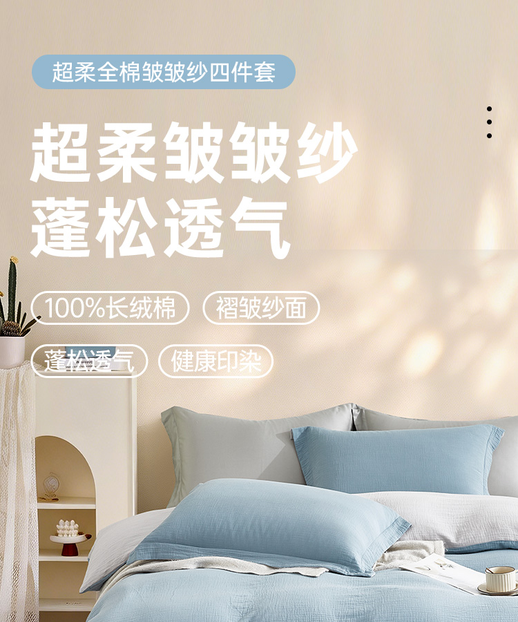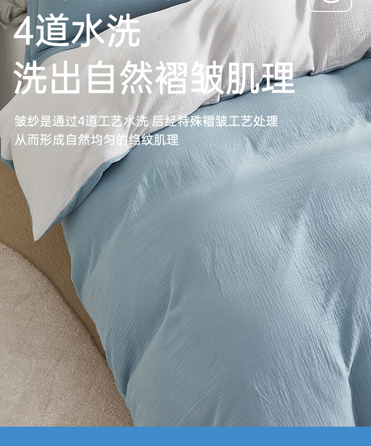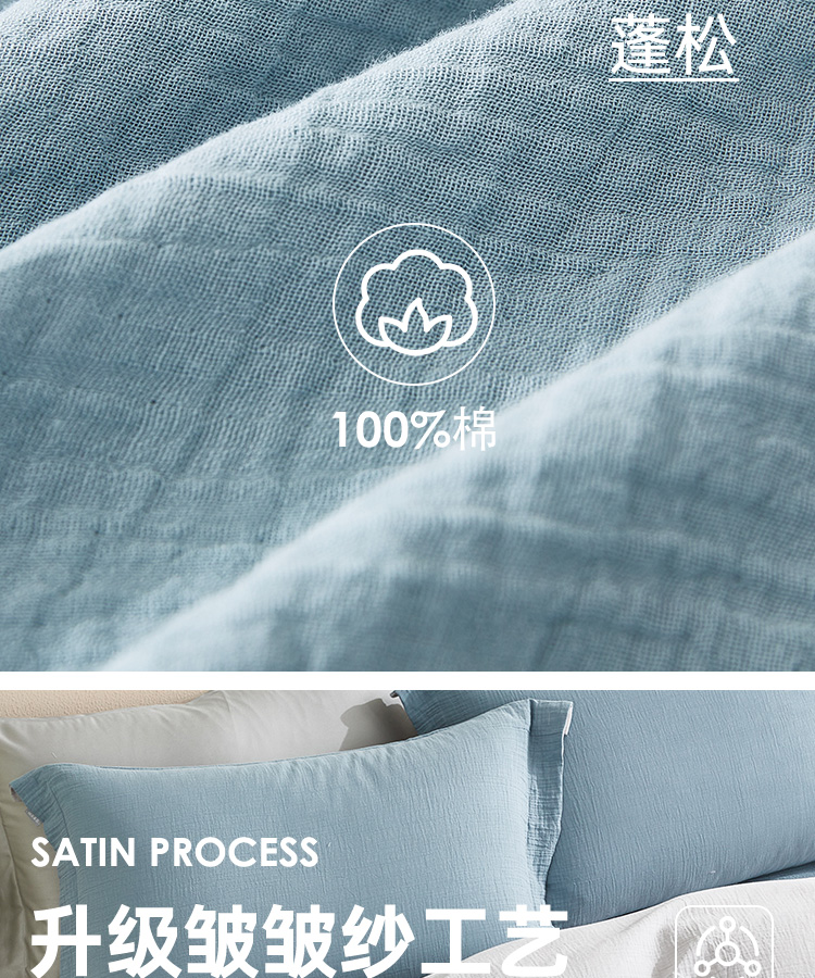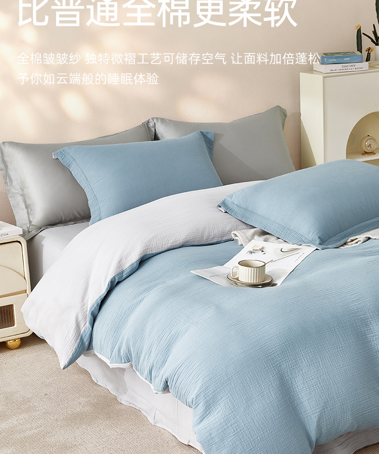 超柔全棉皱皱纱四件套(云山兰/月光灰)