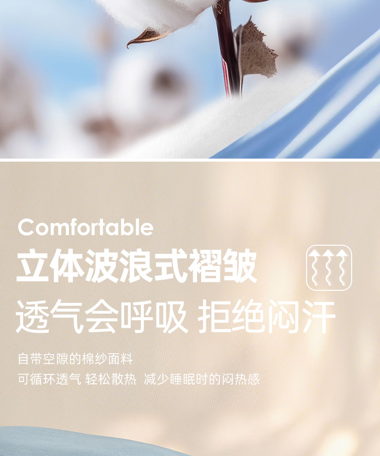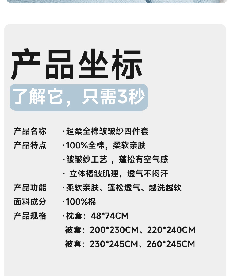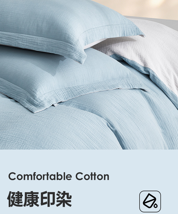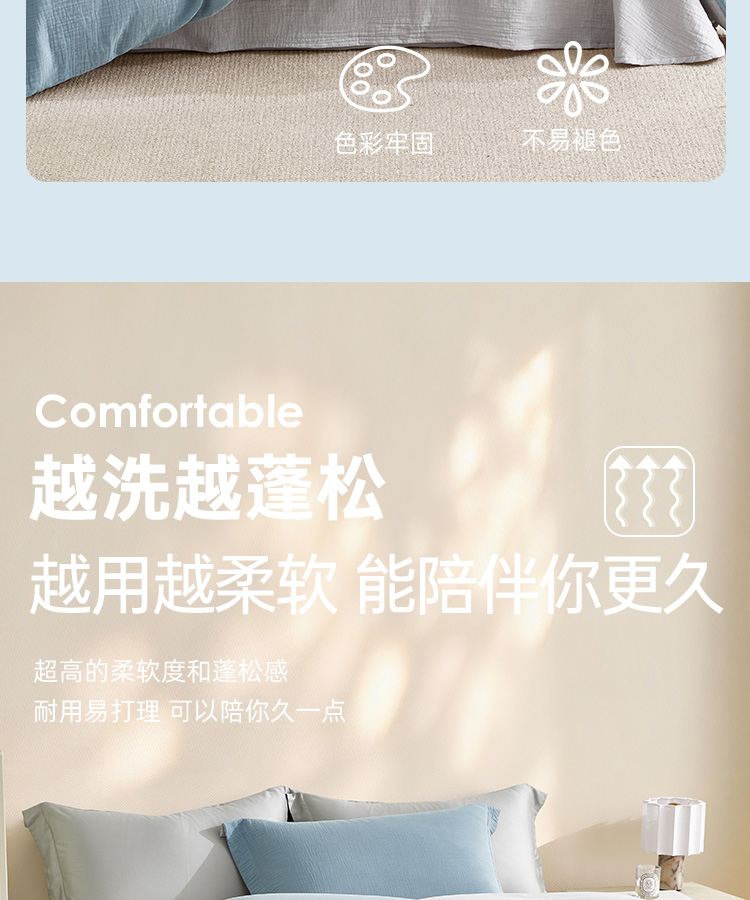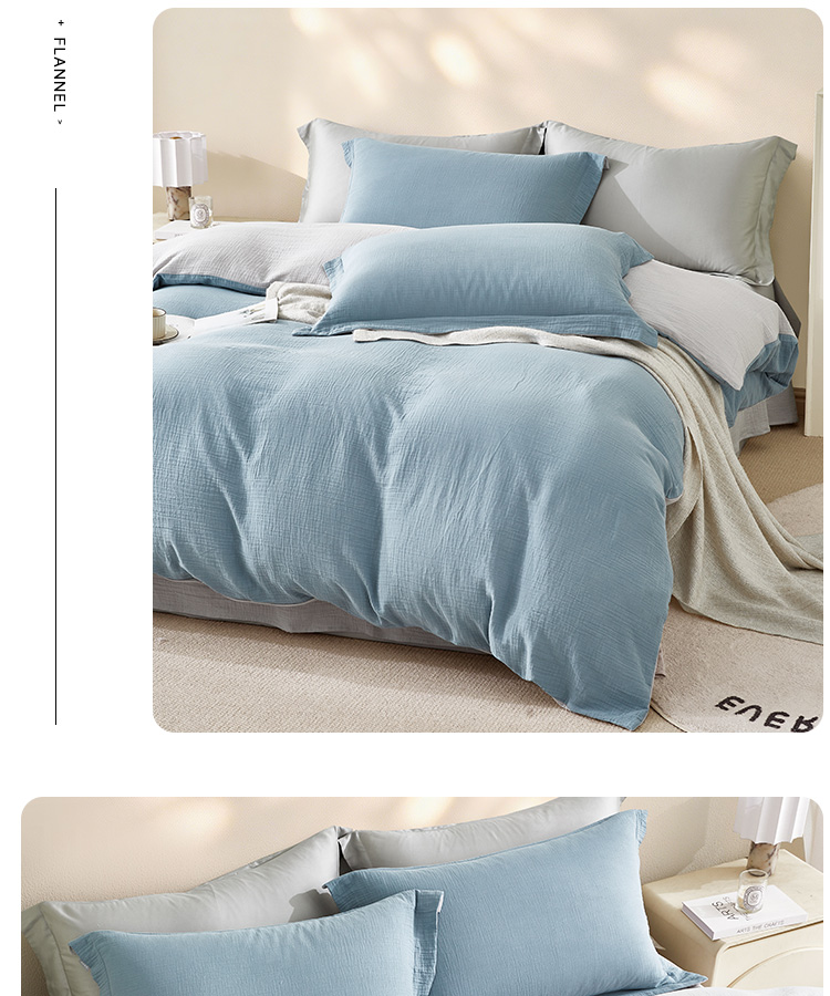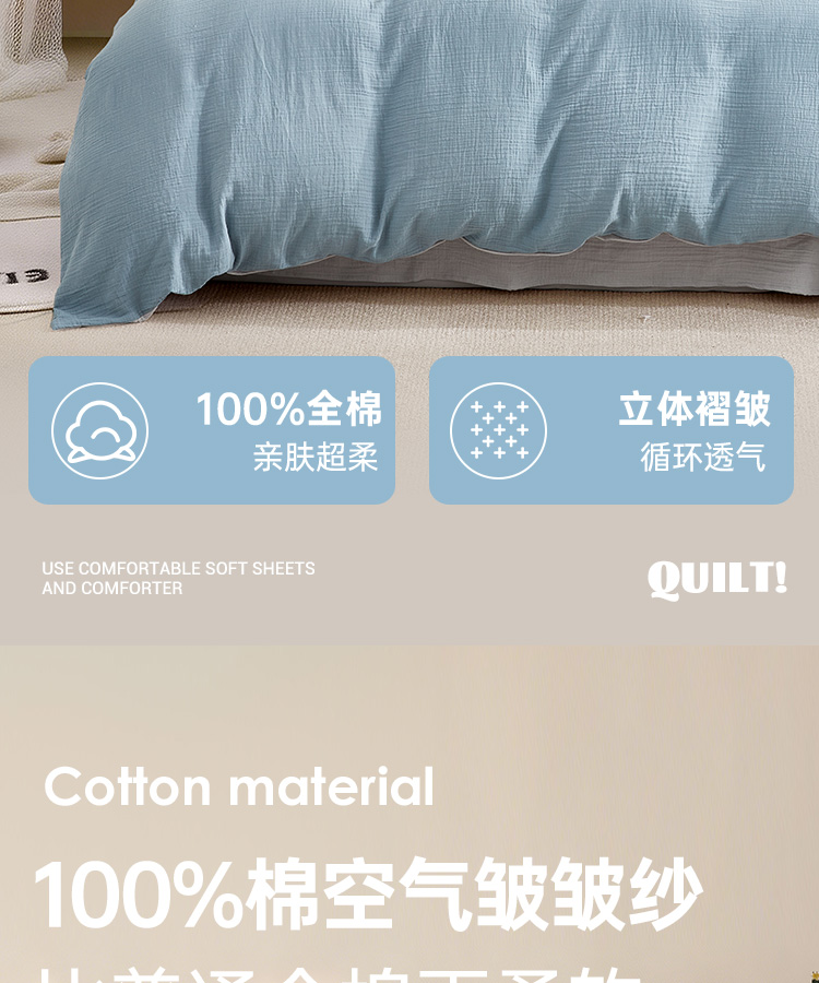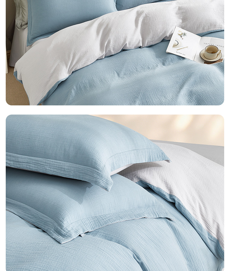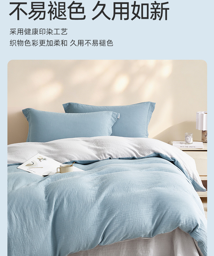 超柔全棉皱皱纱四件套(云山兰/月光灰)