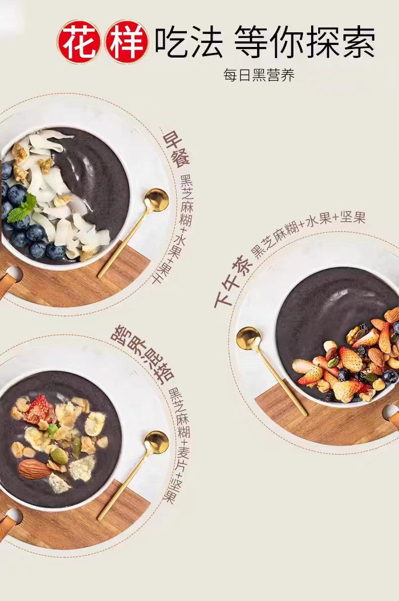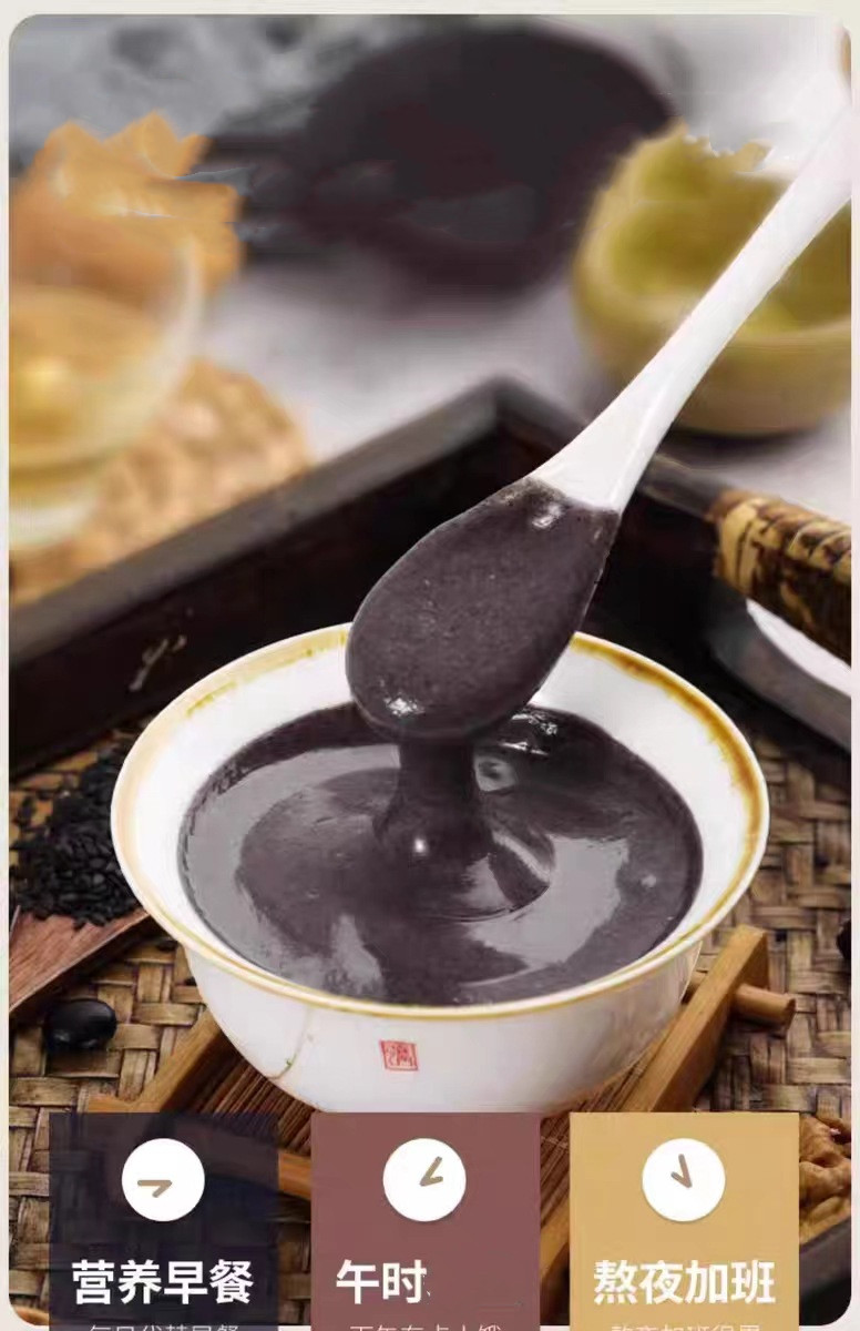 配料表:黑米、黑豆、黑芝麻、黑花生、核桃、黑桑葚