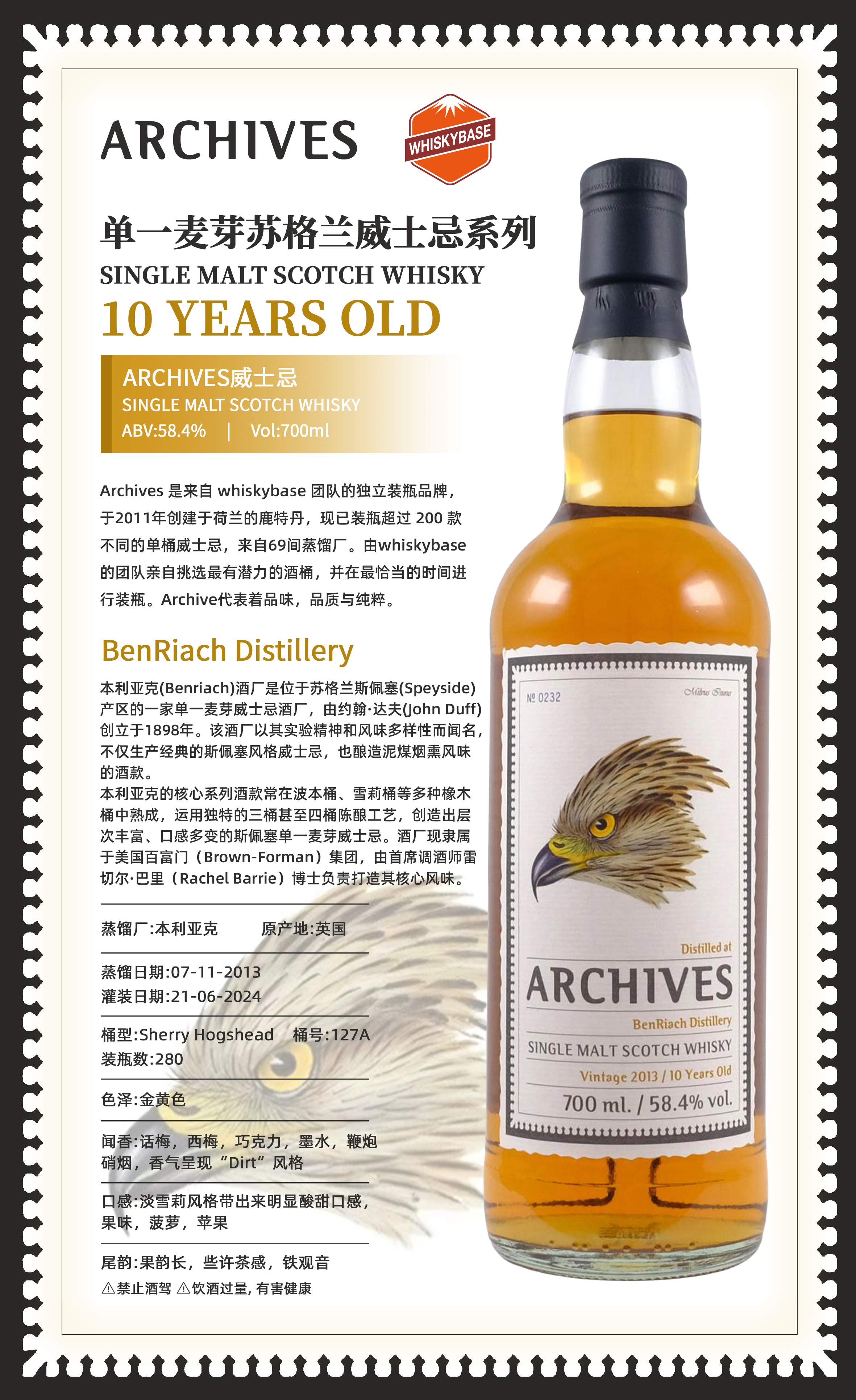 邮票标-本利亚克(Benriach)2013-10年雪莉单桶单一麦芽苏格兰威士忌