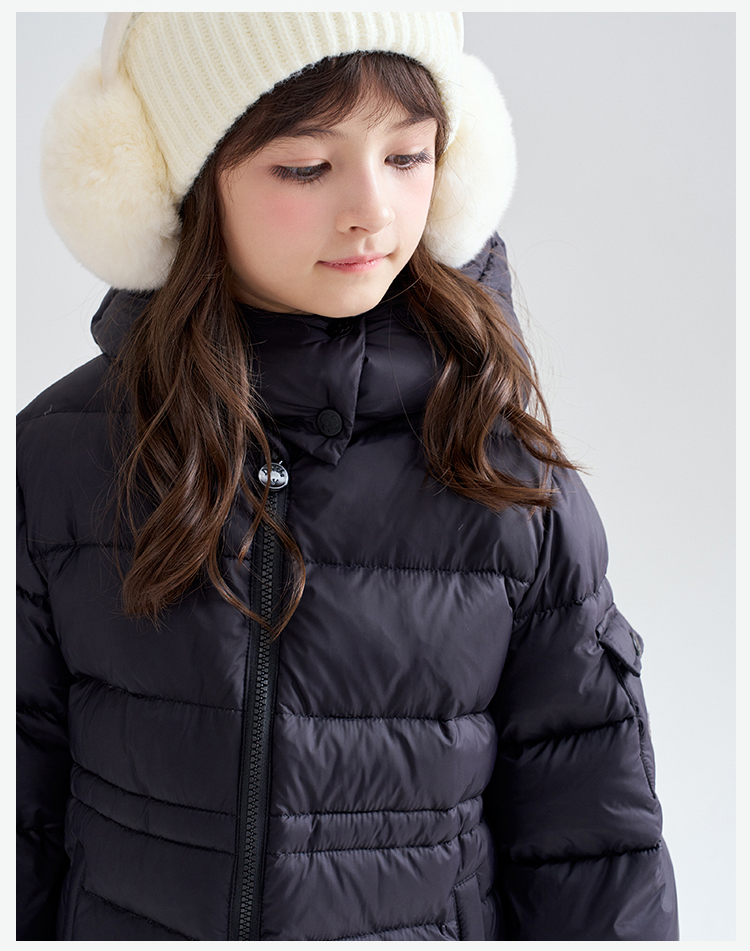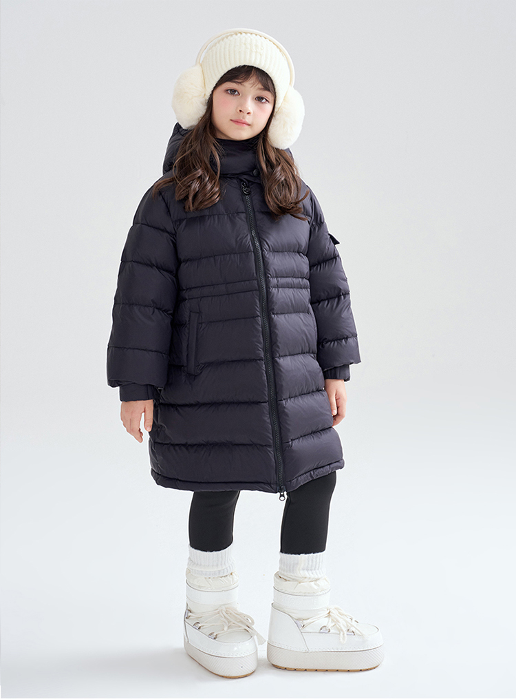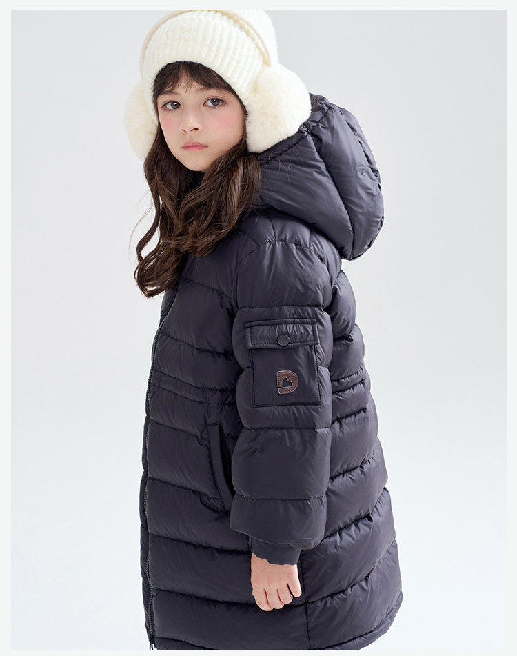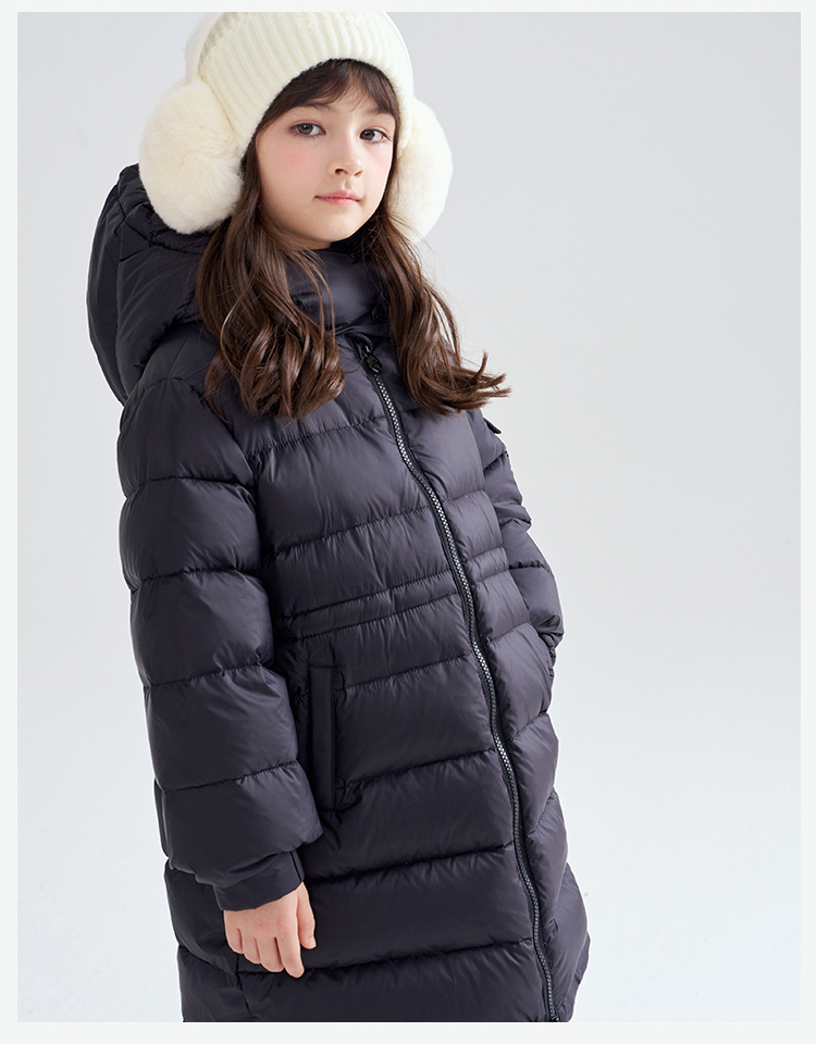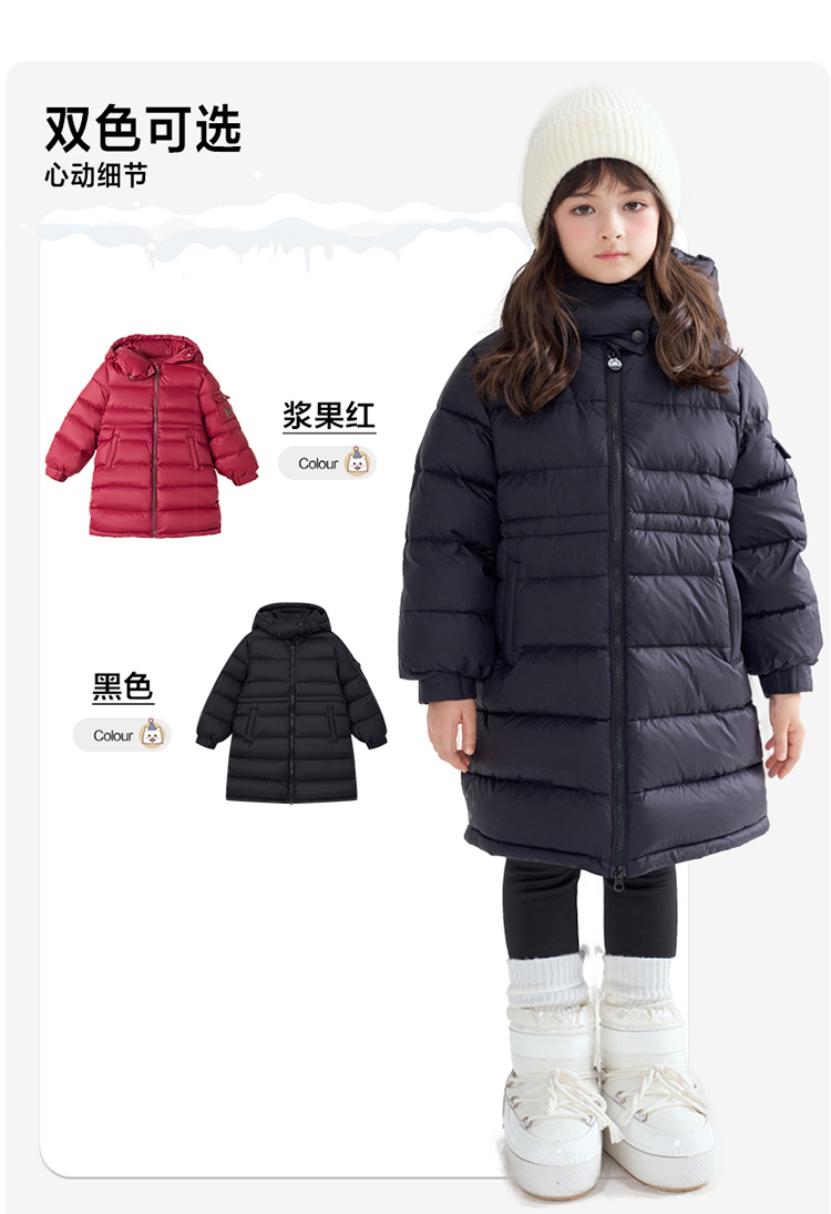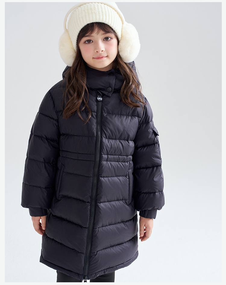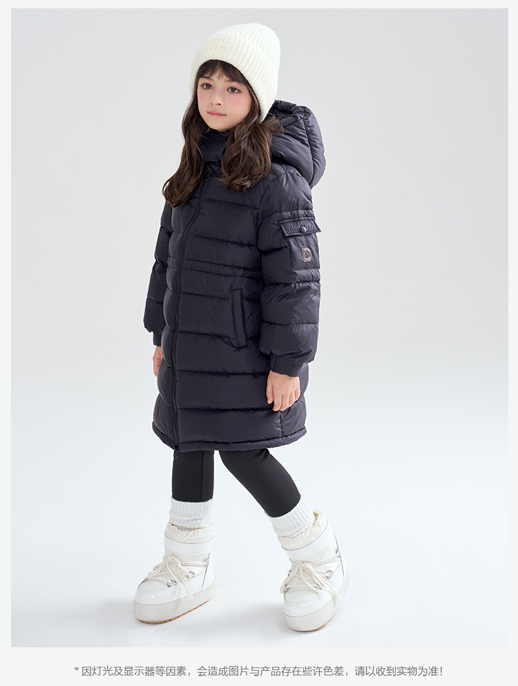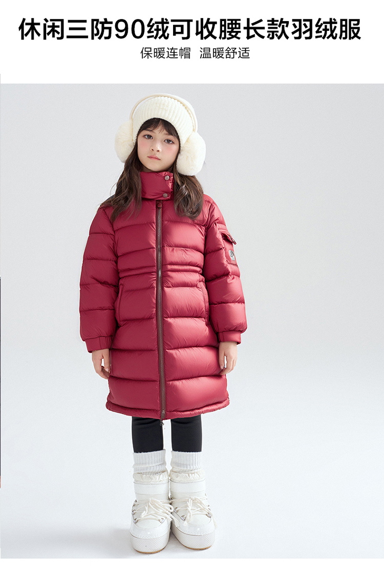 笛莎Deesha 2025冬季女童休闲三防90绒可收腰长款羽绒服