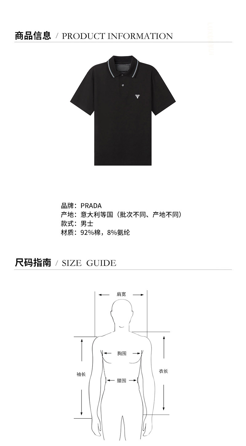 PRADA/普拉达【22春夏新款】男士棉质短袖POLO衫 UJN798 710 S 221