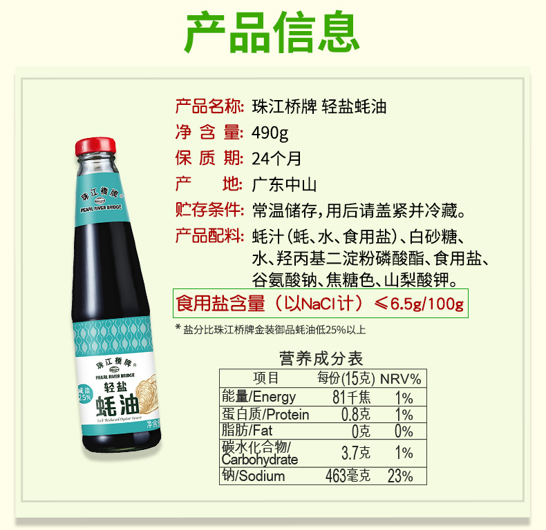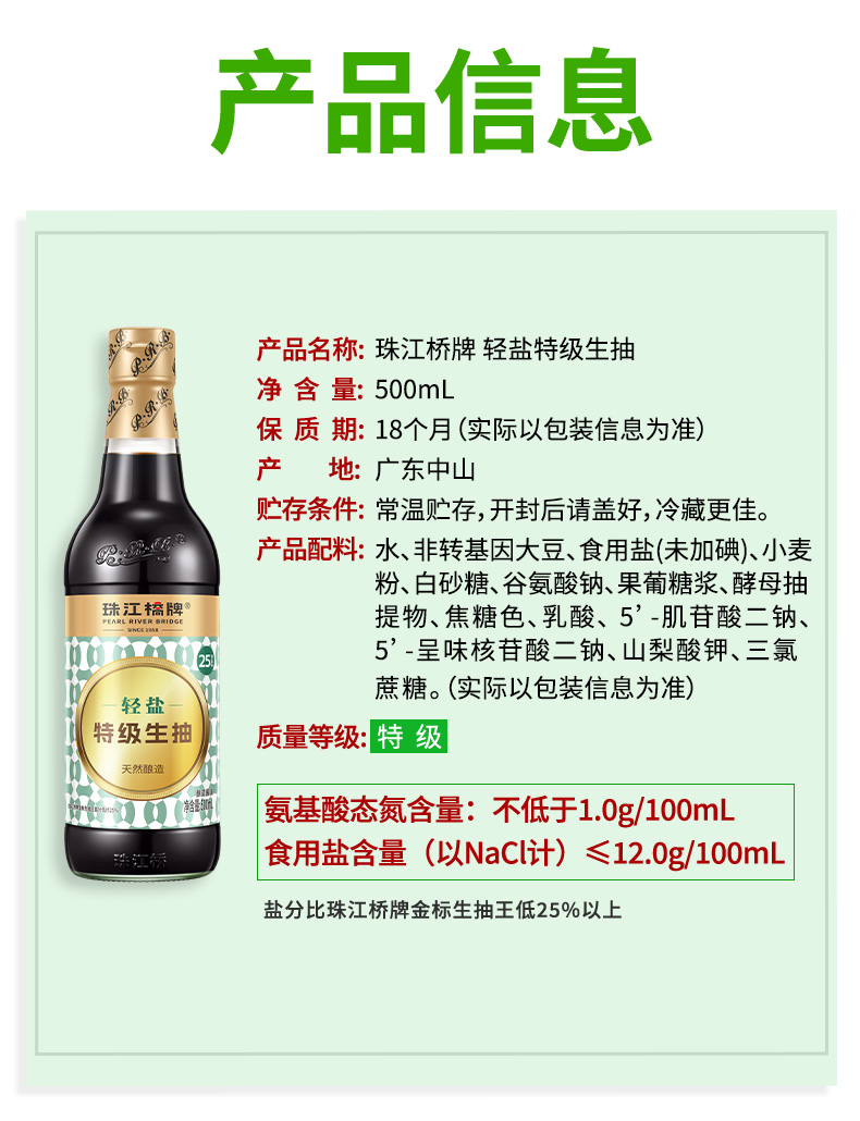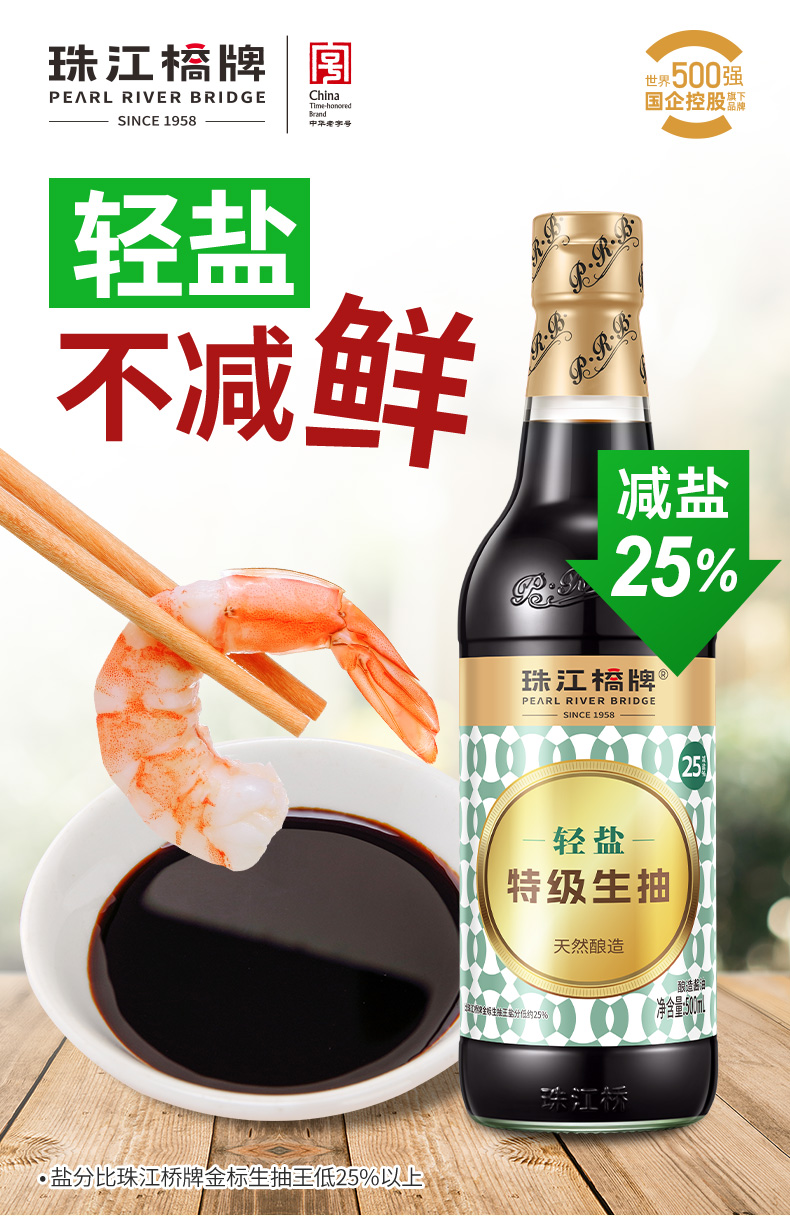 珠江桥牌 轻盐特级生抽500ml+轻盐蚝油490g