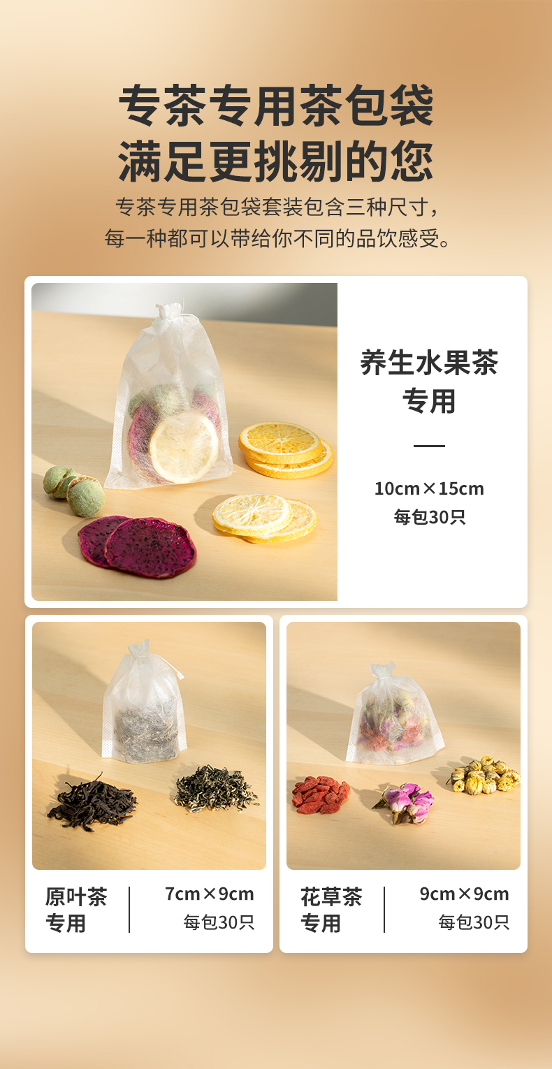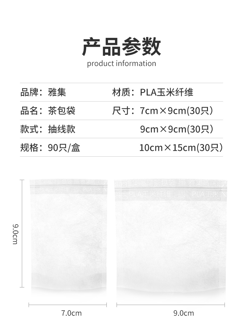 雅集食品级玉米纤维茶包袋组合装(隐藏抽线款-90个)