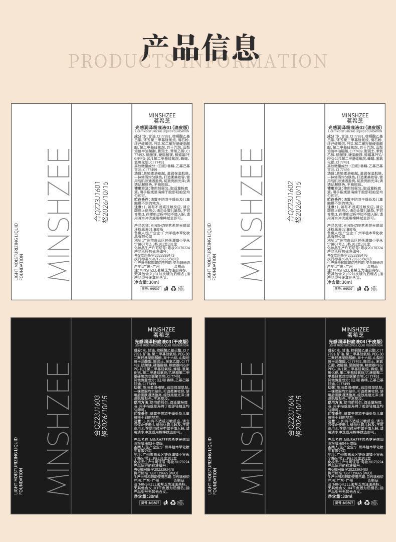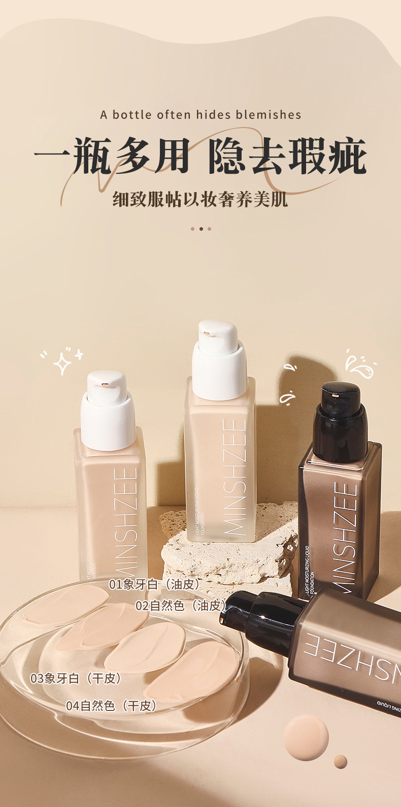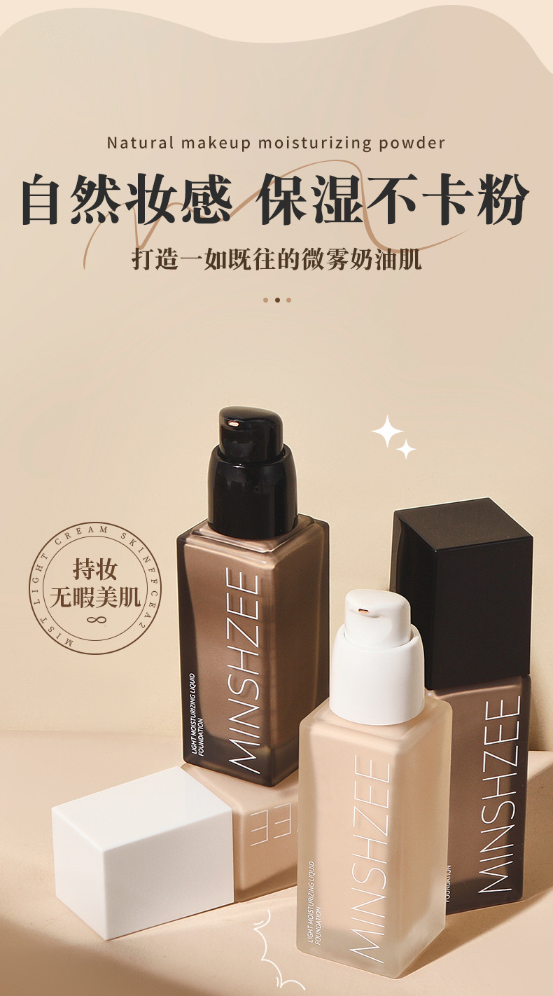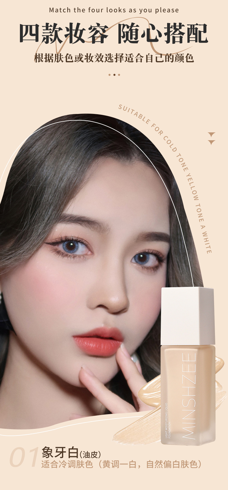 MINSHZEE茗希芝光感粉底液 遮瑕持久不脱妆油皮不卡粉