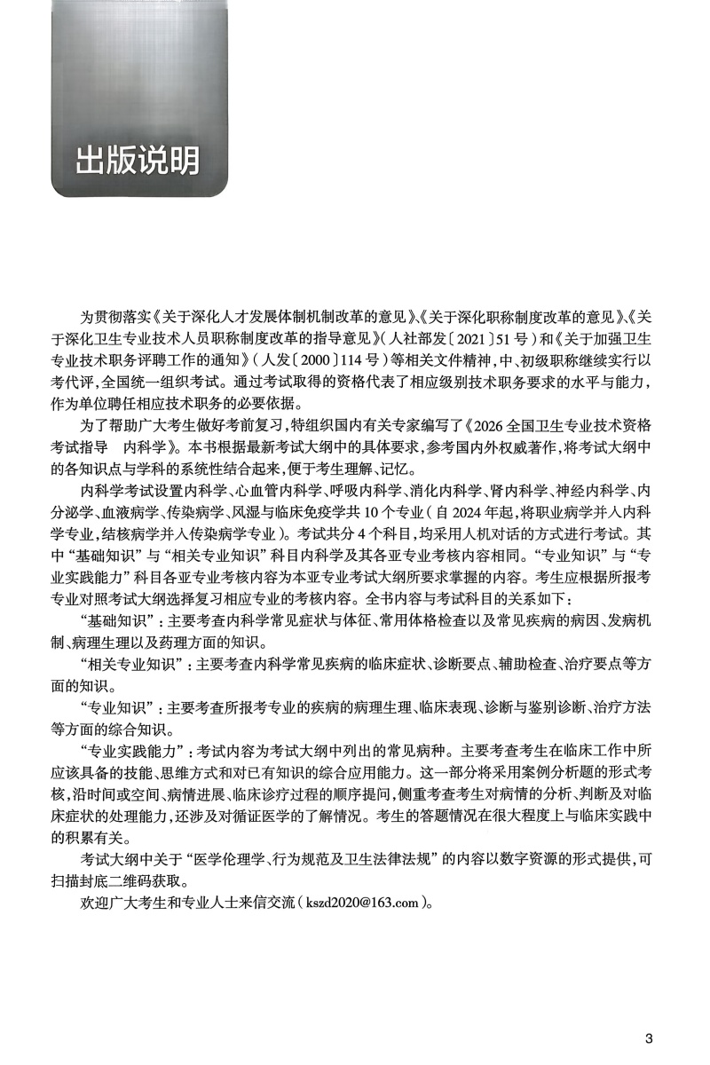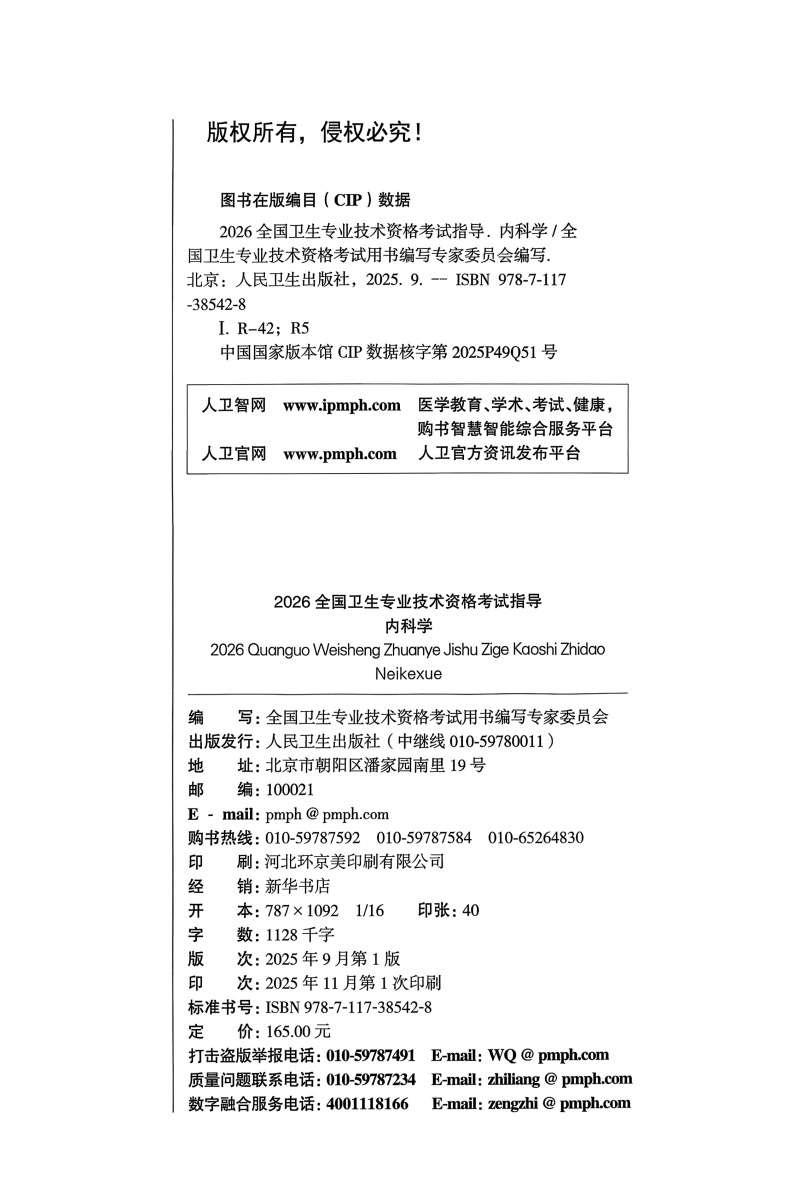 2026内科学 全国卫生专业技术资格考试指导 全国卫生专业技术资格考试用书编写专家委员会 编写 9787117385428 人民卫生出版社