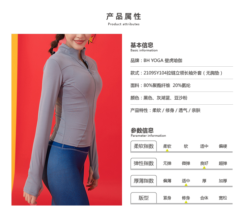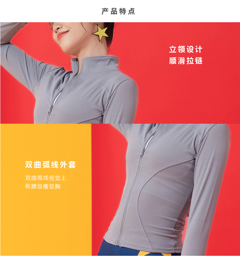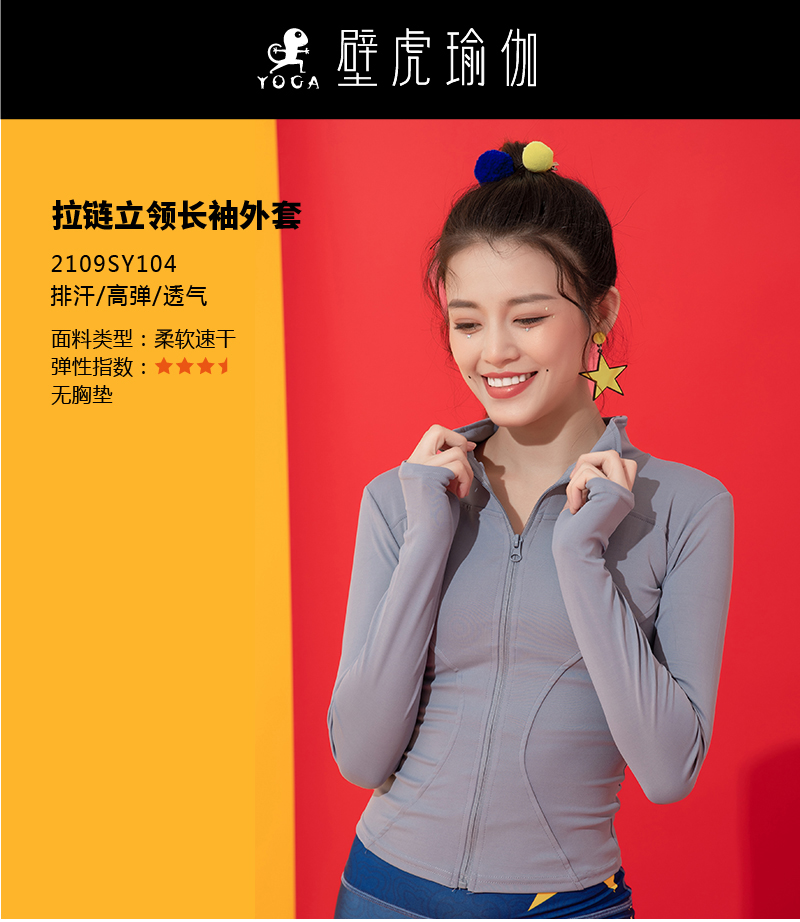 【七十二小时发货】壁虎瑜伽【2109SY104】拉链立领长袖外套(无胸垫)
